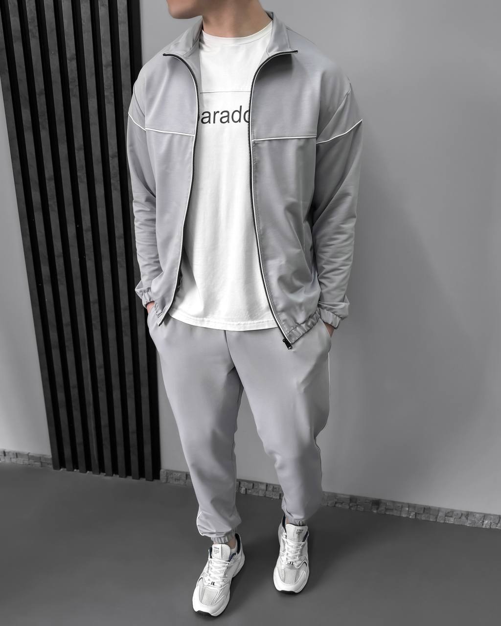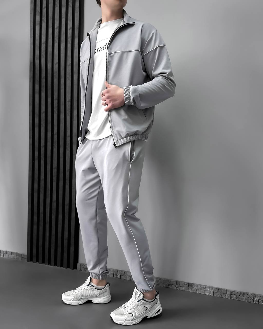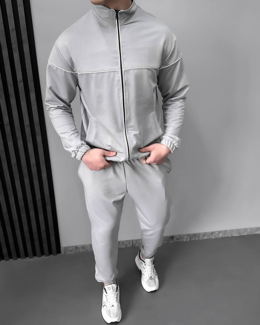 Чоловічий Сірий Спортивний Костюм з Кантом – Кофта на Блискавці + Штани Джогери