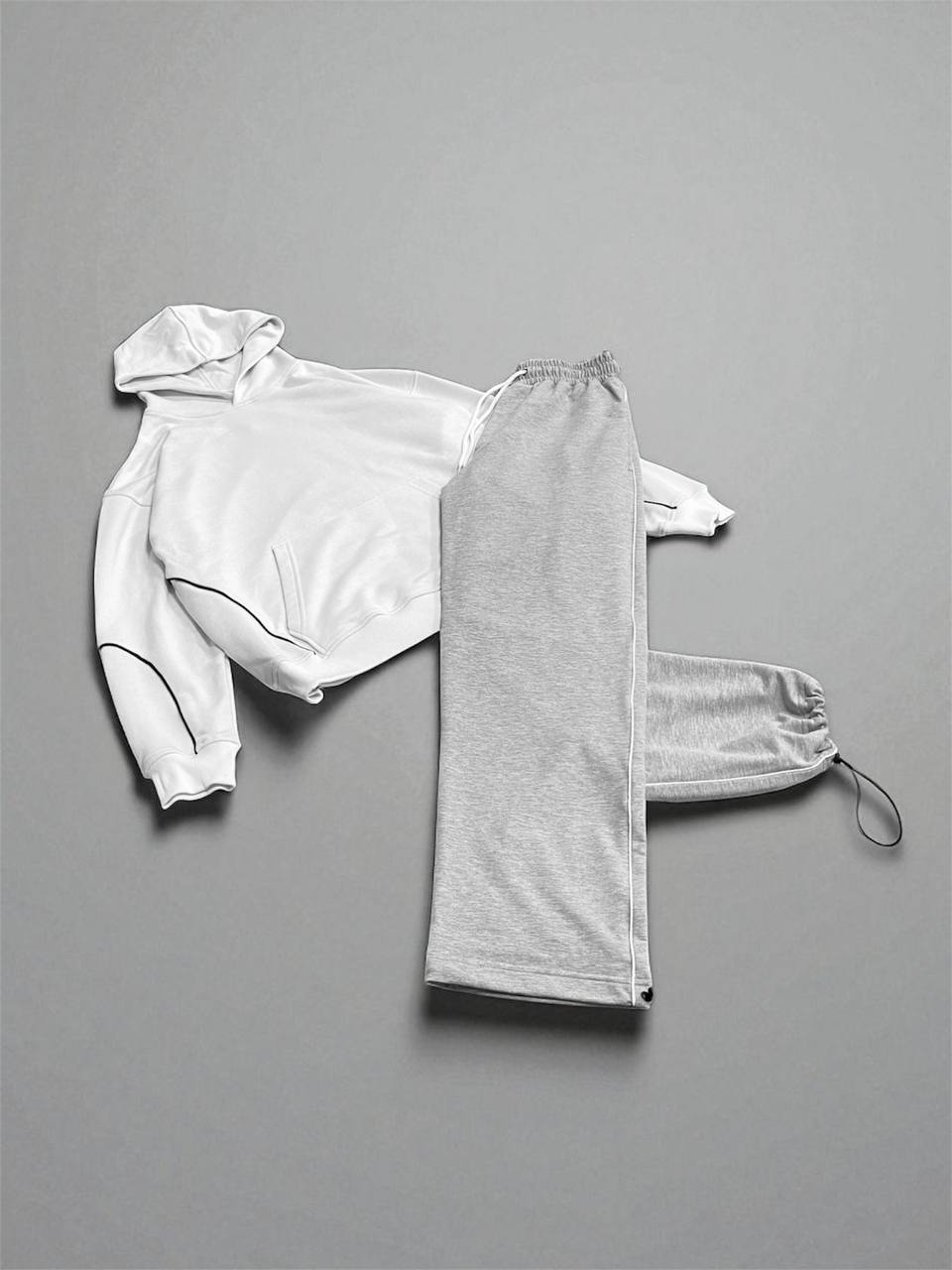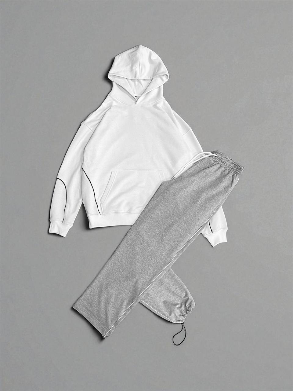 Чоловічий Спортивний Костюм Оверсайз з Кантом – Біле Худі + Широкі Сірі Штани