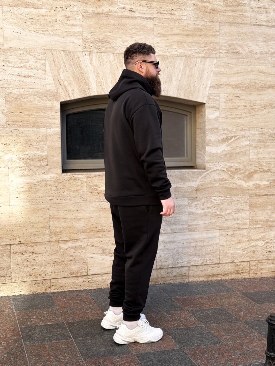Будьте першим, хто залишив відгук “Чоловічий Теплий Базовий Чорний Костюм Оверсайз на Флісі – Худі + Штани з Манжетами”“ Скасувати коментар