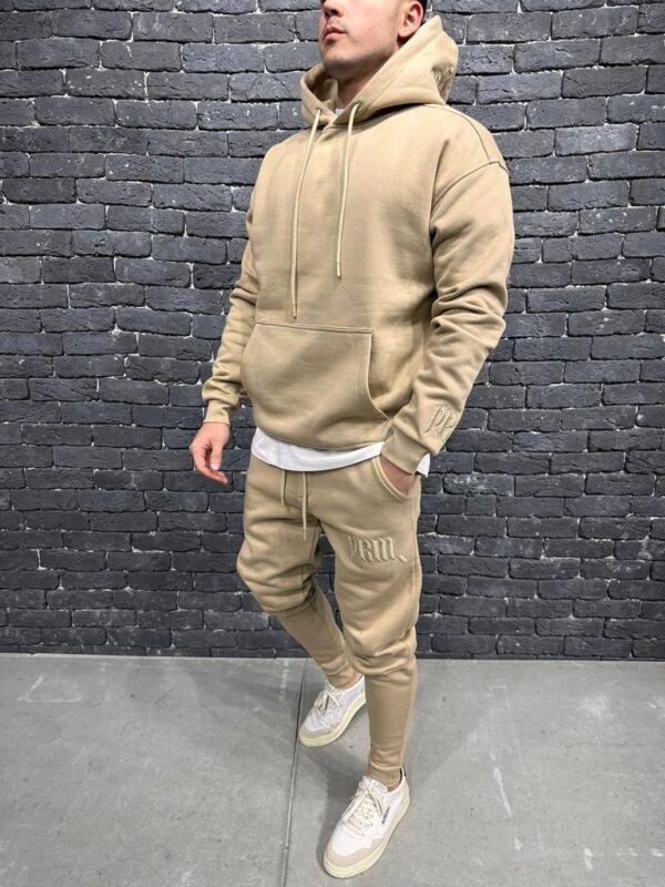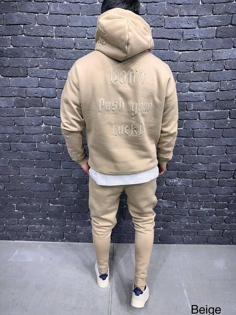 Чоловічий теплий бежевий спортивний костюм на флісі з вишитим написом на спині.