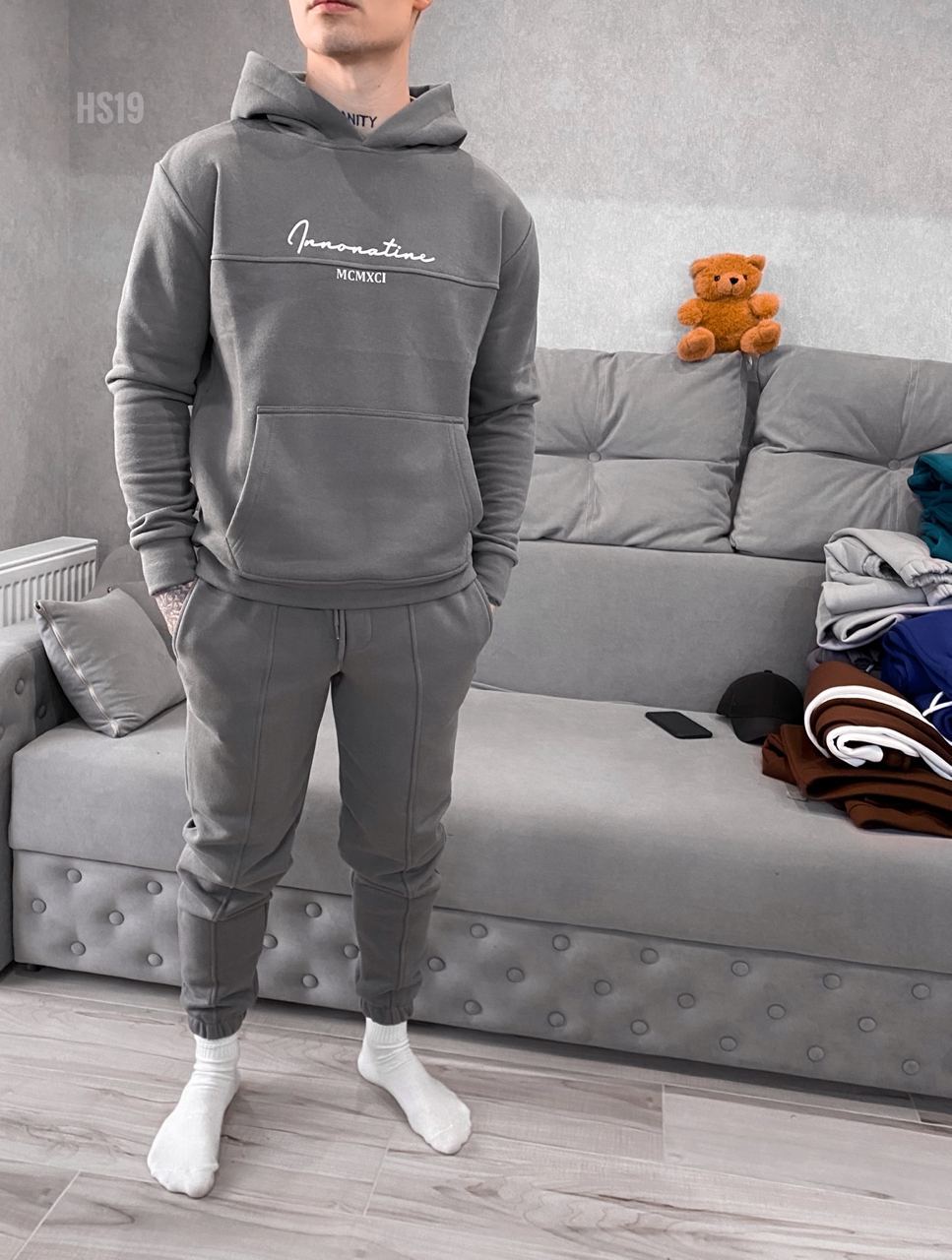 Чоловічий Теплий Графітовий Спортивний Костюм з Флісом – Базовий Однотонний Вільний