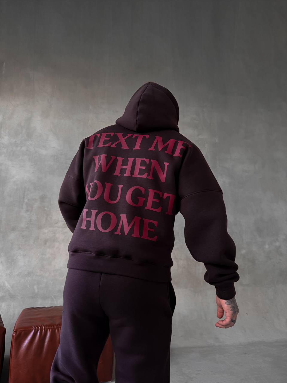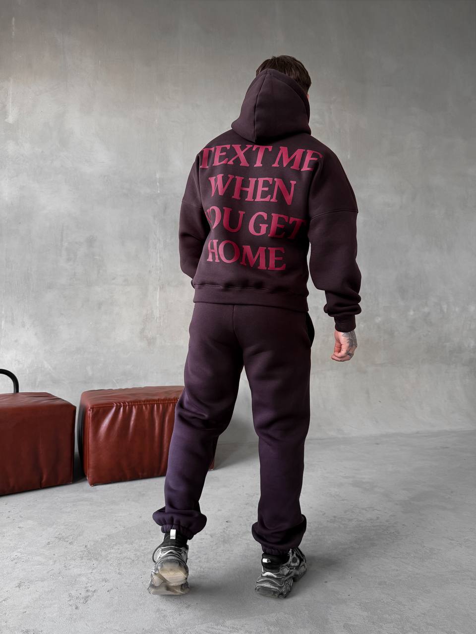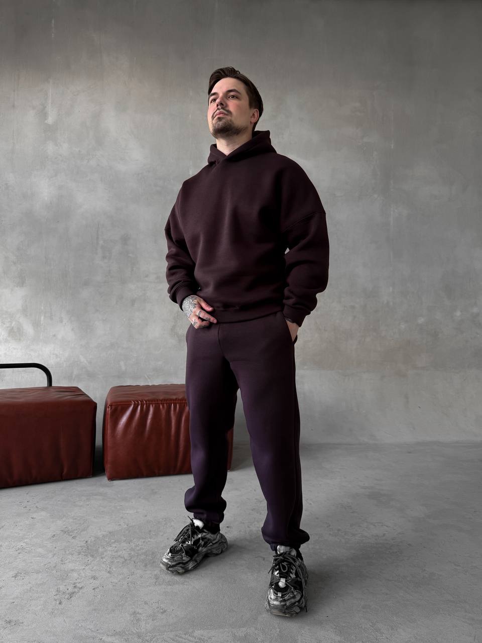 Чоловічий Теплий Коричневий Спортивний Костюм з Написом на Спині – Толстовка Штани з Начосом