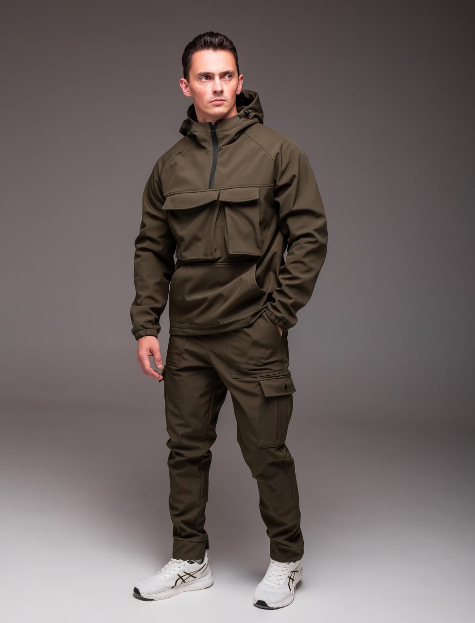 Чоловічий Теплий Костюм Хакі Softshell на Флісі (Анорак + Штани)