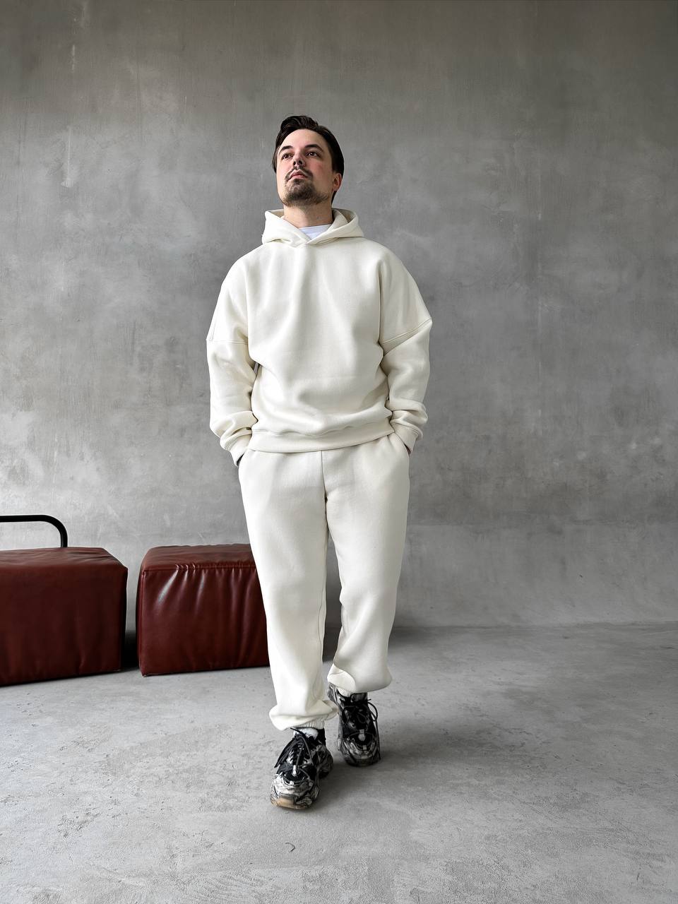 Чоловічий Теплий Молочний Спортивний Костюм з Написом на Спині – Толстовка Штани з Начосом