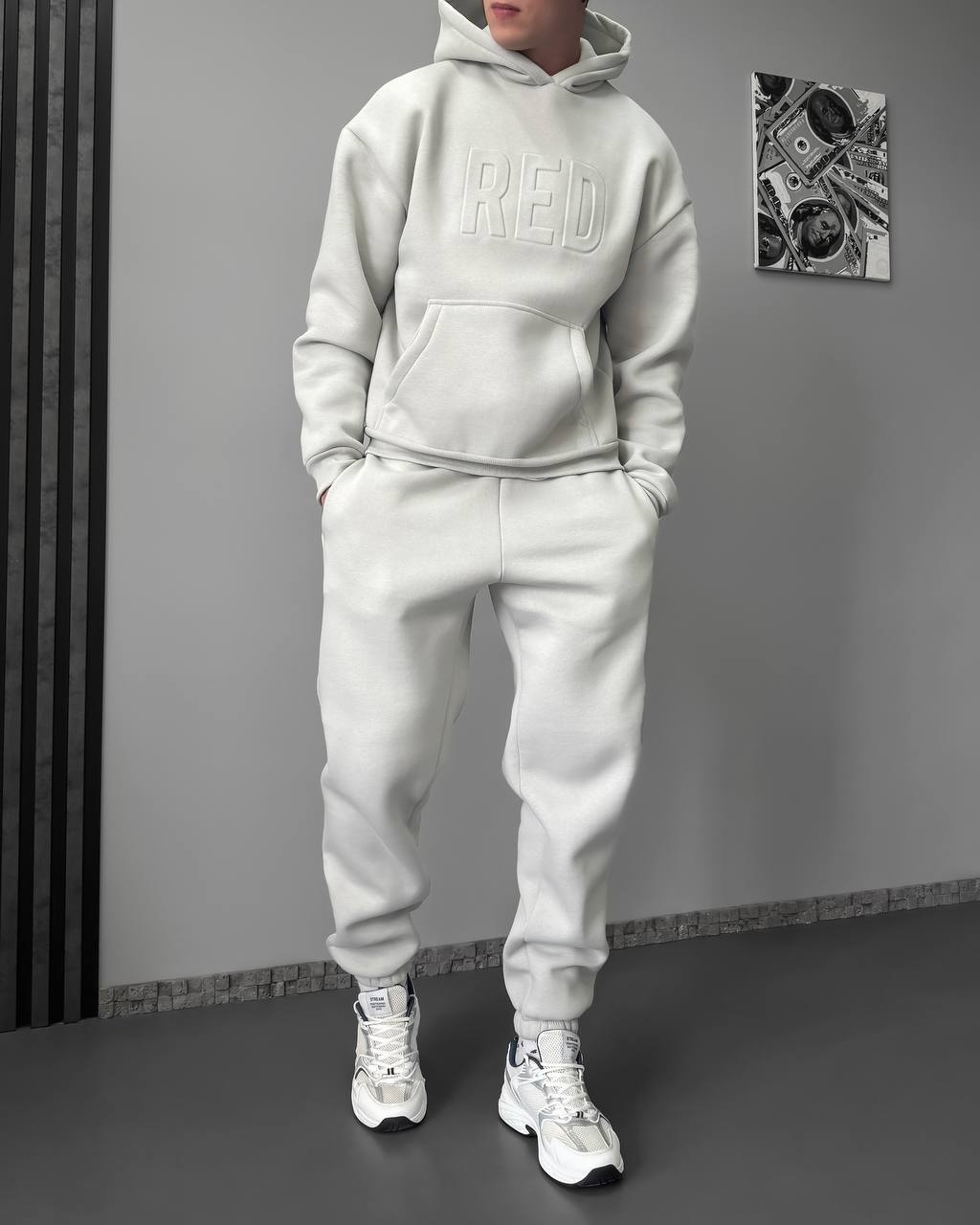 Чоловічий Утеплений Базовий Сірий Спортивний Костюм Худі Штани на Флісі