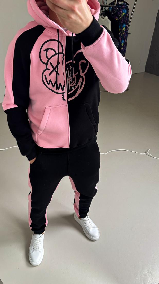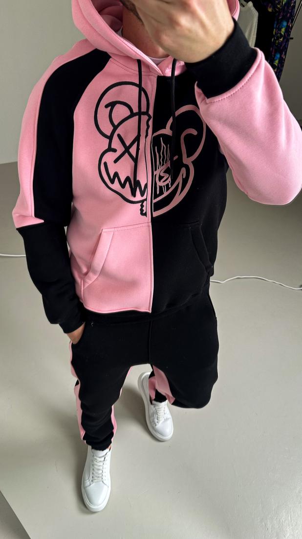 Чоловічий Утеплений Чорно-Рожевий Костюм з Принтом-Худі Джогери на Флісі