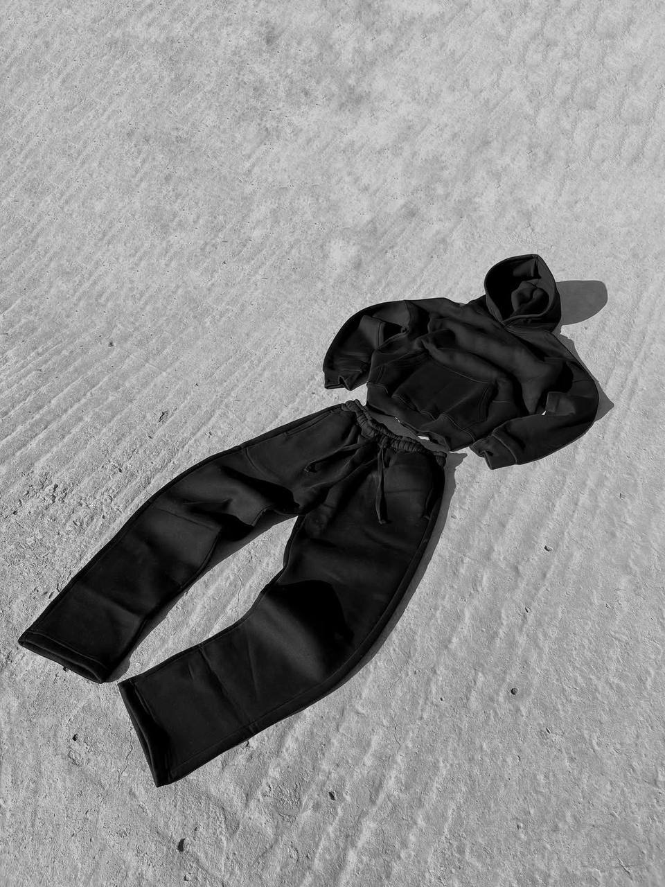 Чоловічий Утеплений Чорний Спортивний Костюм Худі Штани на Флісі Оверсайз