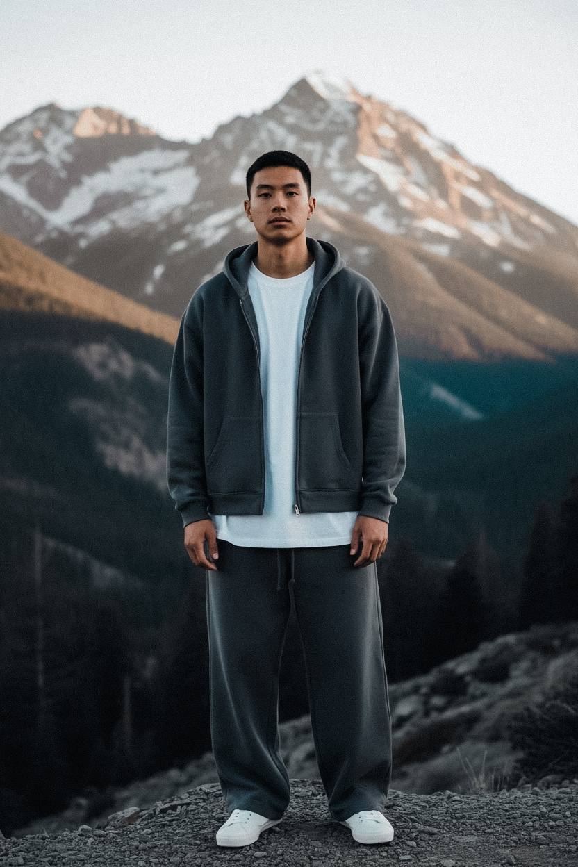 Чоловічий Утеплений Графітовий Костюм Оверсайз на Блискавці з Начосом (Зіпка + Штани)