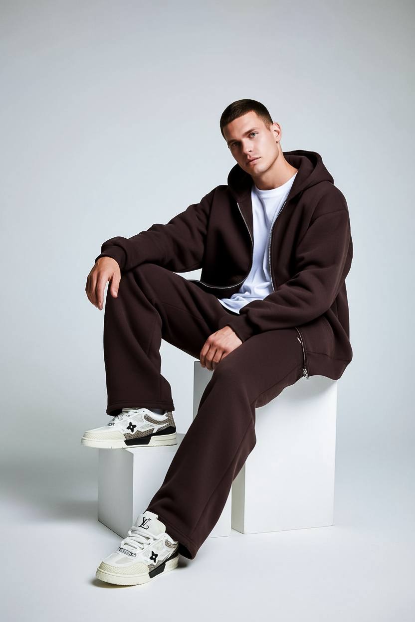 Чоловічий Утеплений Коричневий Костюм Оверсайз на Блискавці з Начосом (Зіпка + Штани)