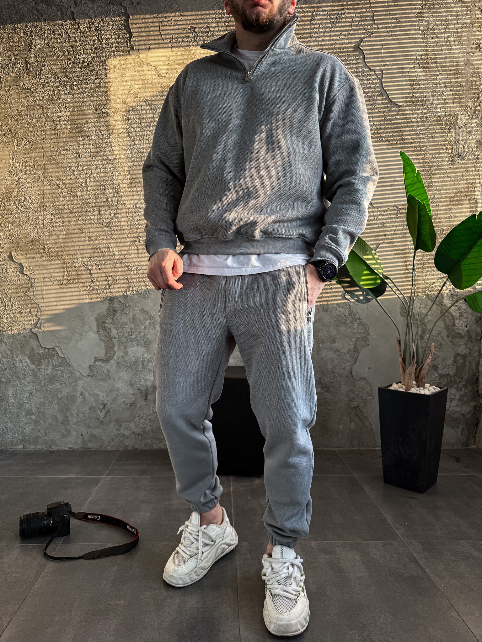 Чоловічий Утеплений Сірий Костюм на Флісі з Коротким Замком – Оверсайз Кофта + Джогери