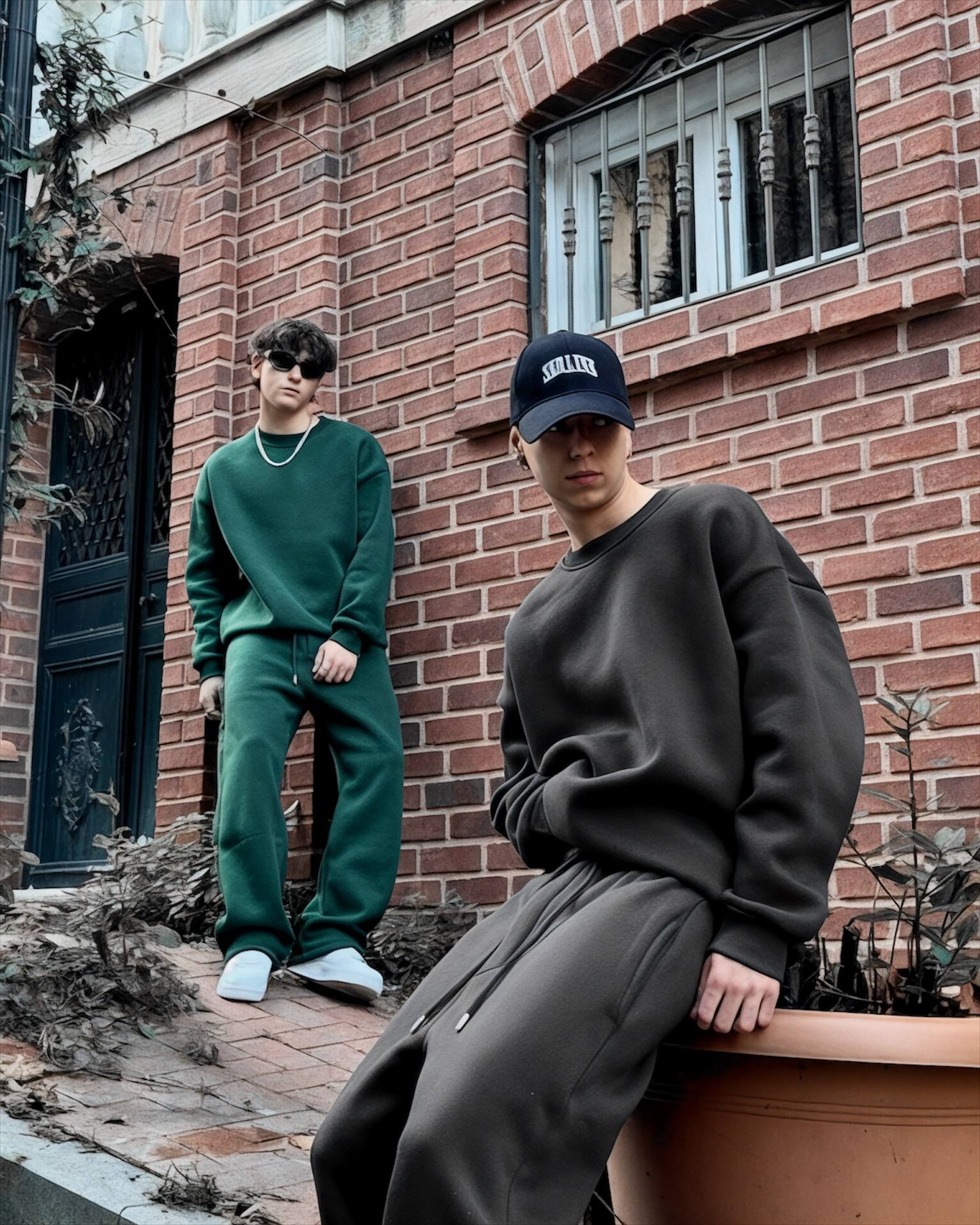 Чоловічий Утеплений Зелений Костюм Оверсайз на Флісі (Світшот + Штани)