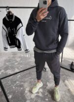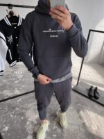 Чоловічий Вільний Графітовий Спортивний Костюм Тринитка з Написом (Худі + Джоггери)
