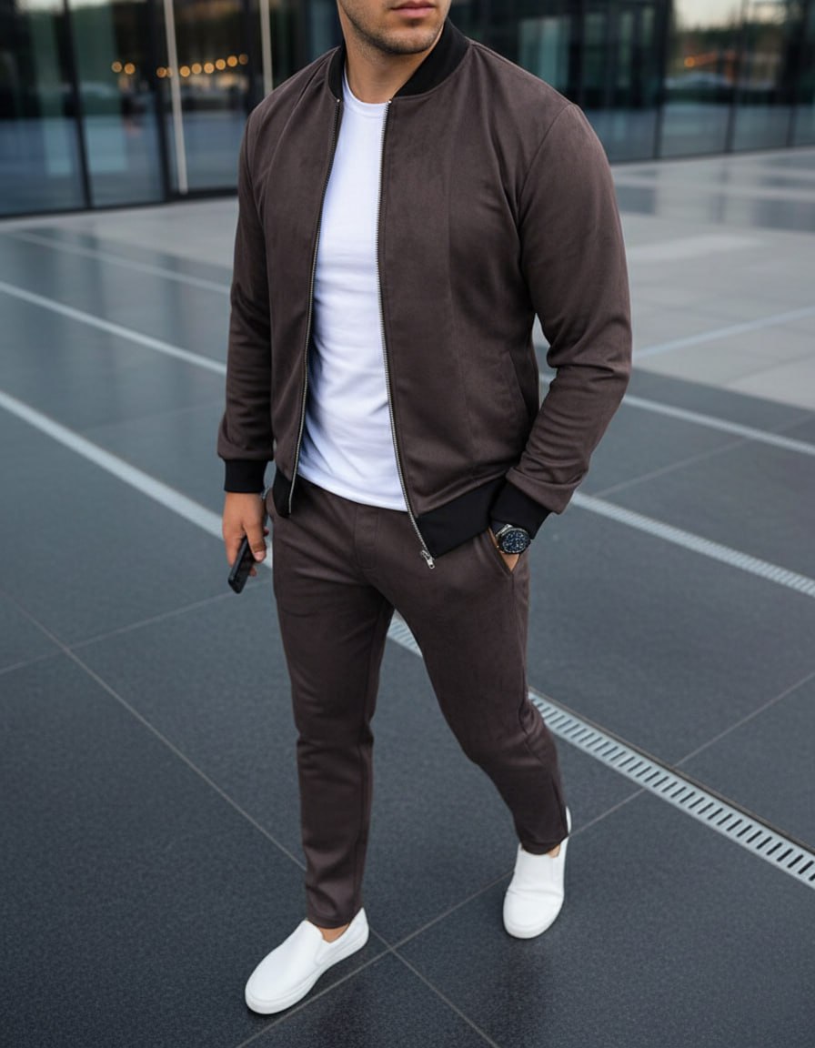 Чоловічий Базовий Коричневий Костюм Замша на Блискавці – Бомбер + Брюки