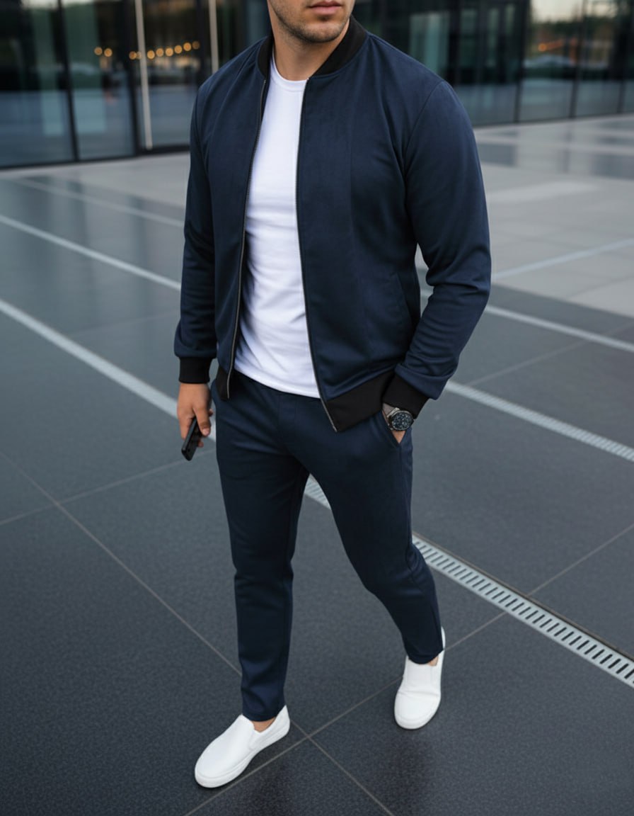 Чоловічий Базовий Темно-Синій Костюм Замша на Блискавці – Бомбер + Брюки