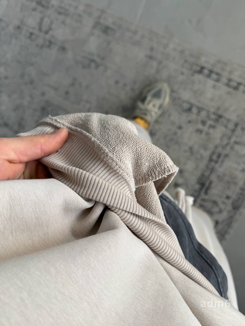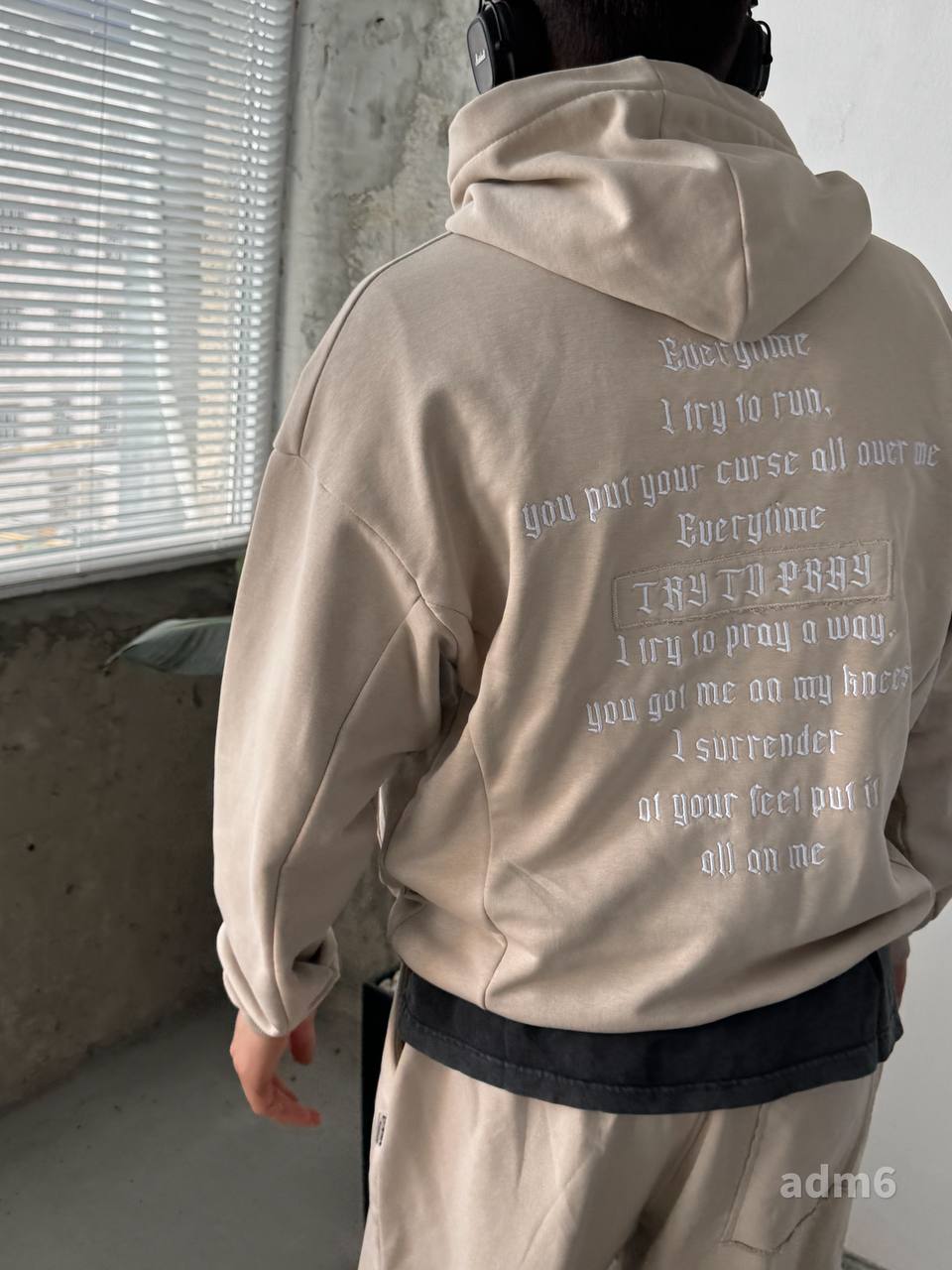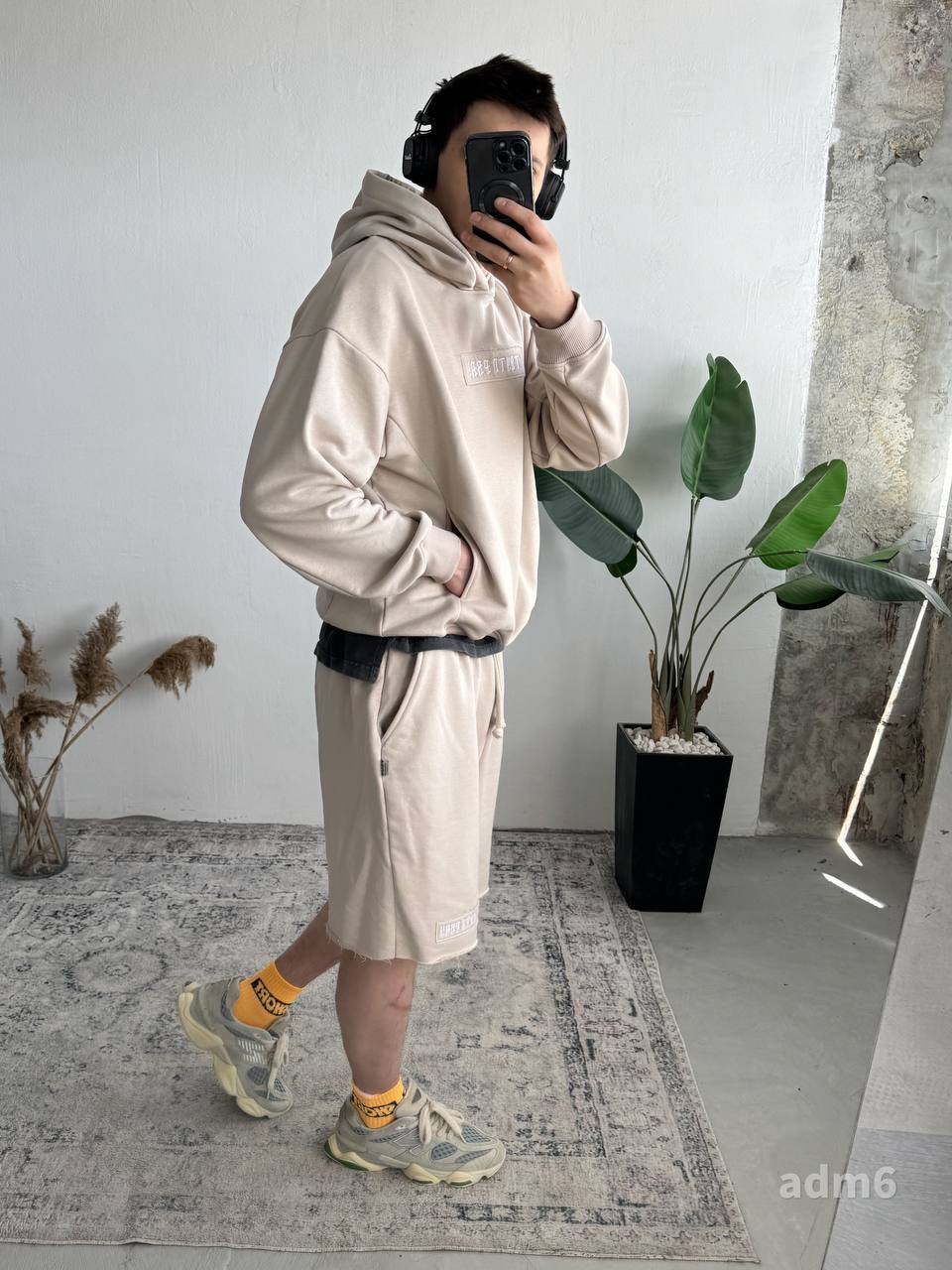Чоловічий Бежевий Костюм Комплект Худі Шорти Оверсайз із Вишивкою на Спині