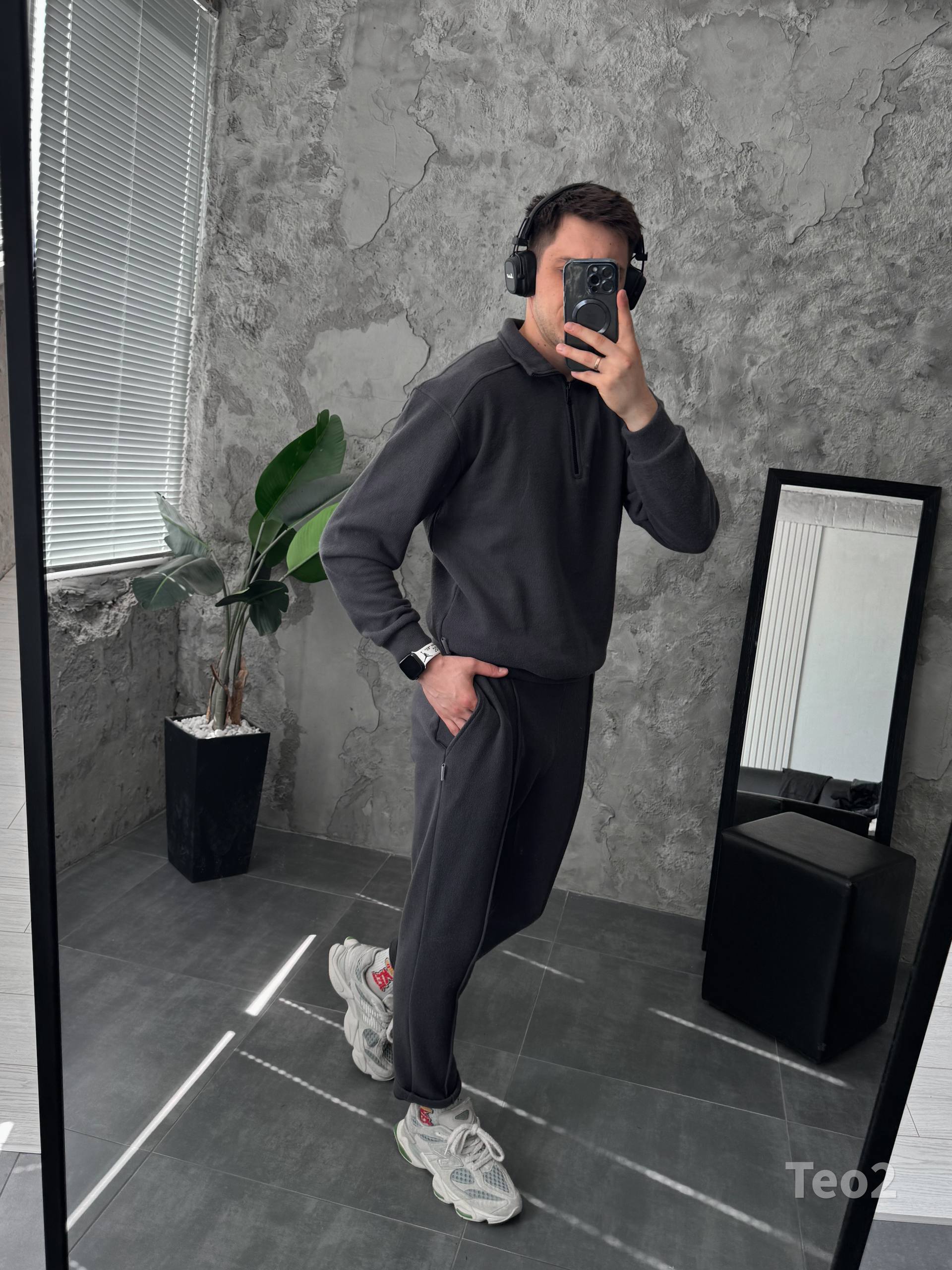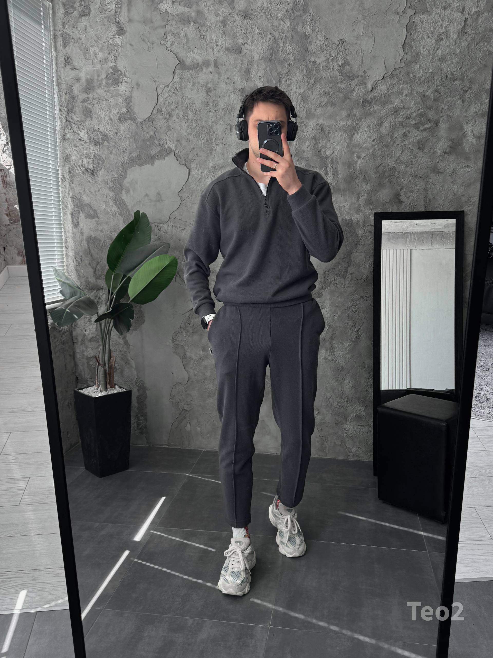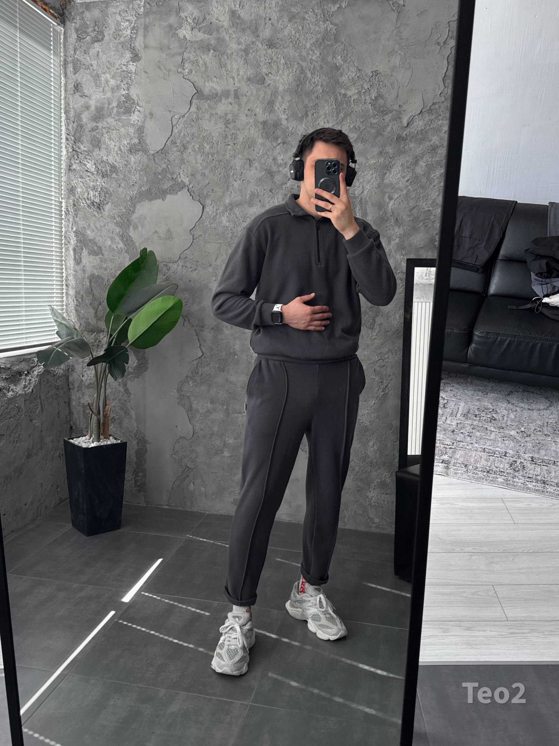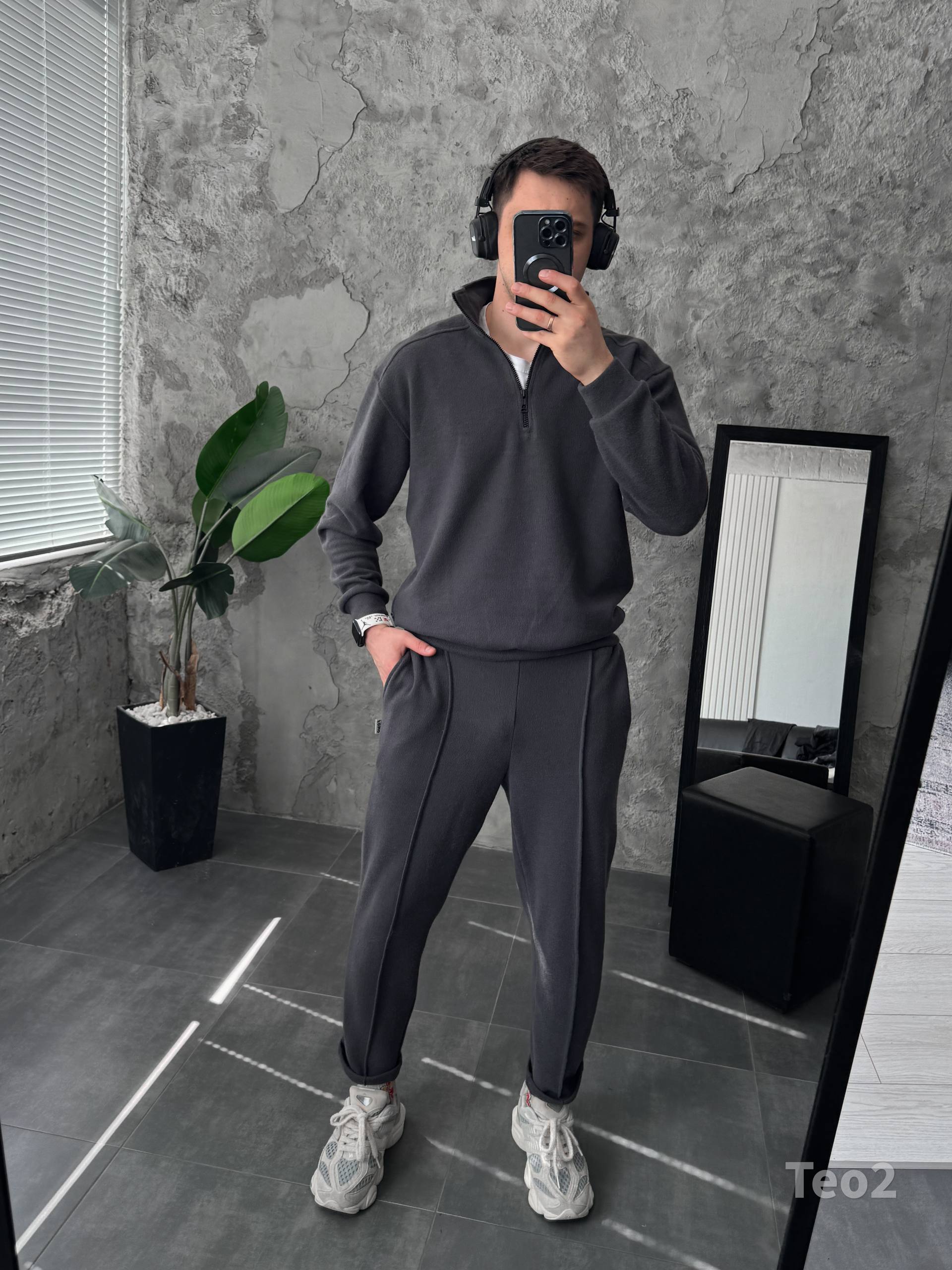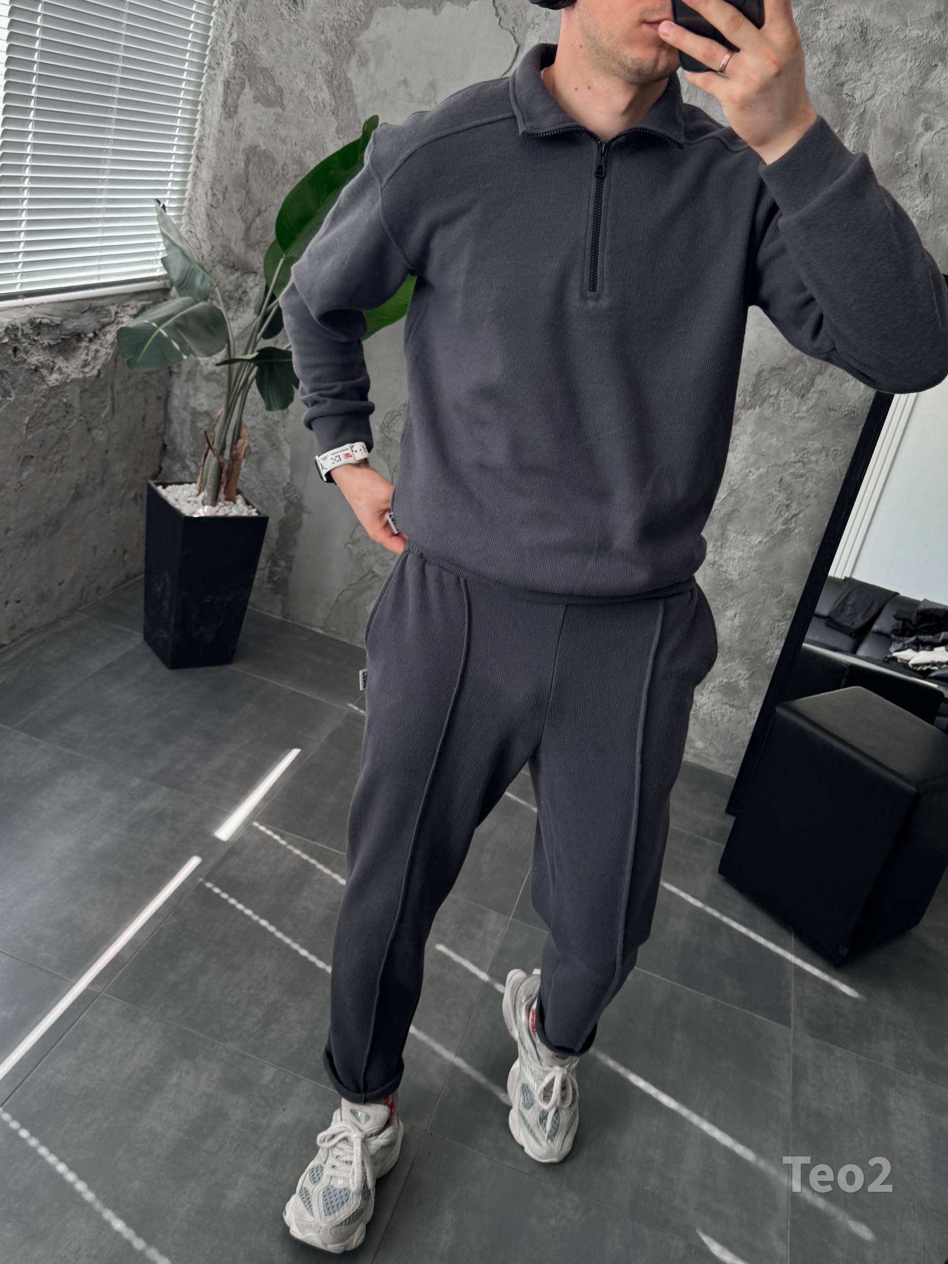 Чоловічий Графітовий Костюм на Весну Осінь – Кофта з Високою Горловиною на Замку + Штани зі Стрілками