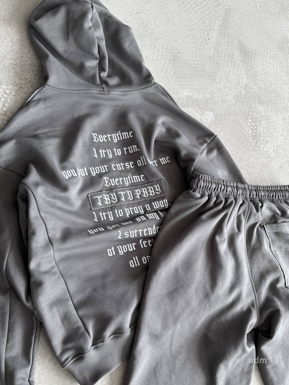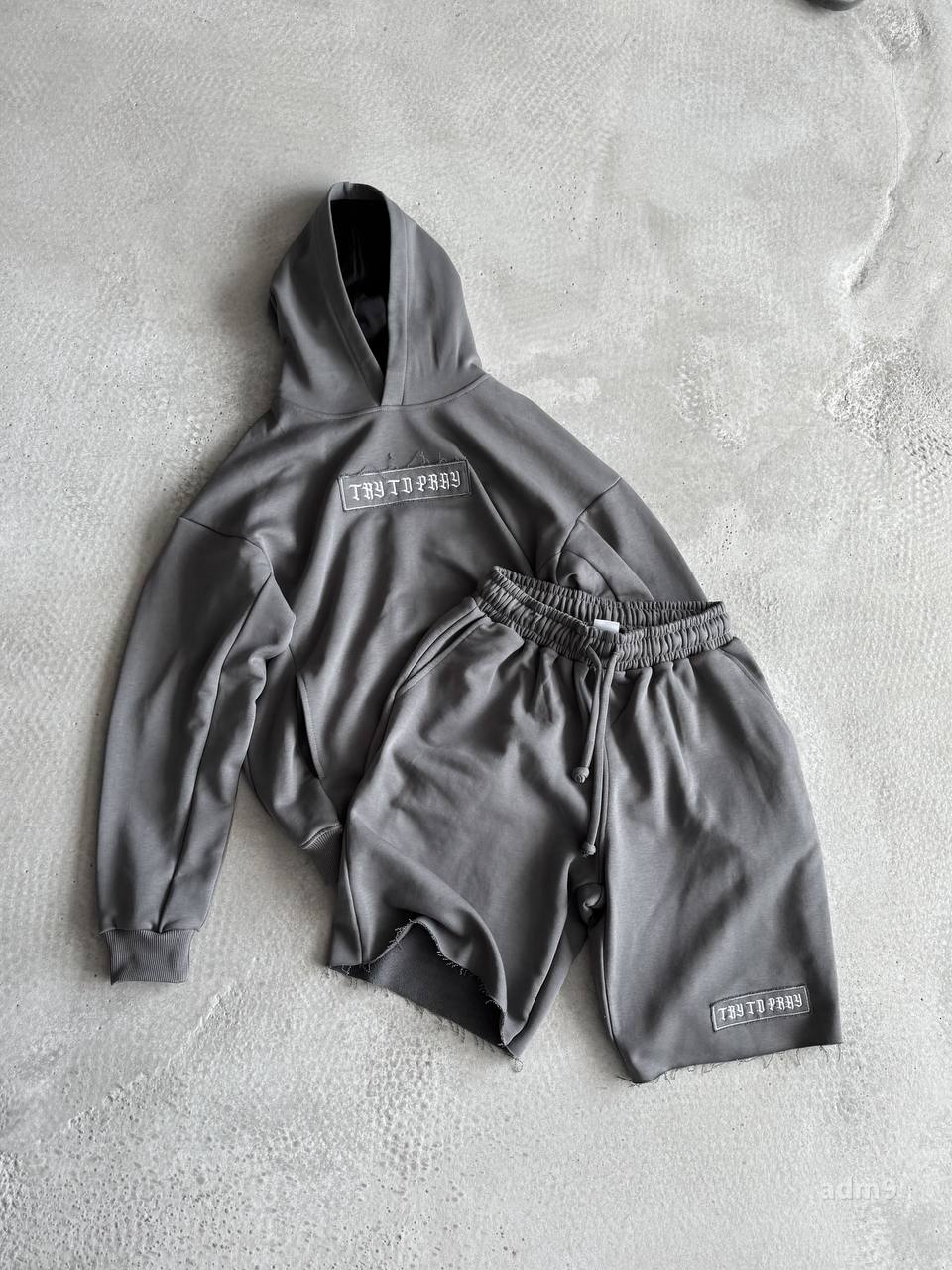 Чоловічий Сірий Костюм Комплект Худі Шорти Оверсайз із Вишивкою на Спині