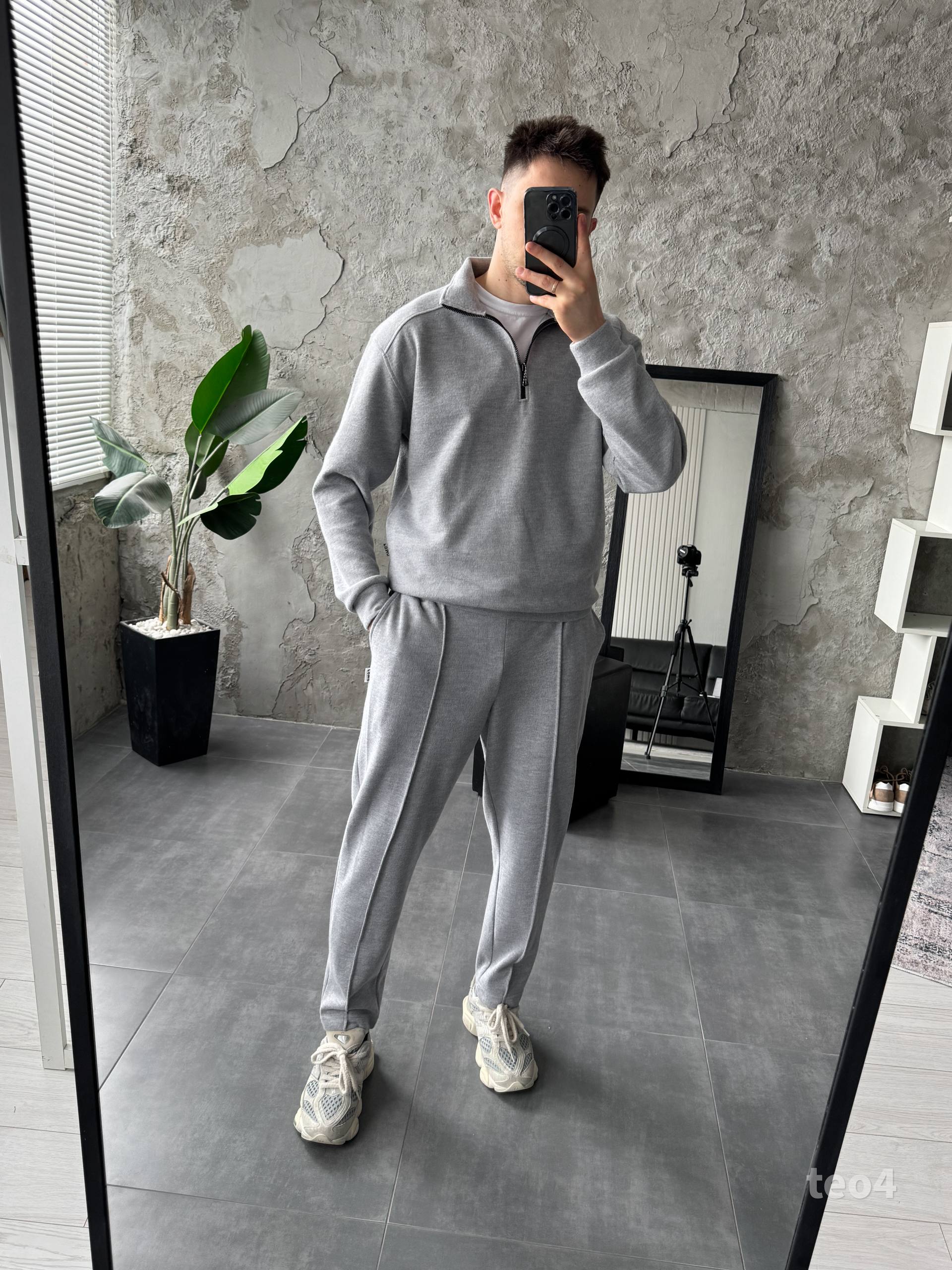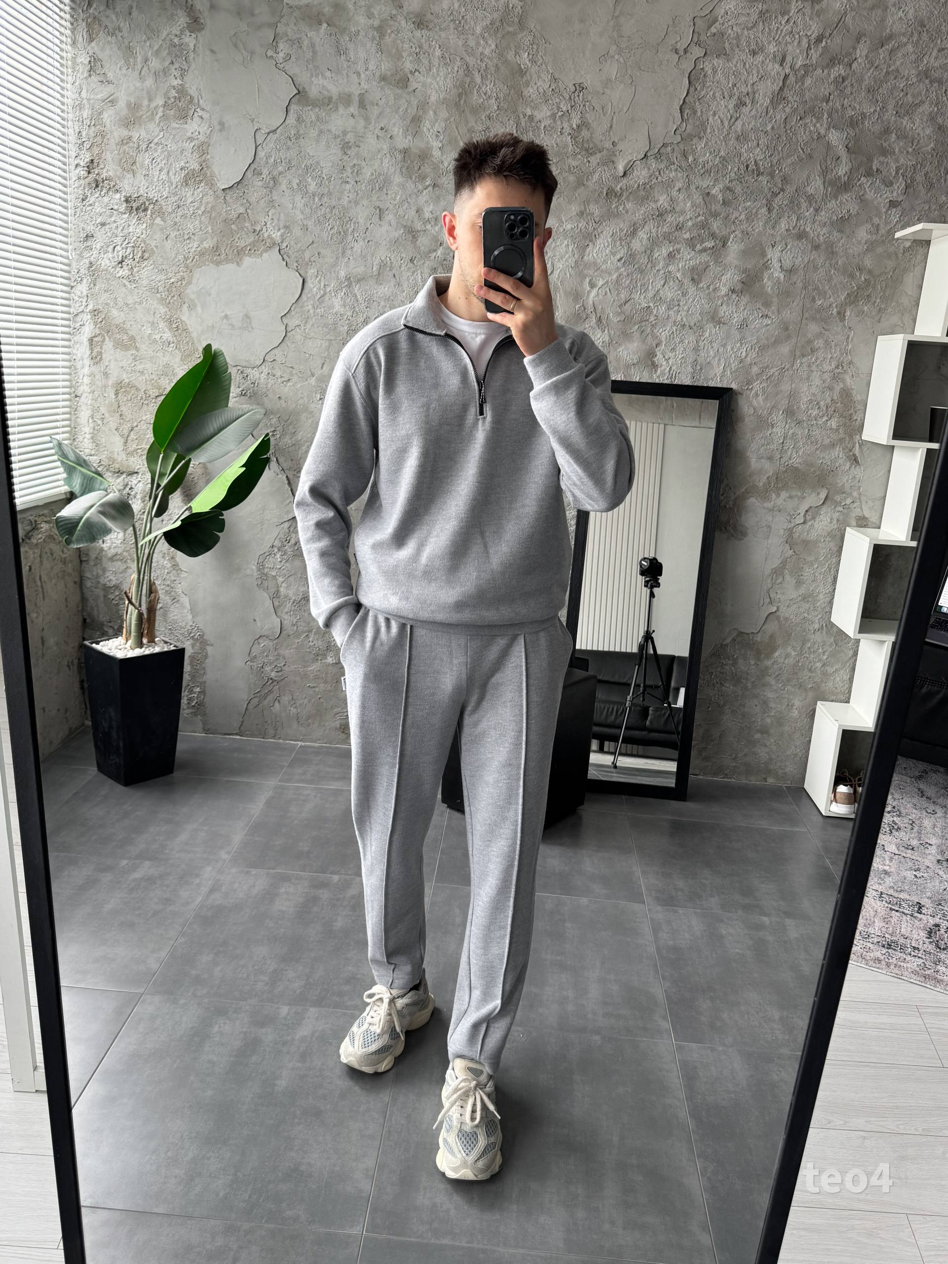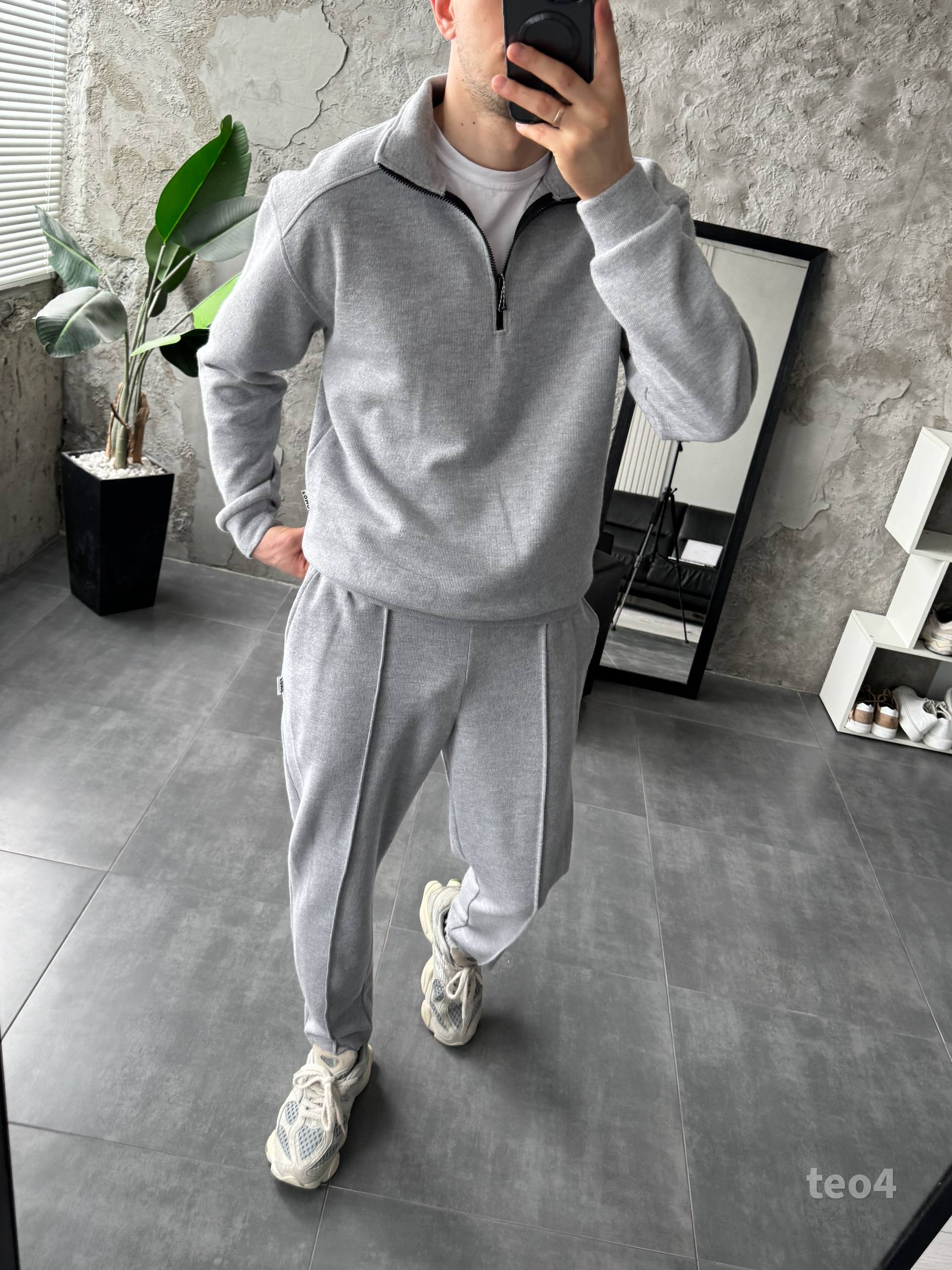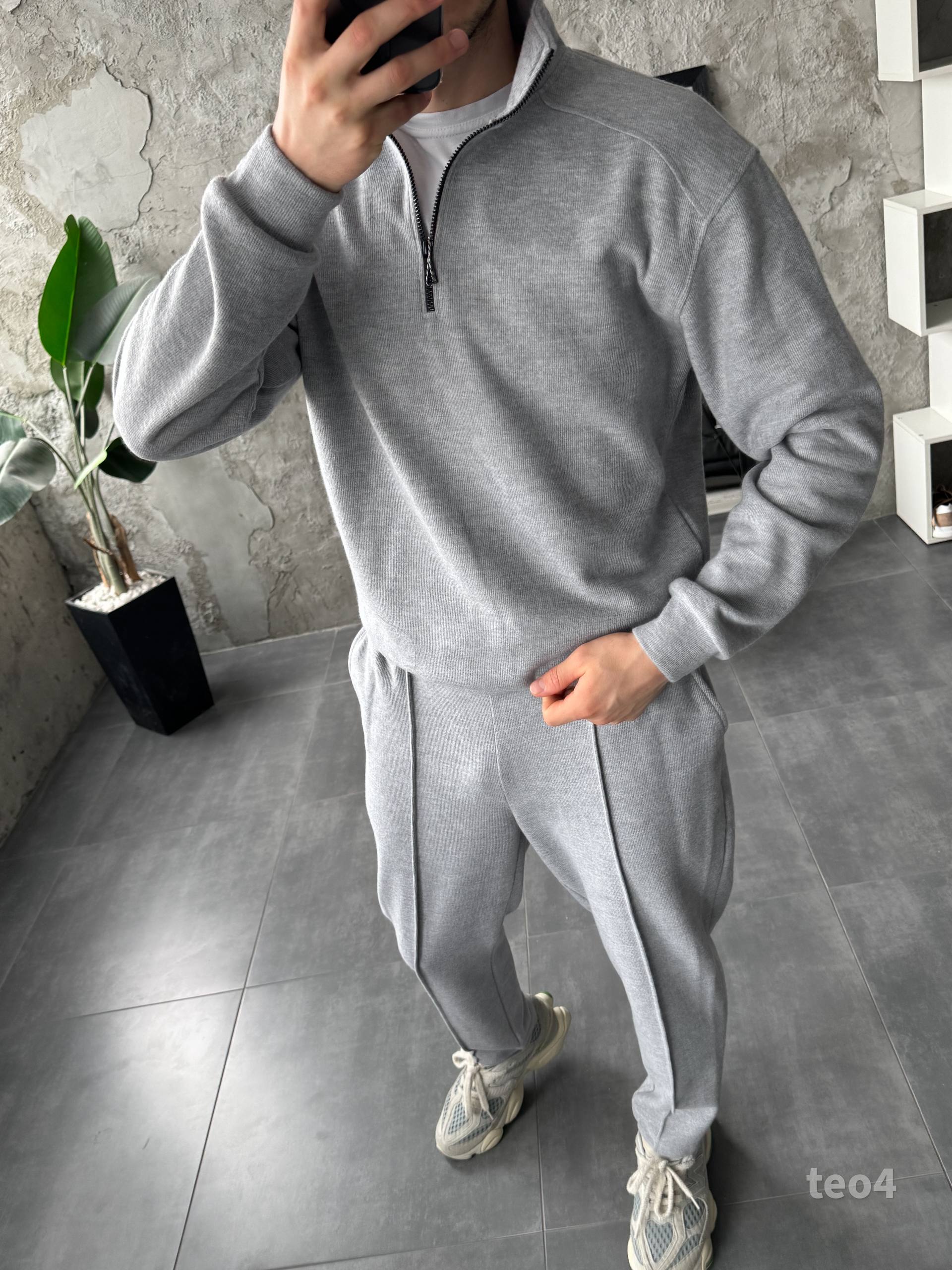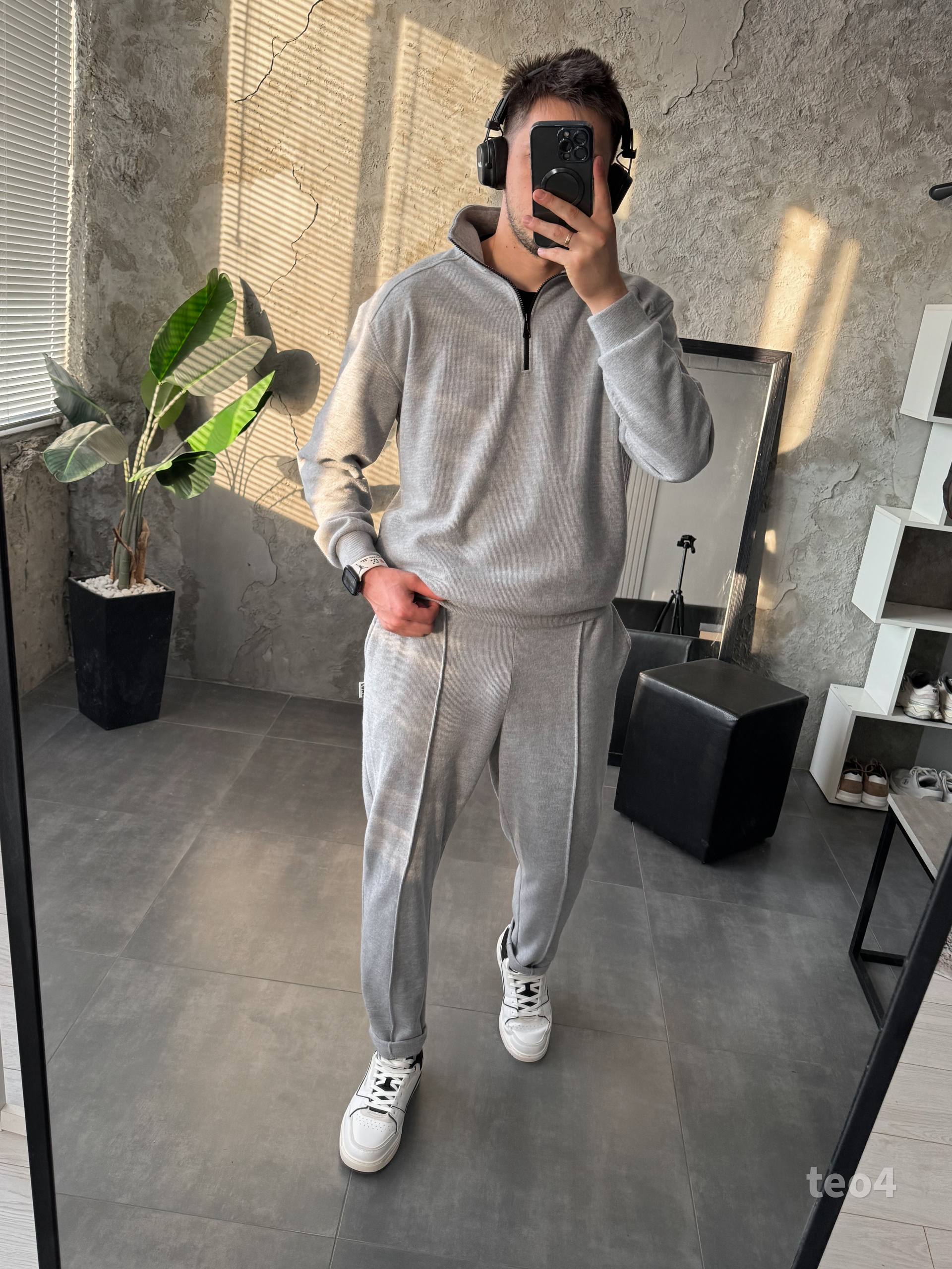 Чоловічий Сірий Костюм на Весну Осінь – Кофта з Високою Горловиною на Замку + Штани зі Стрілками