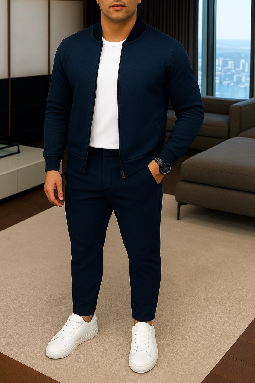 Чоловічий Замшевий Темно-Синій Костюм на Блискавці (Бомбер + Брюки)