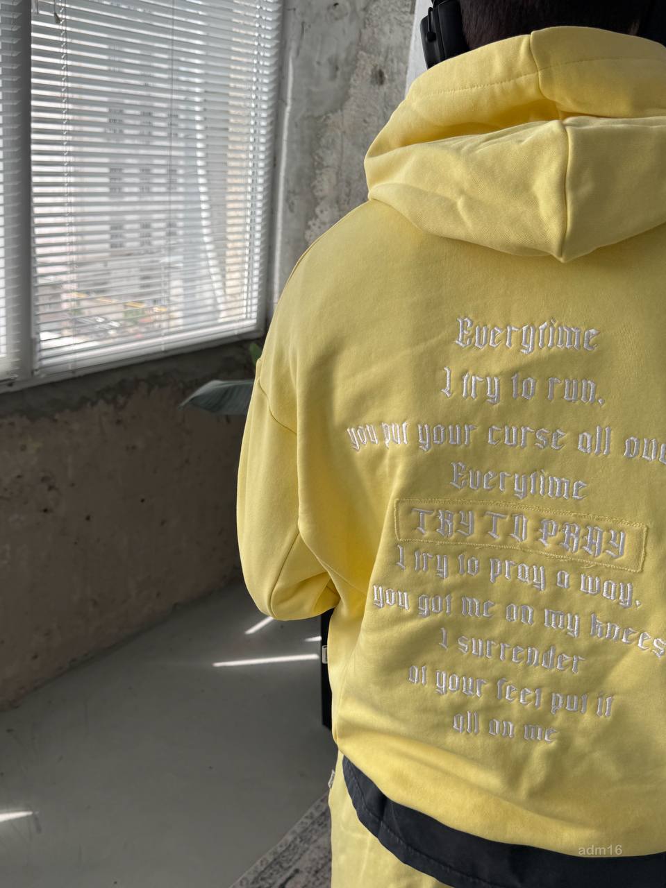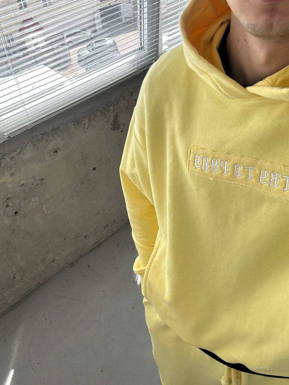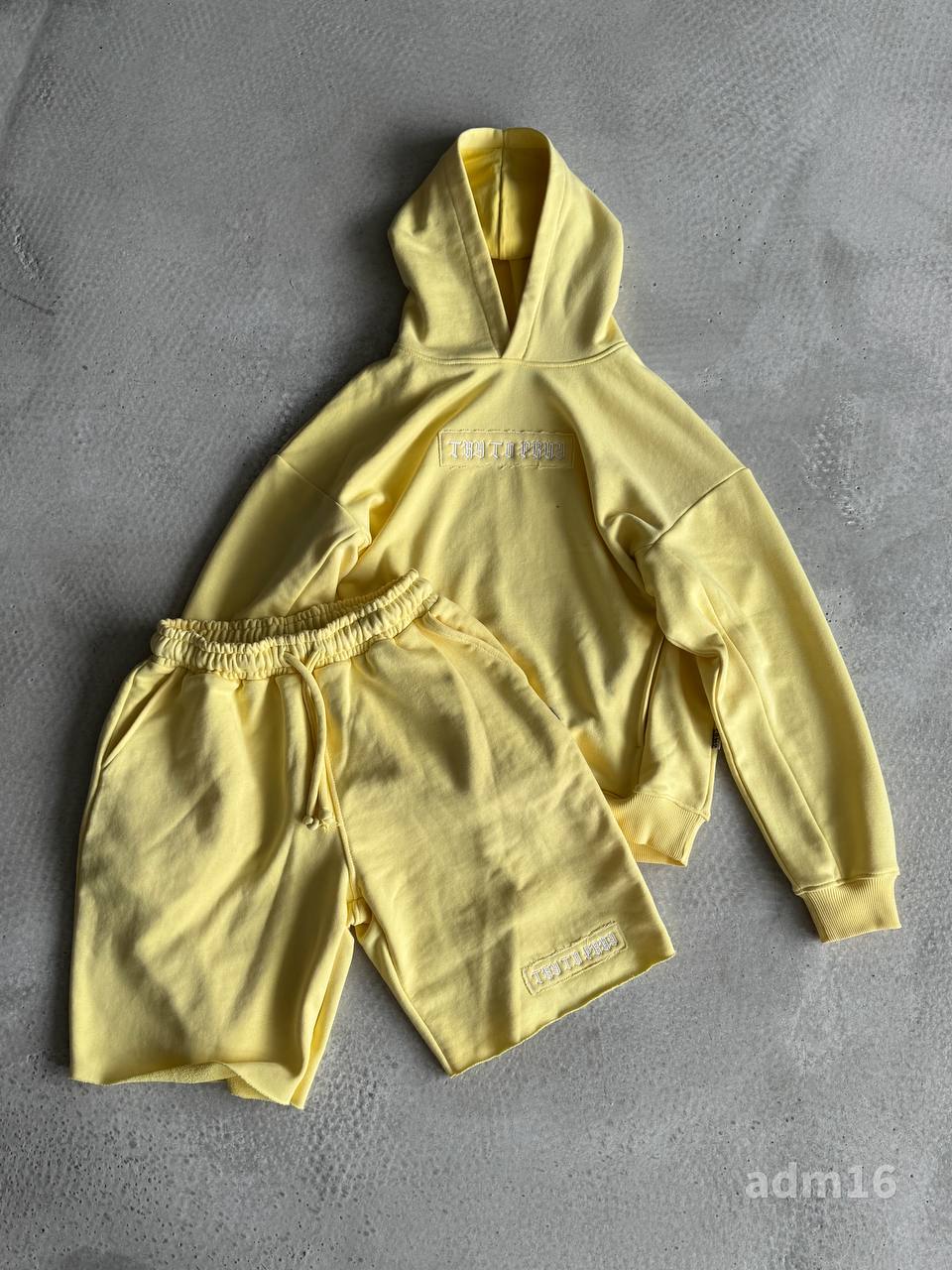 Чоловічий Жовтий Костюм Комплект Худі Шорти Оверсайз із Вишивкою на Спині
