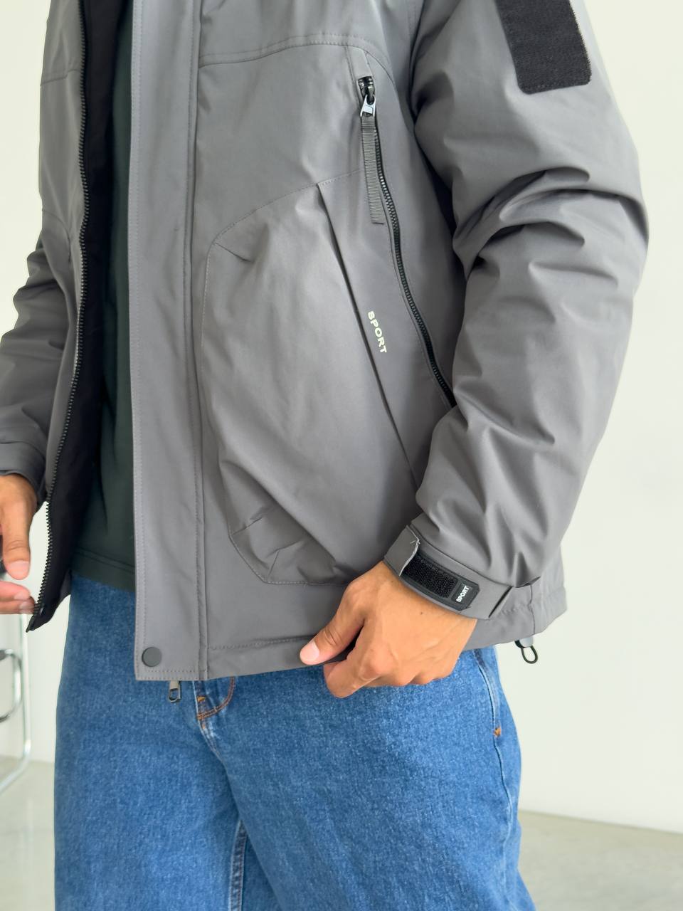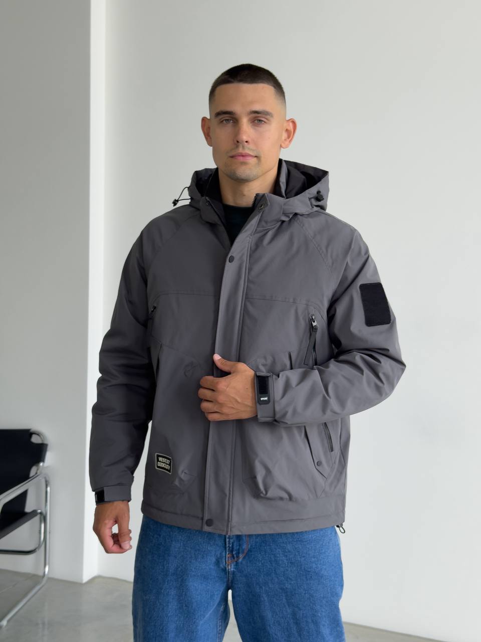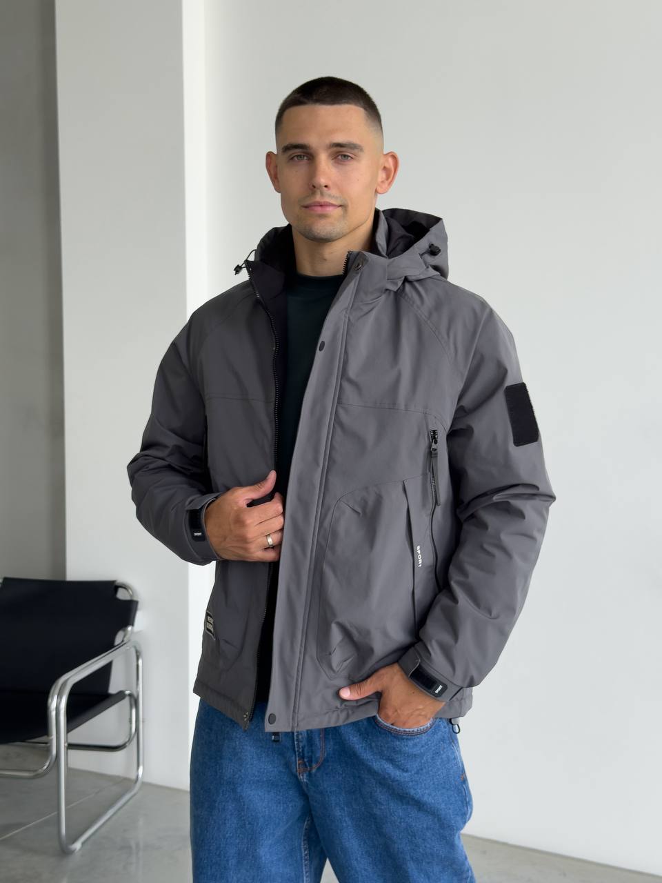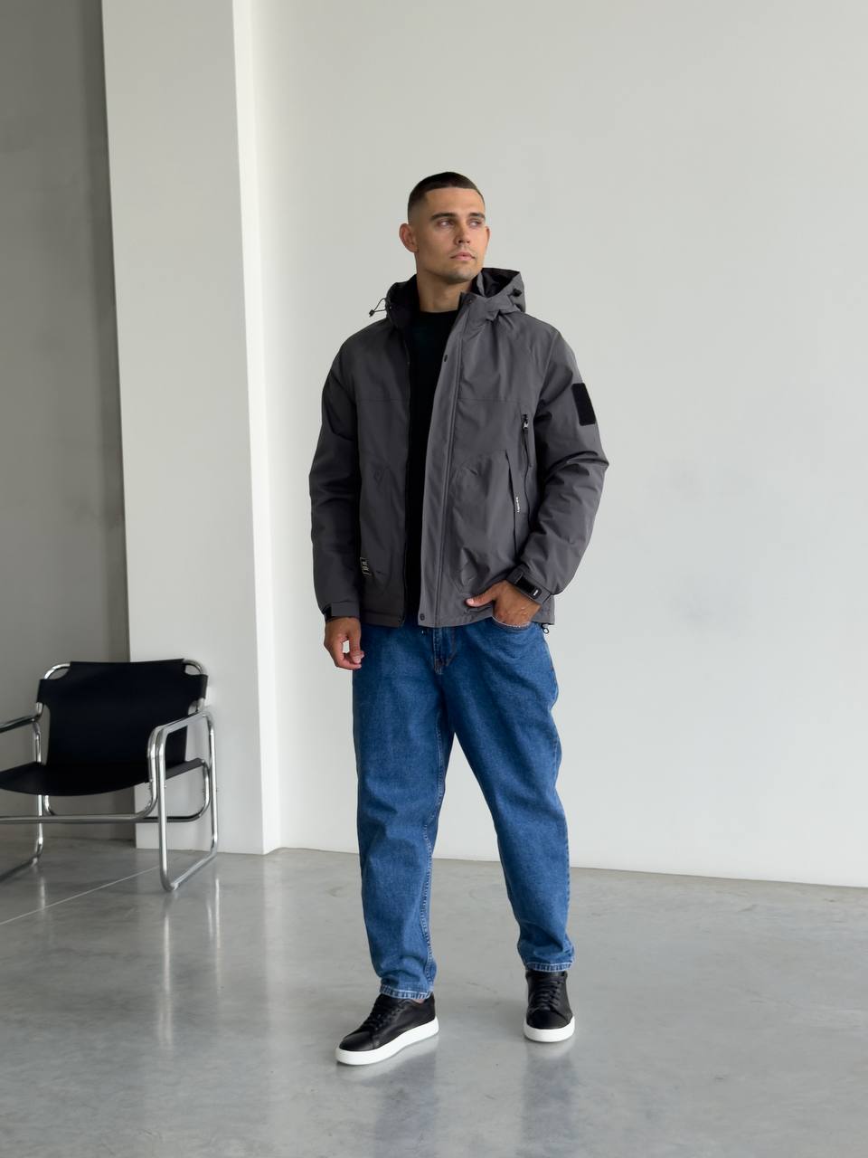 Чоловіча Демісезонна Графітова Куртка з Капюшоном та Манжетами на Липучках