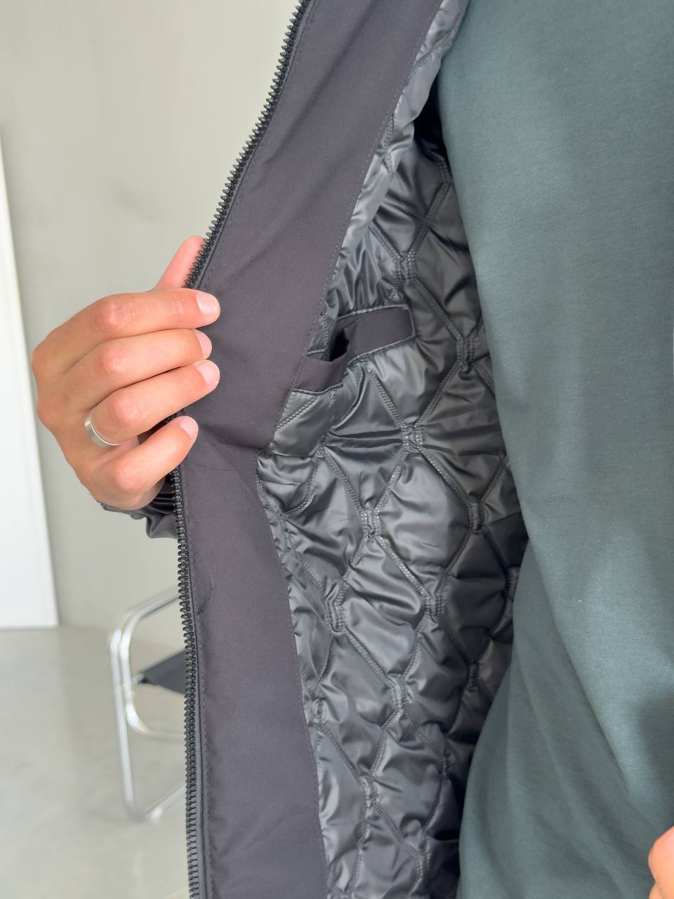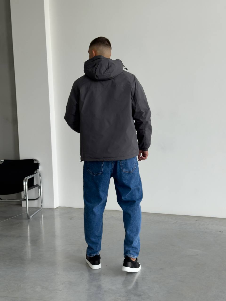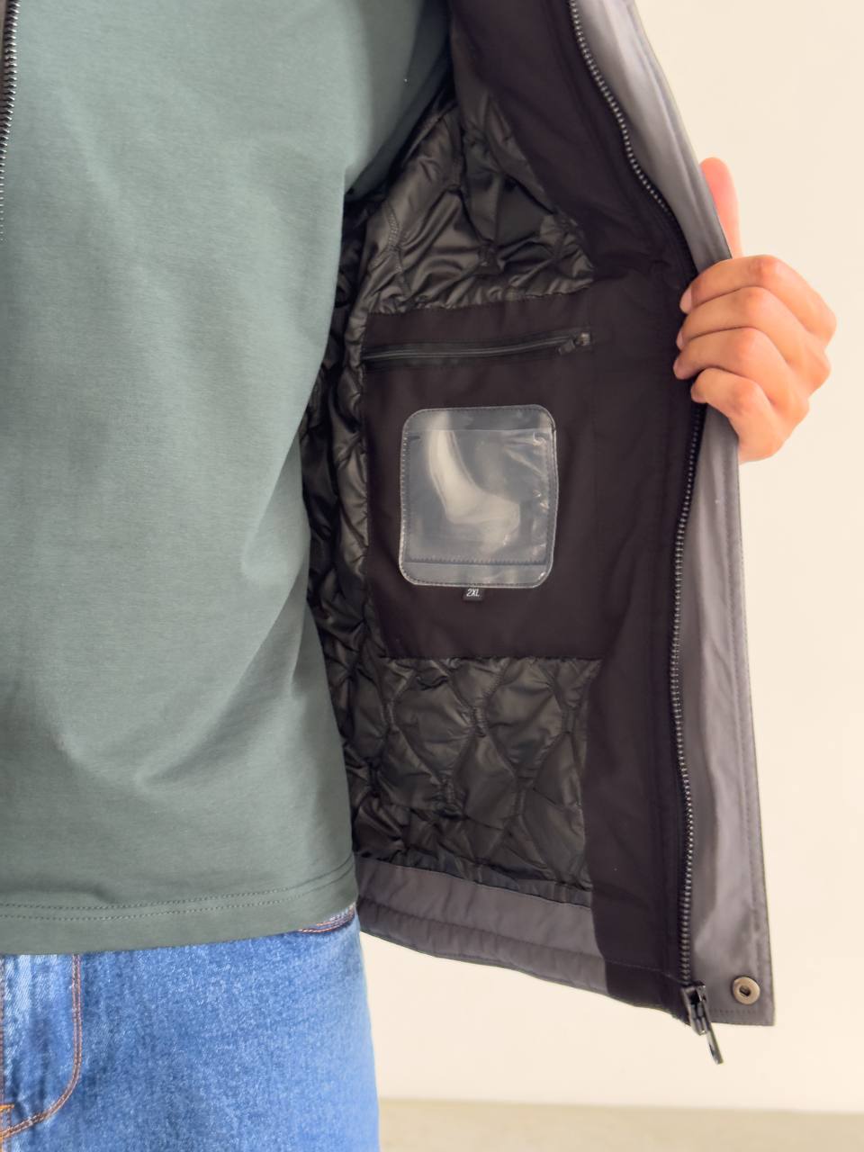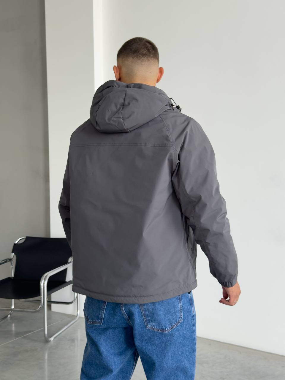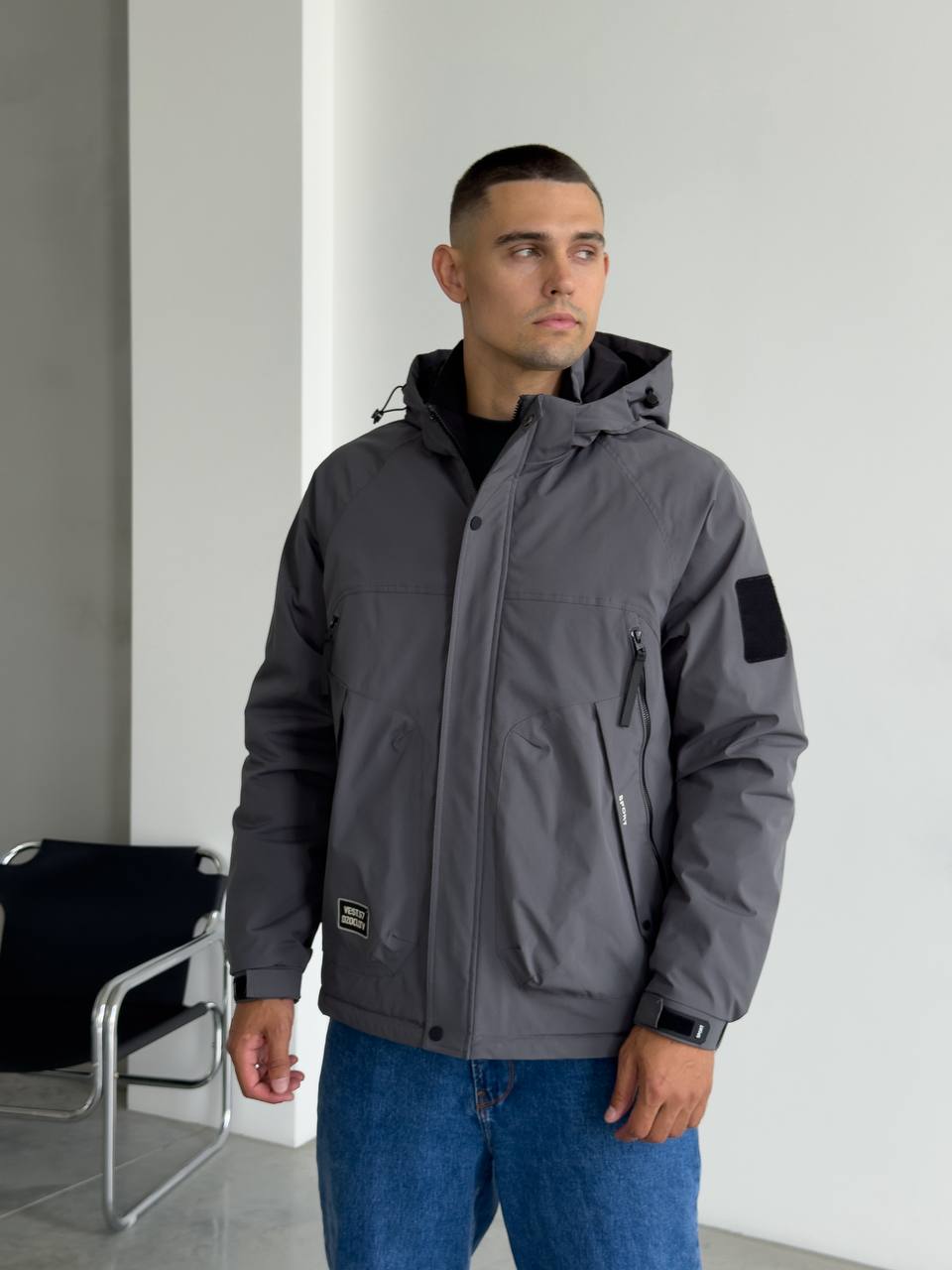 Чоловіча Демісезонна Графітова Куртка з Капюшоном та Манжетами на Липучках