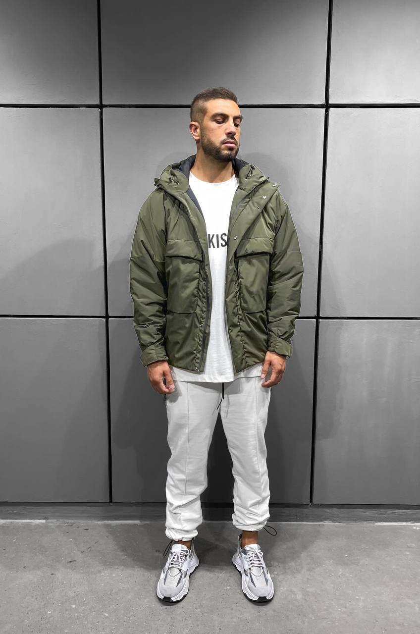 Чоловіча Демісезонна Куртка Хакі з Капюшоном та Великими Кишенями