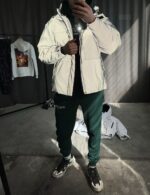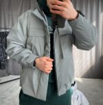 Чоловіча Демісезонна Куртка Сіра Рефлективна Оверсайз – Легка Водовідштовхувальна з Капюшоном та Великими Накладними Кишенями на Груди