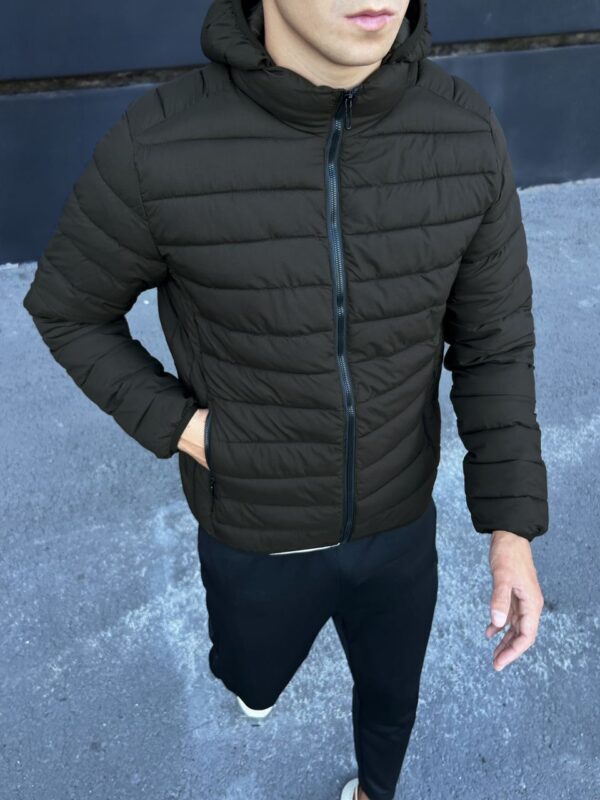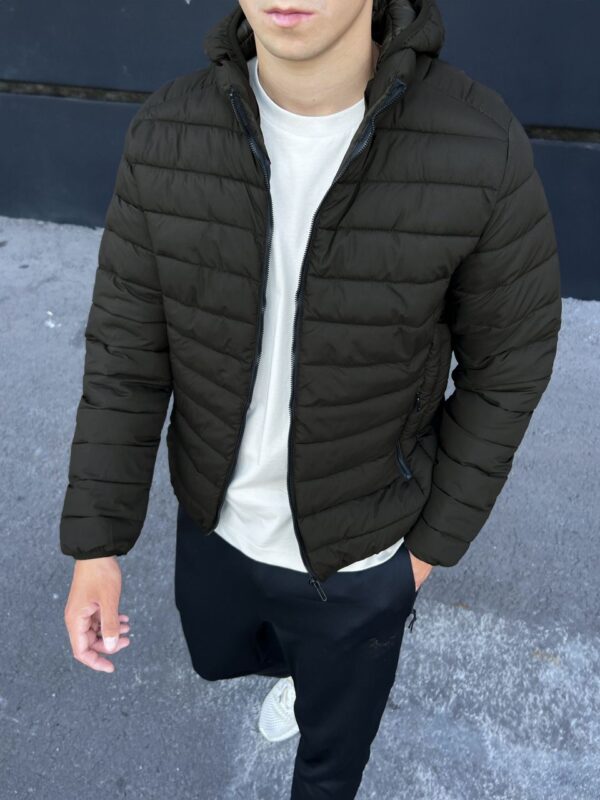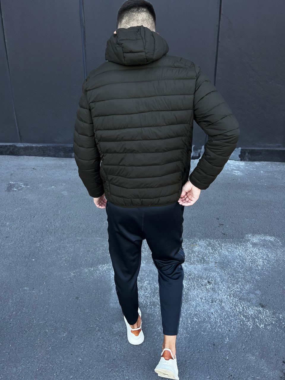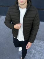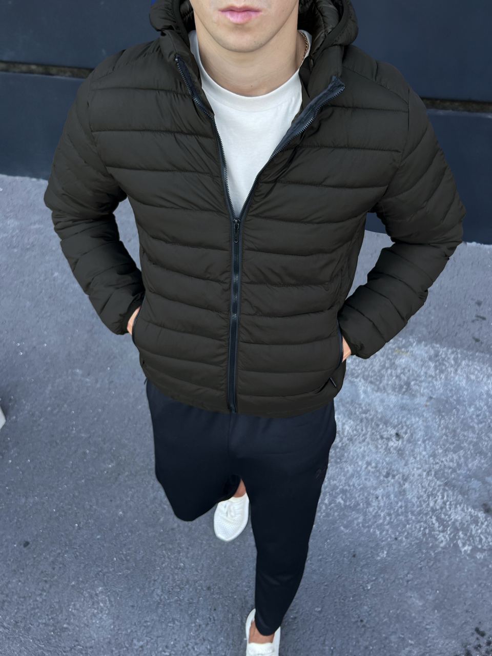 Чоловіча Демісезонна Оливкова Куртка Стеганка – Приталена зі Знімним Капюшоном