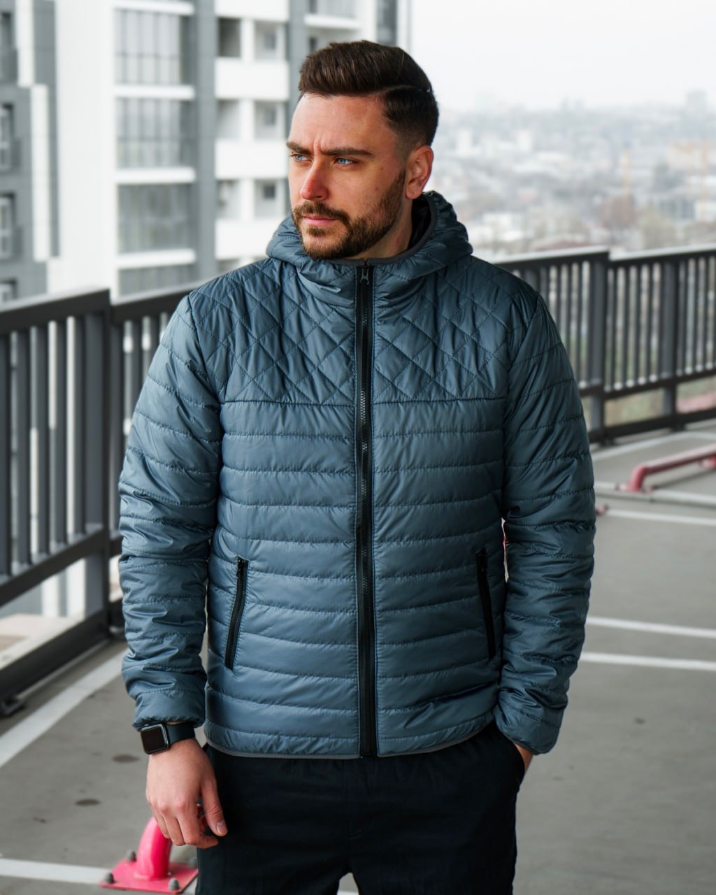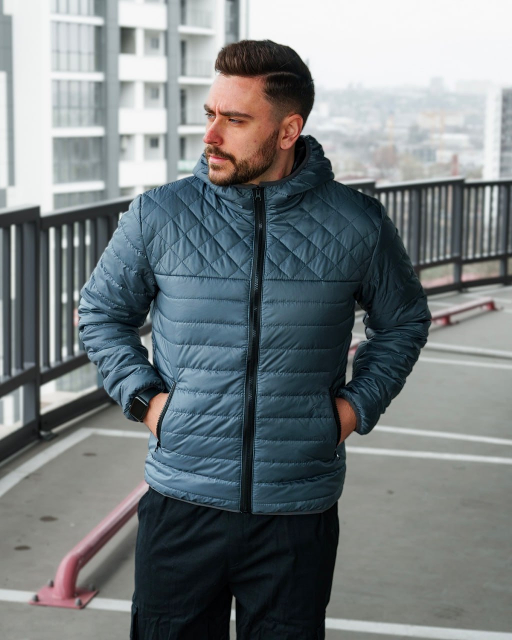 Чоловіча Демісезонна Темно-Бірюзова Куртка – Прострочена з Капюшоном