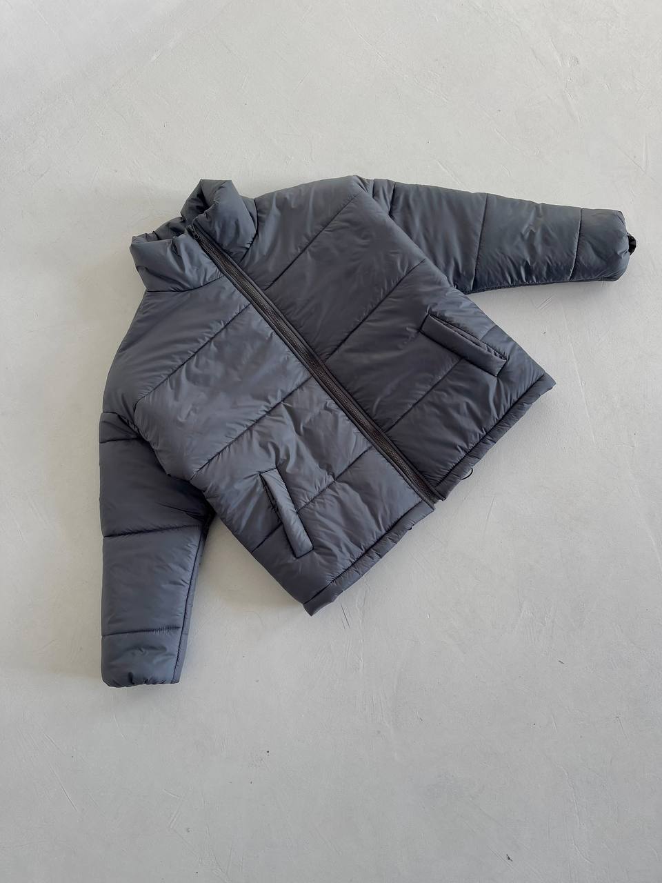 Чоловіча Демісезонна Темно-Сіра Куртка Плащівка Оверсайз з Високим Горлом на Блискавці