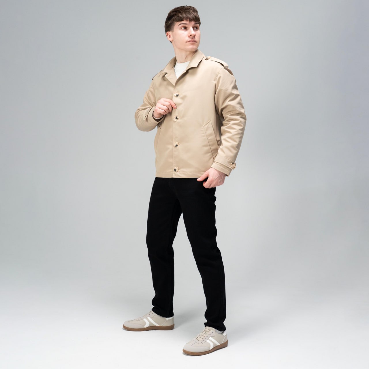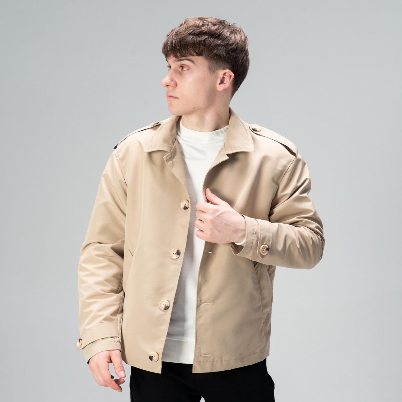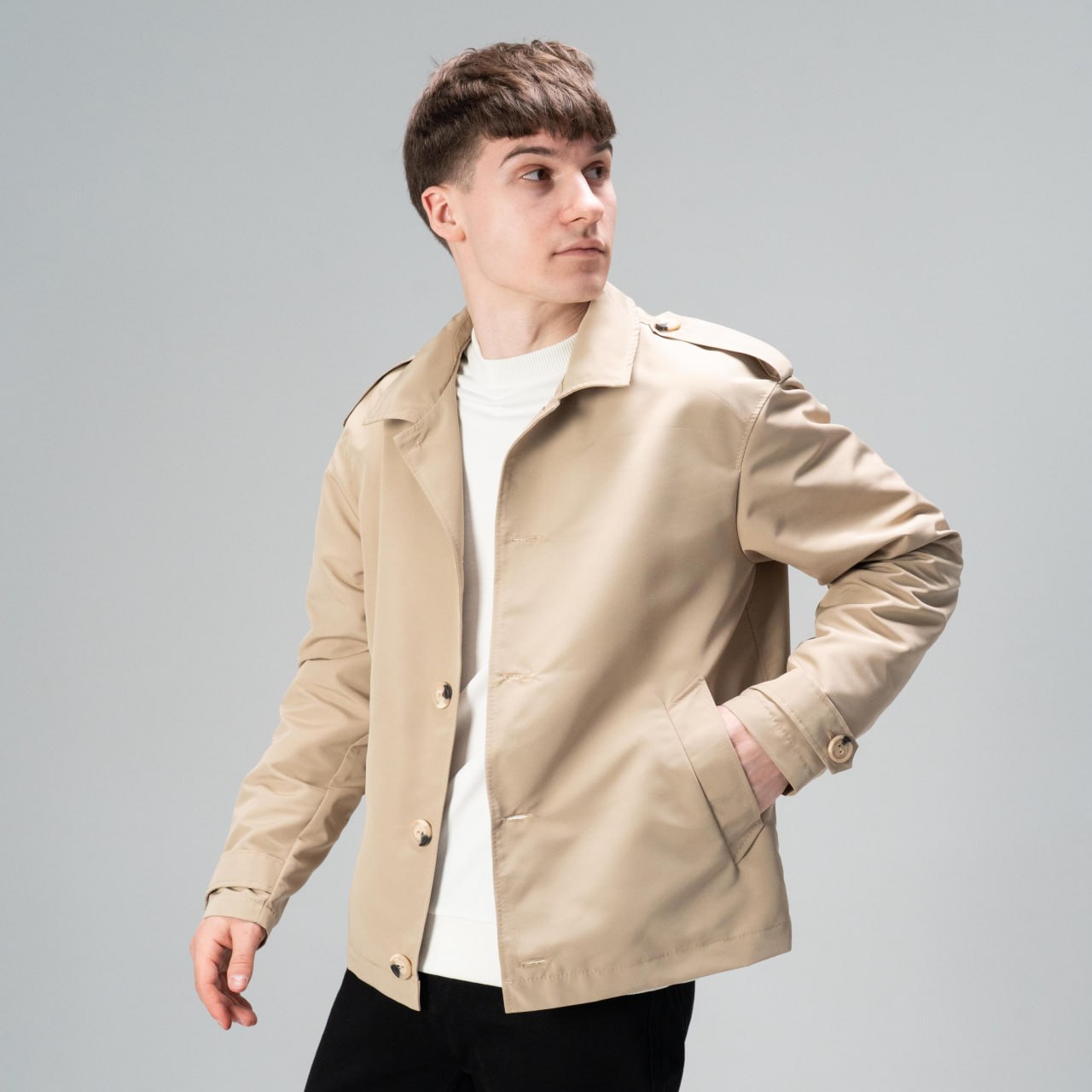 Чоловічий Короткий Бежевий Плащ Тренч – Класичний на Ґудзиках