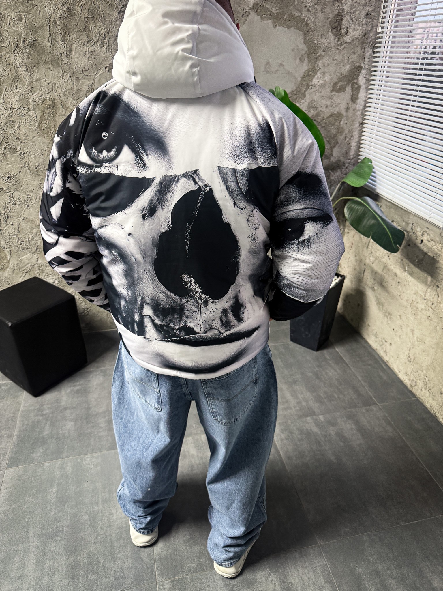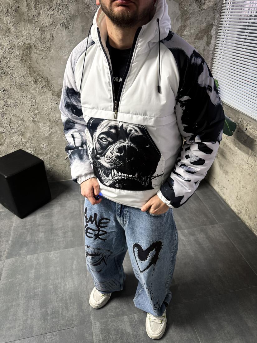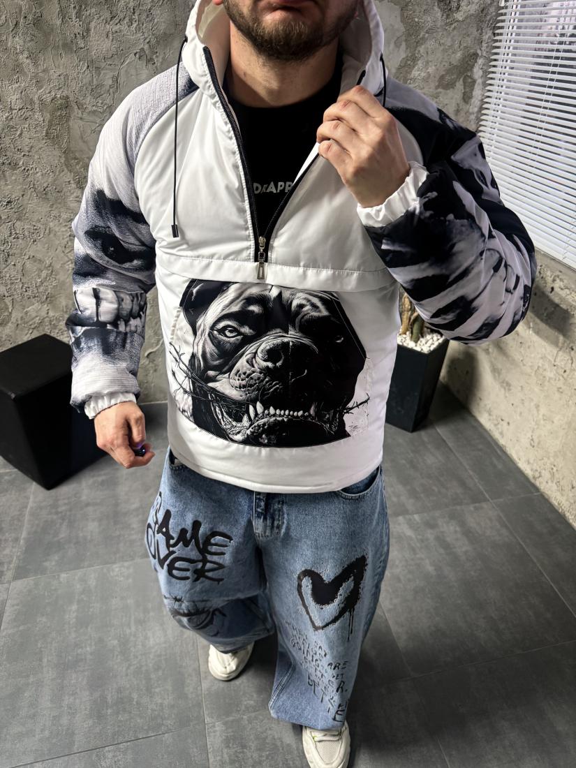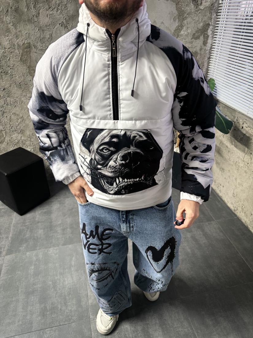 Чоловічий Утеплений Білий Анорак Плащівка з Капюшоном в Принт Кане-Корсо