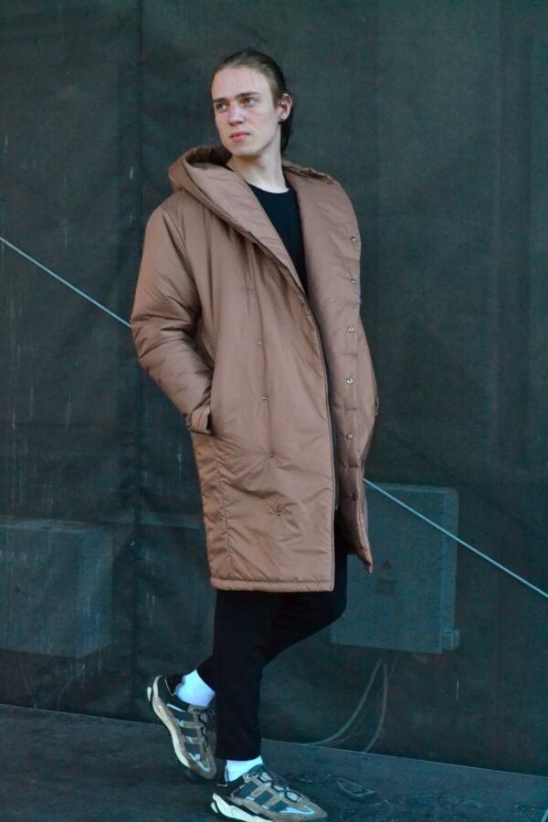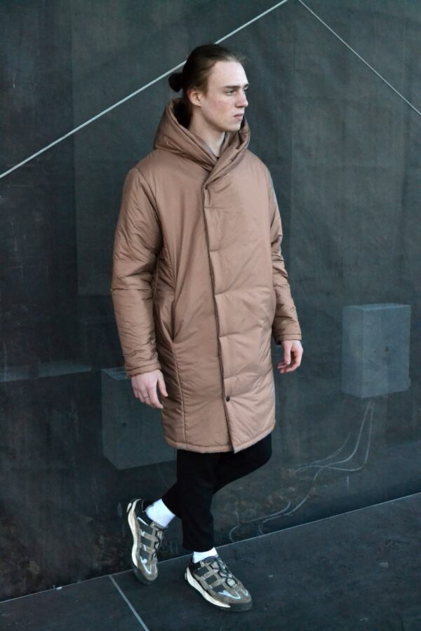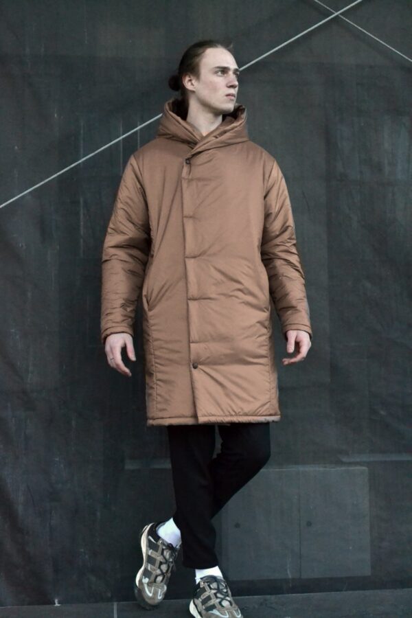 Чоловіча Подовжена Зимова Куртка Мокко на Запах з Капюшоном
