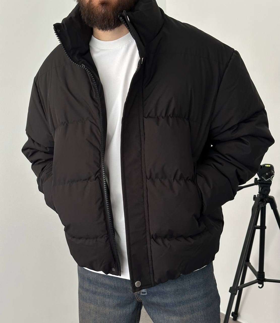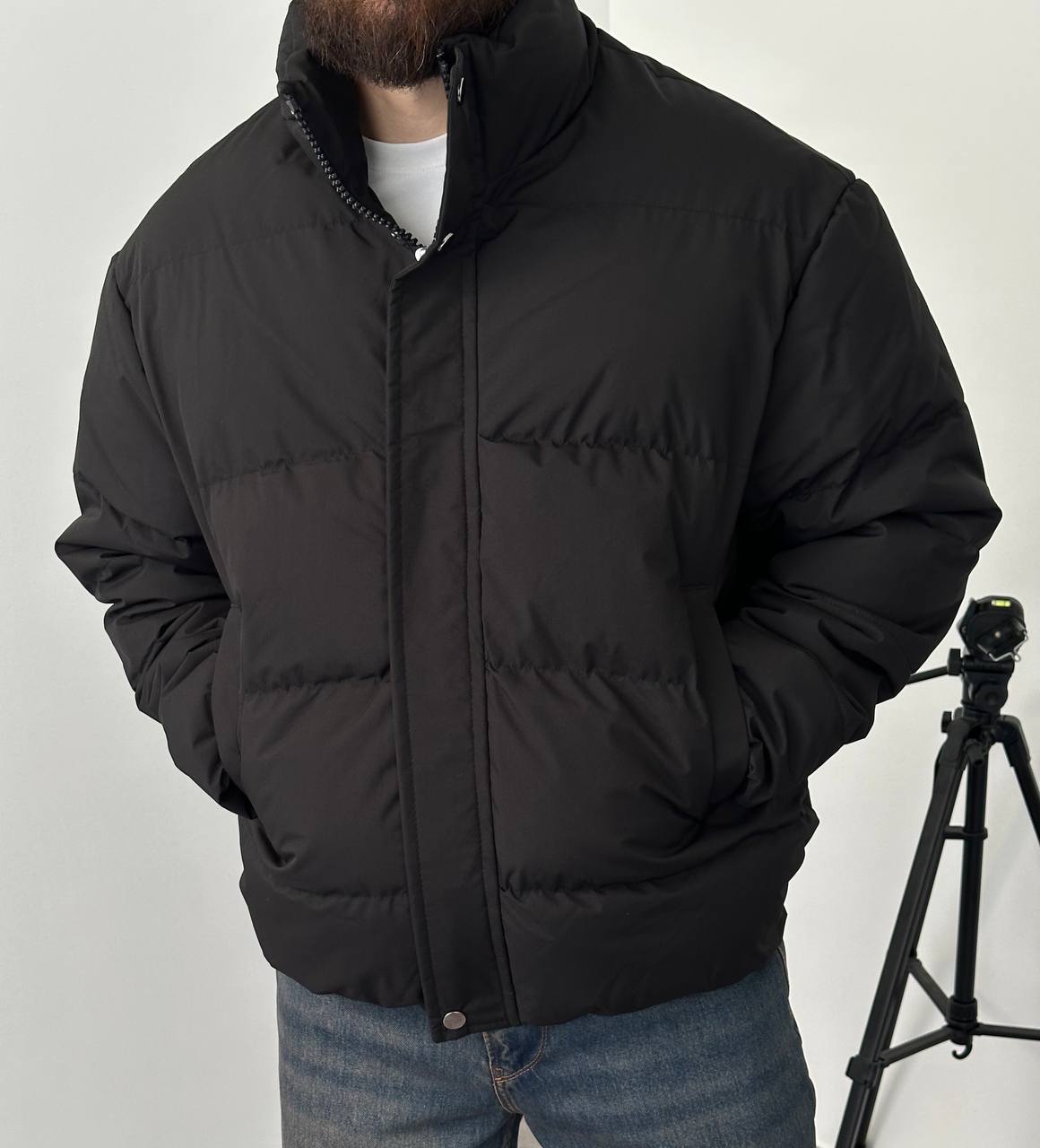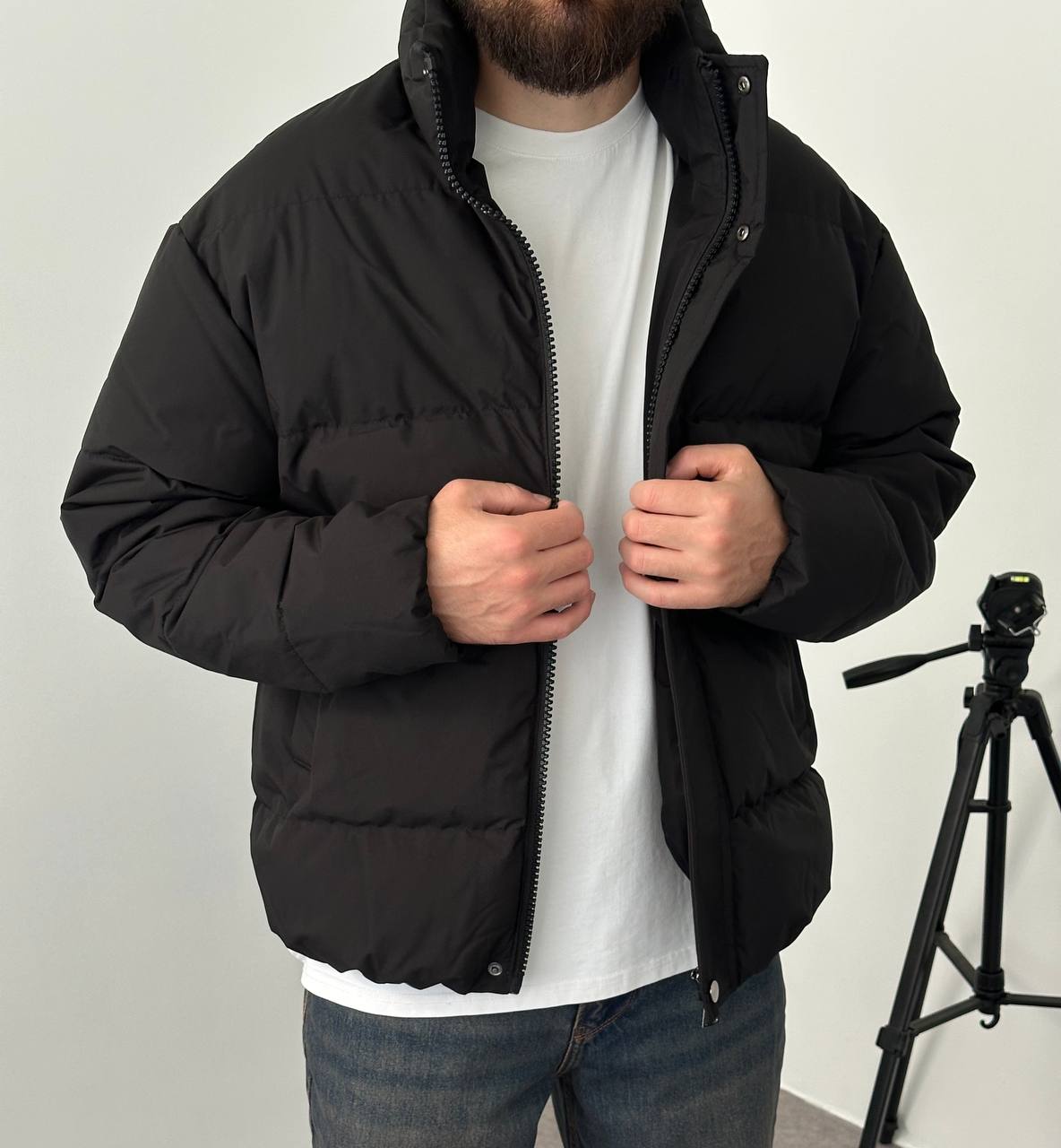 Чоловіча Зимова Чорна Дута Куртка Пуфер Оверсайз під Горло на Блискавці з Гумками на Рукавах і Внизу (Копировать)