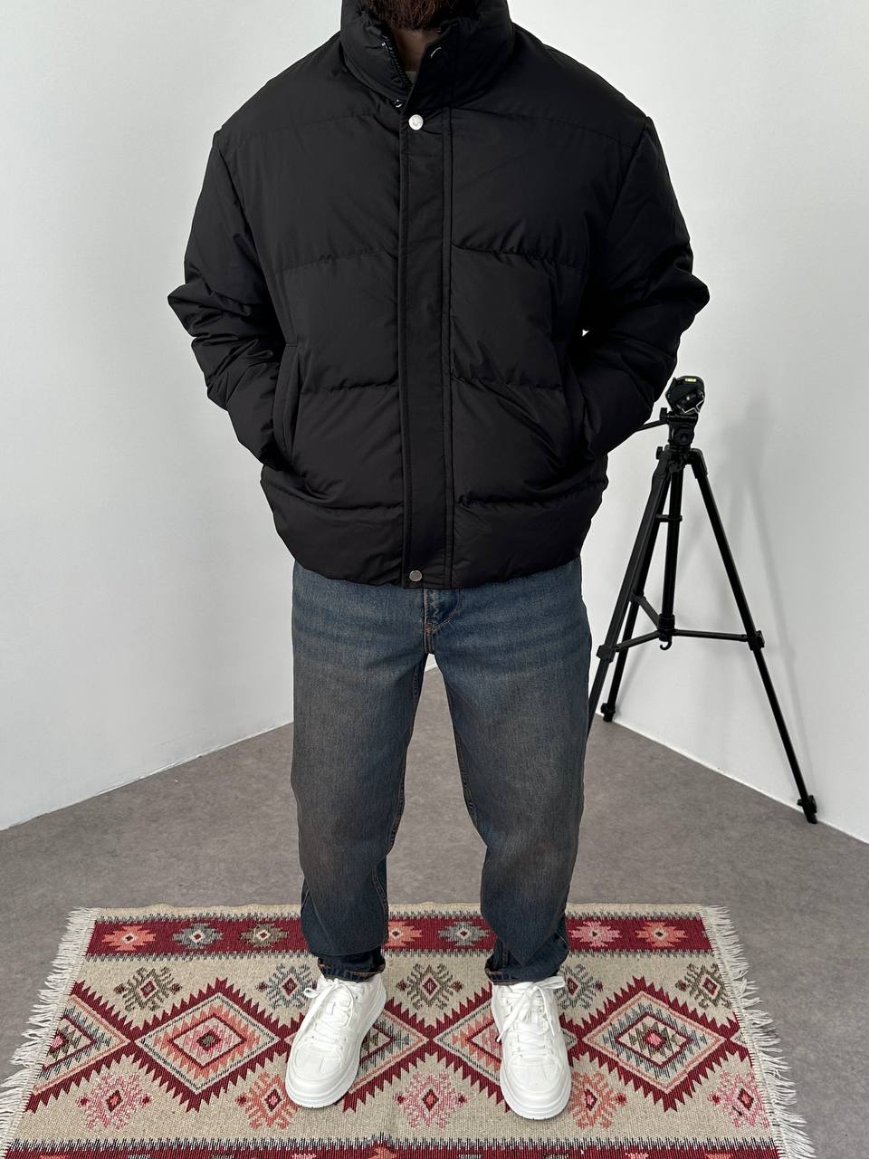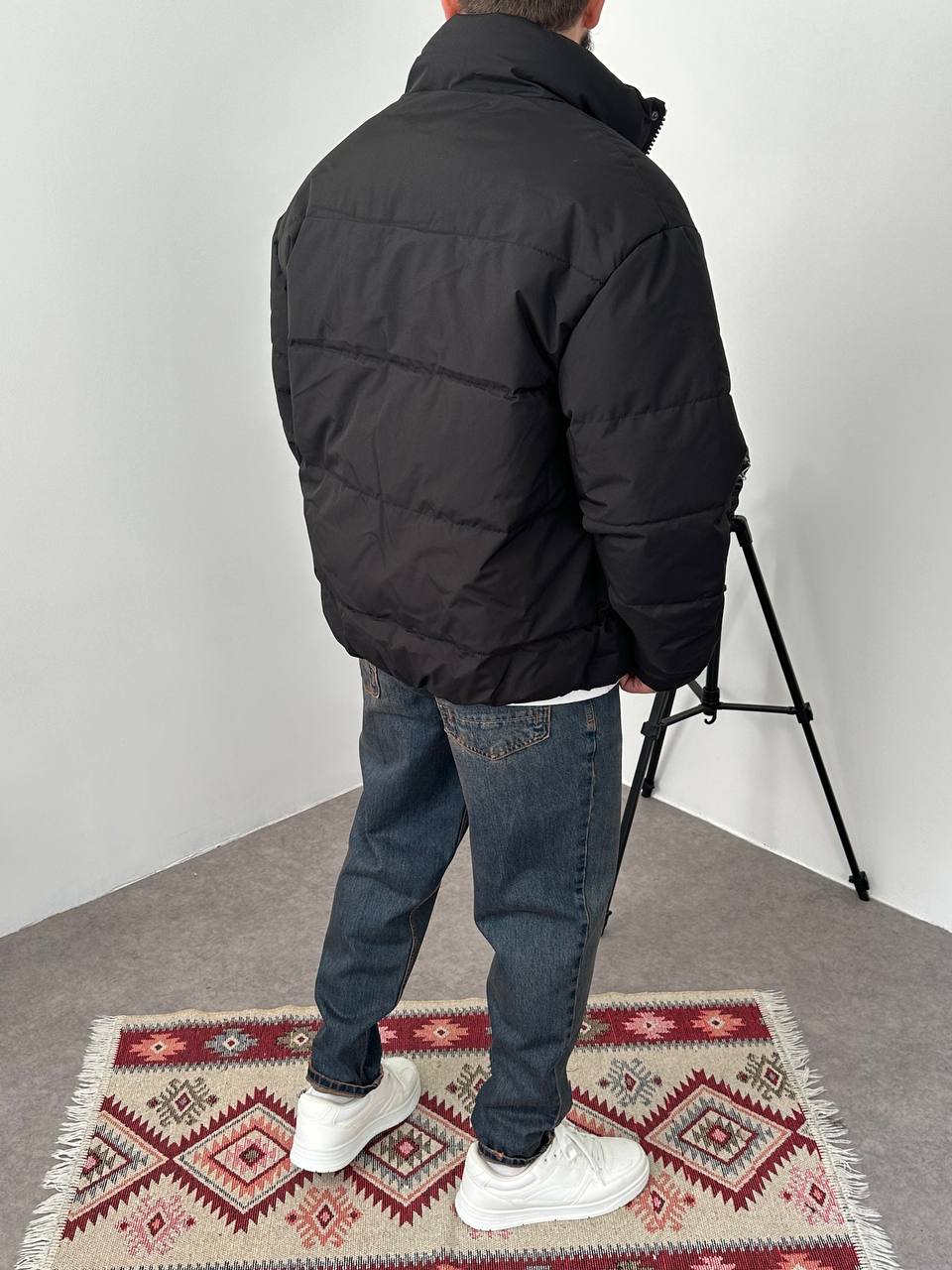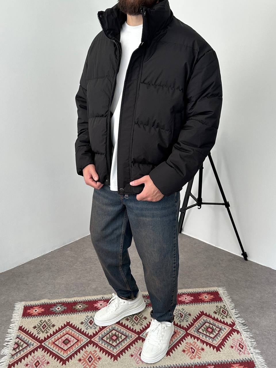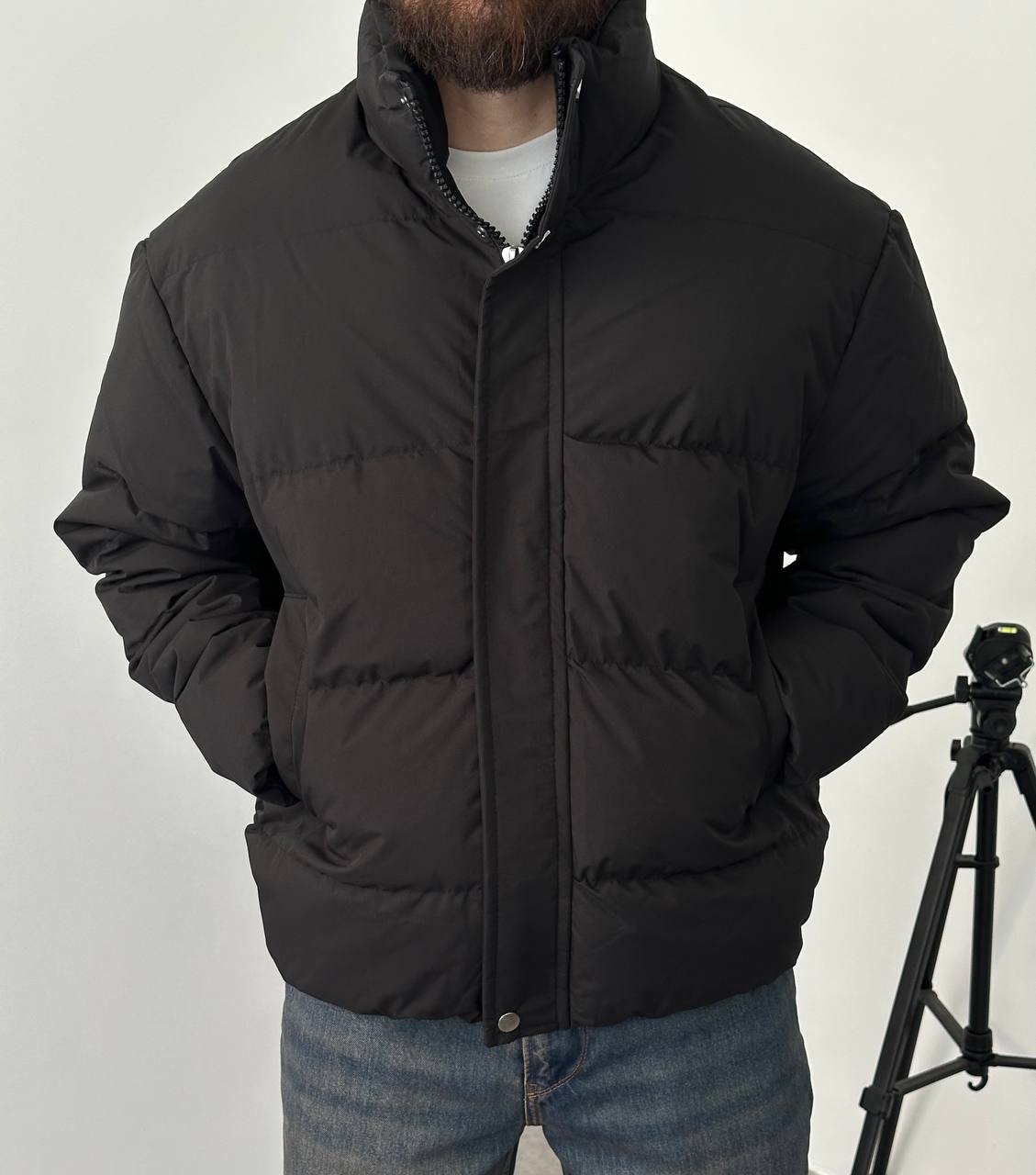 Чоловіча Зимова Чорна Дута Куртка Пуфер Оверсайз під Горло на Блискавці з Гумками на Рукавах і Внизу (Копировать)