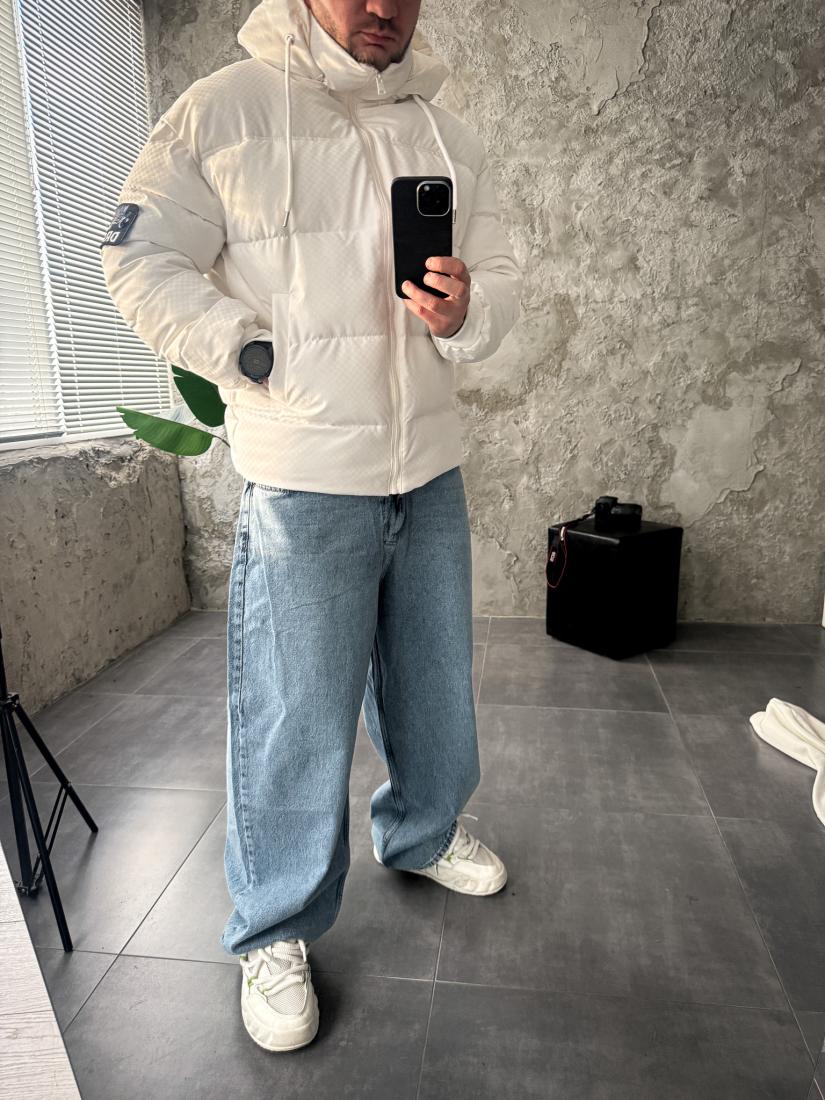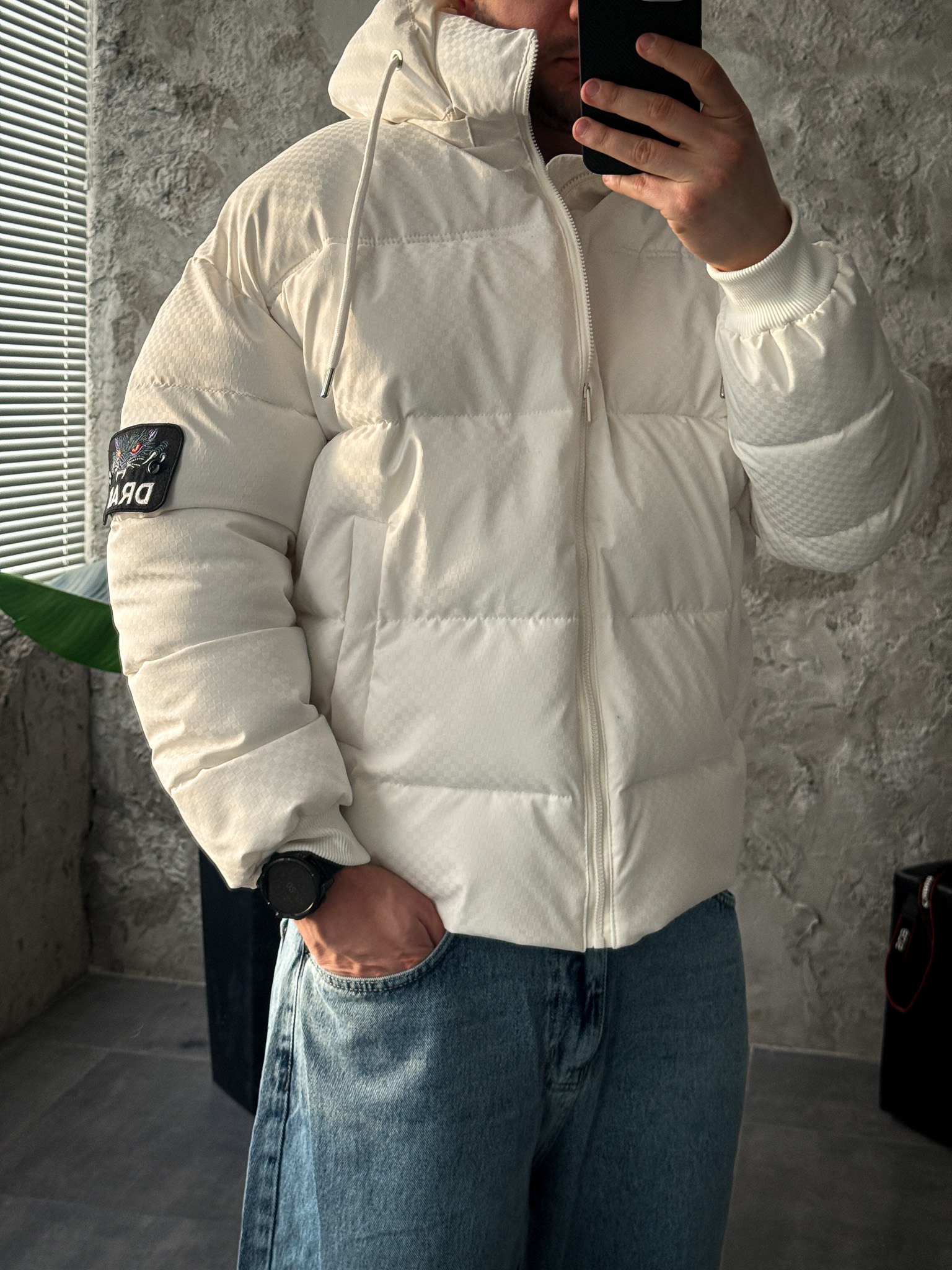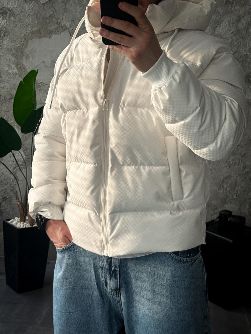Чоловіча Зимова Біла Куртка Пуховик Дутік з Капюшоном та Високим Горлом