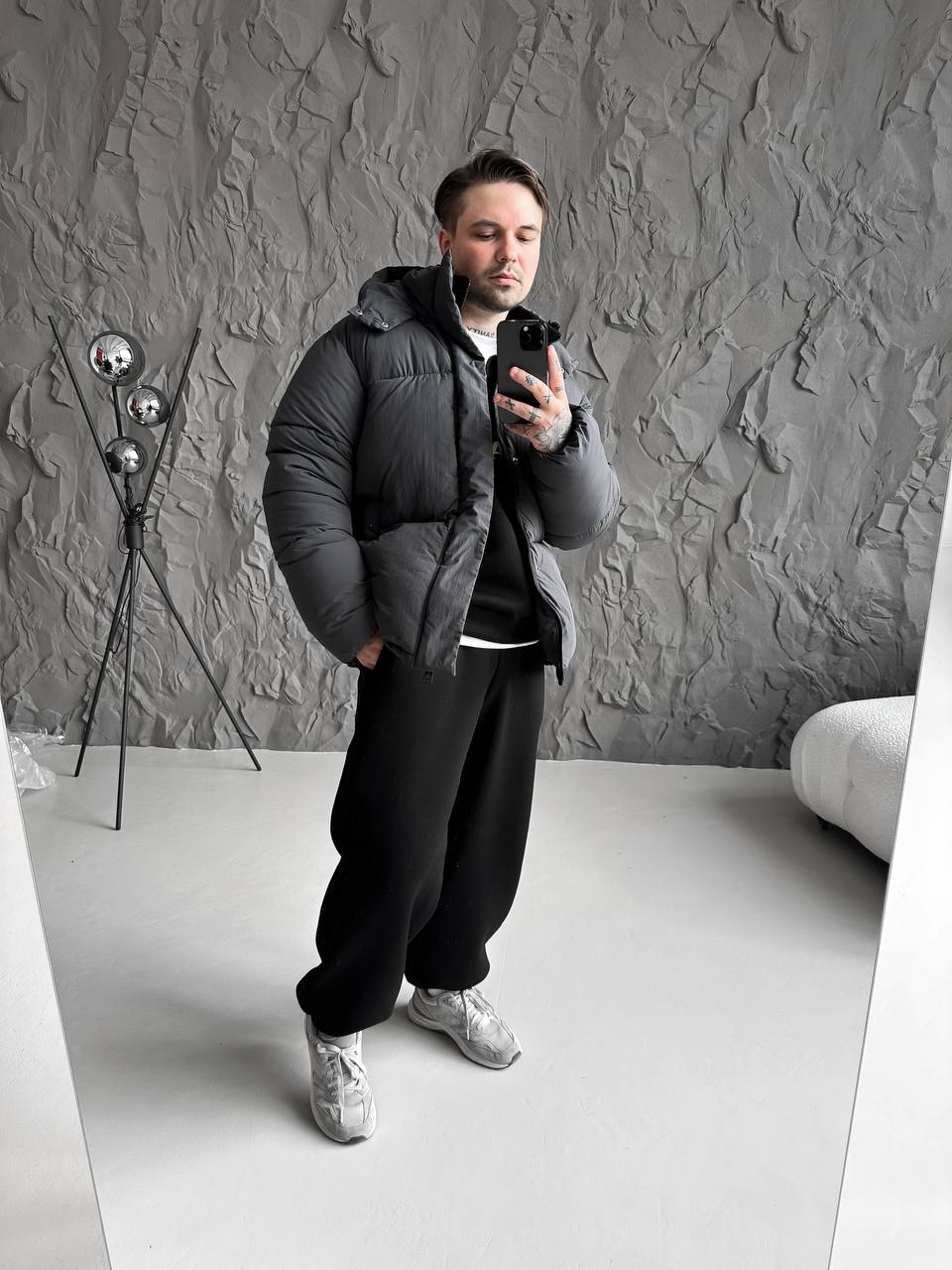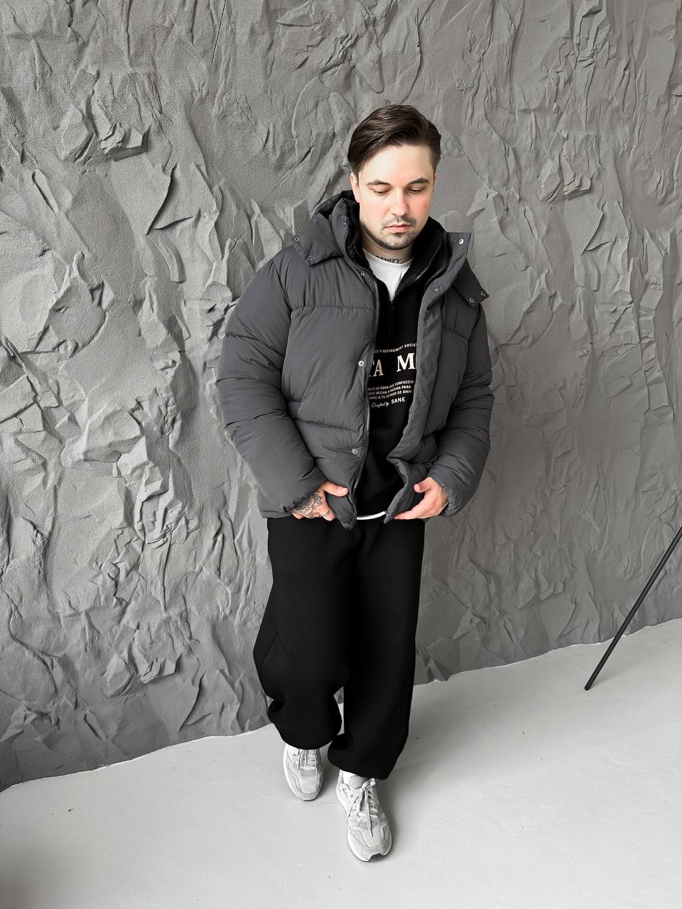 Мужская Зимняя Графитовая Куртка Пуфер - Стеганая Дутик с Капюшоном