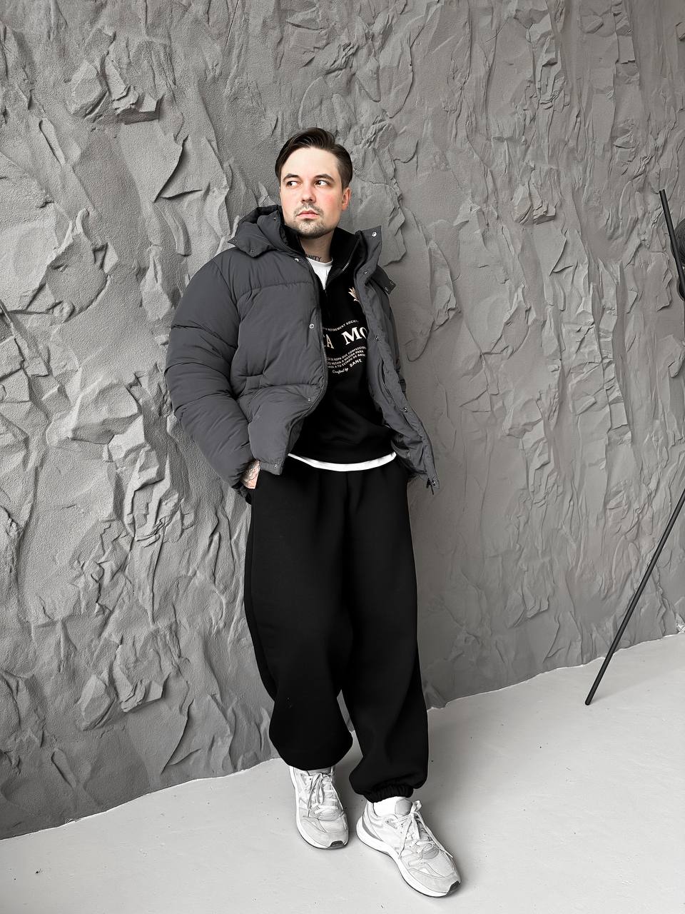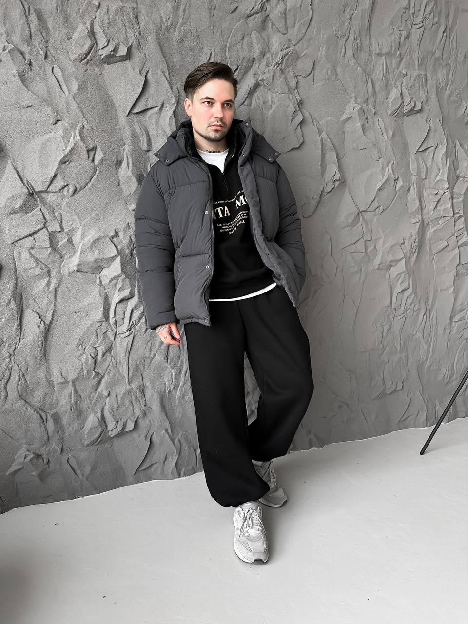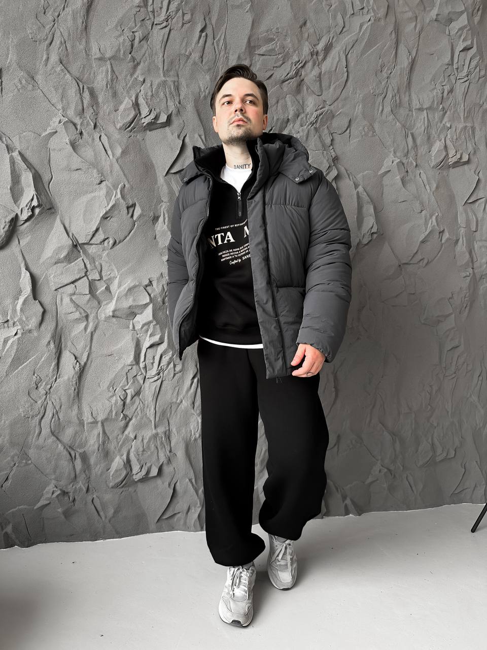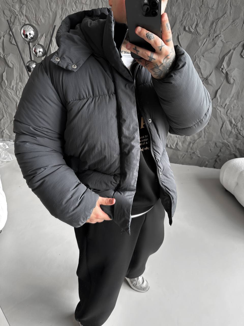 Чоловіча Зимова Графітова Куртка Пуфер – Стьобана Дутік з Капюшоном