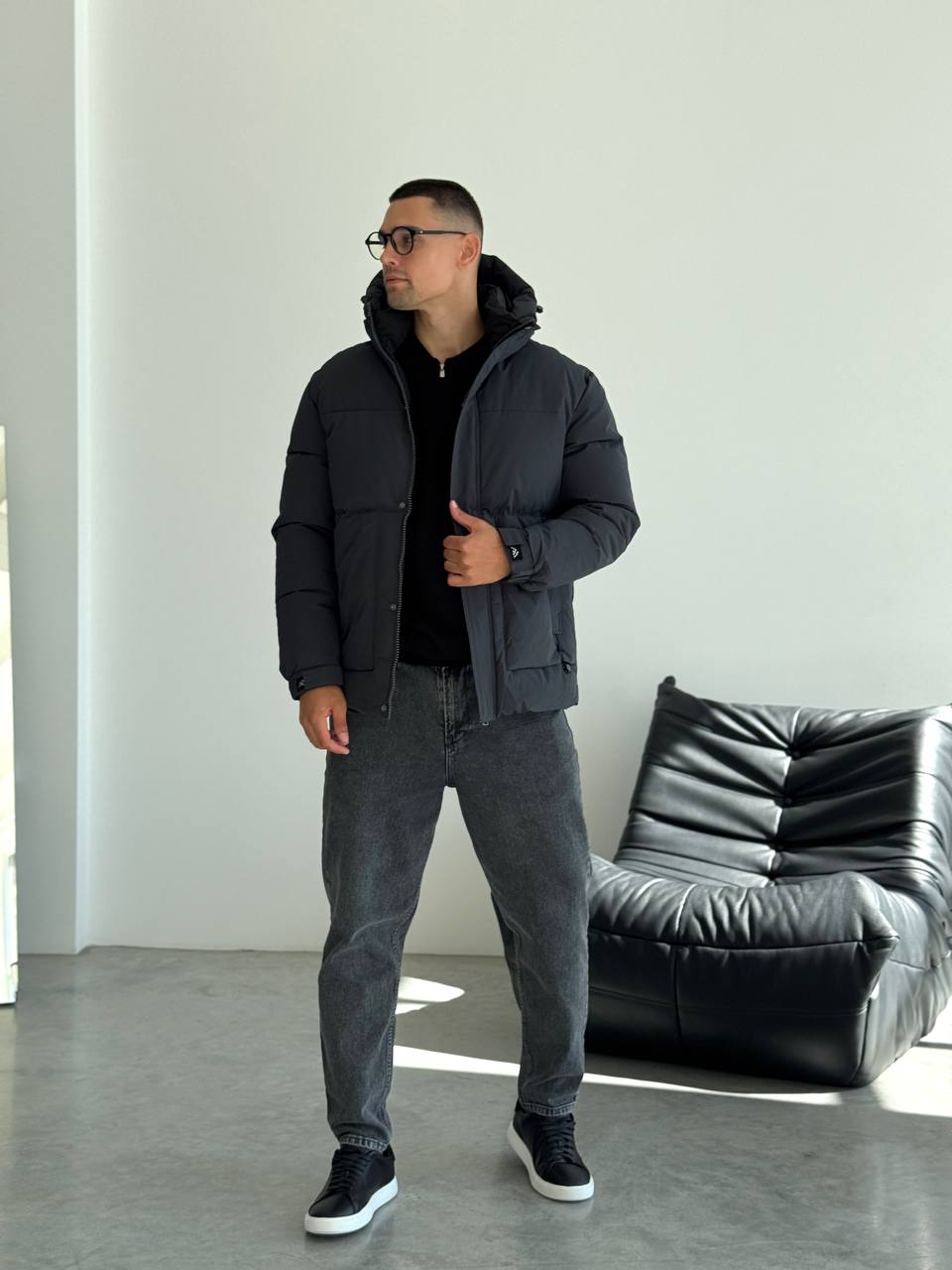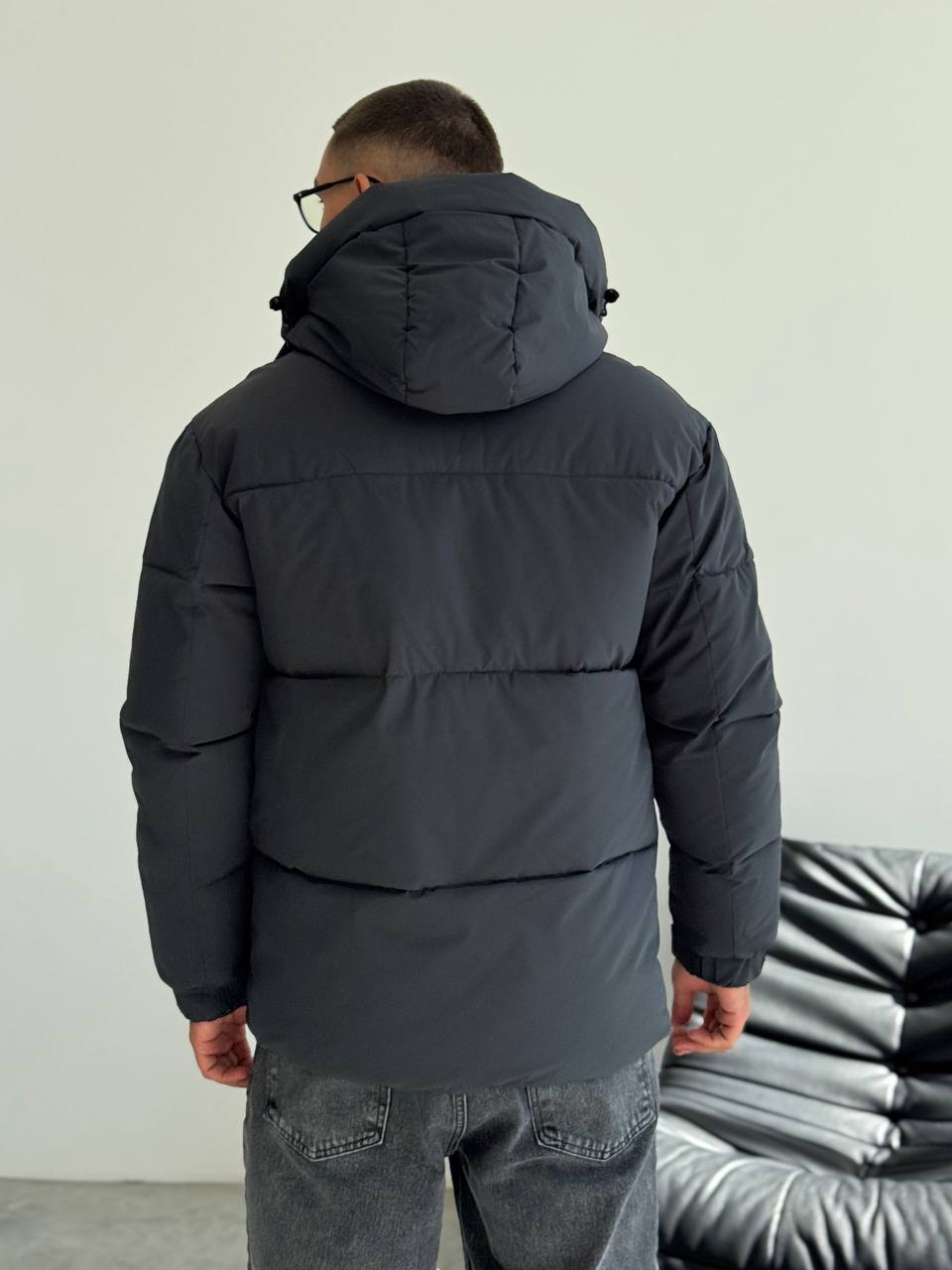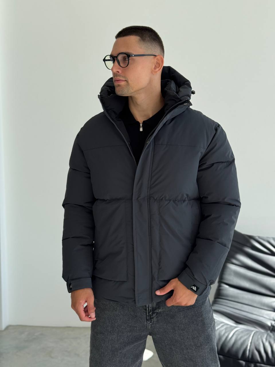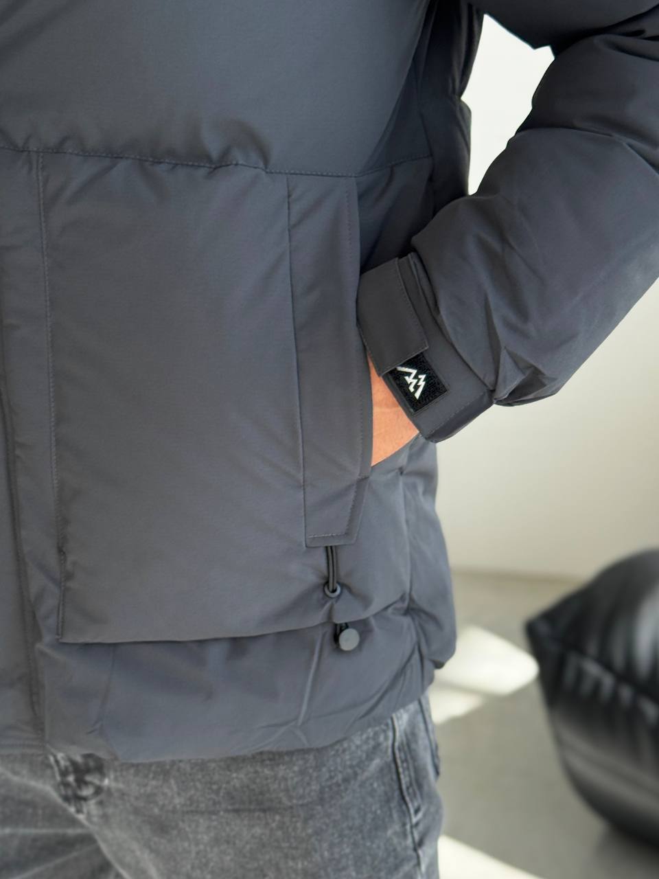 Чоловіча Зимова Графітова Куртка з Капюшоном і Липучками на Рукавах