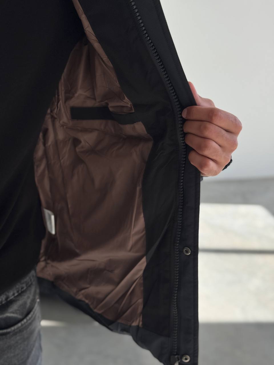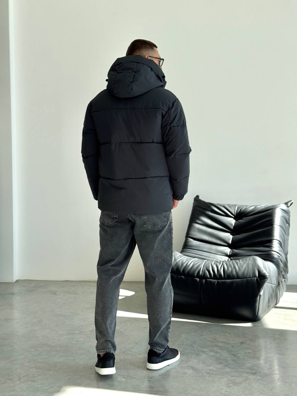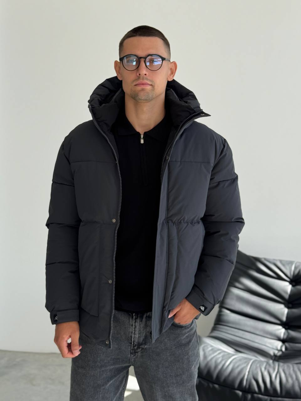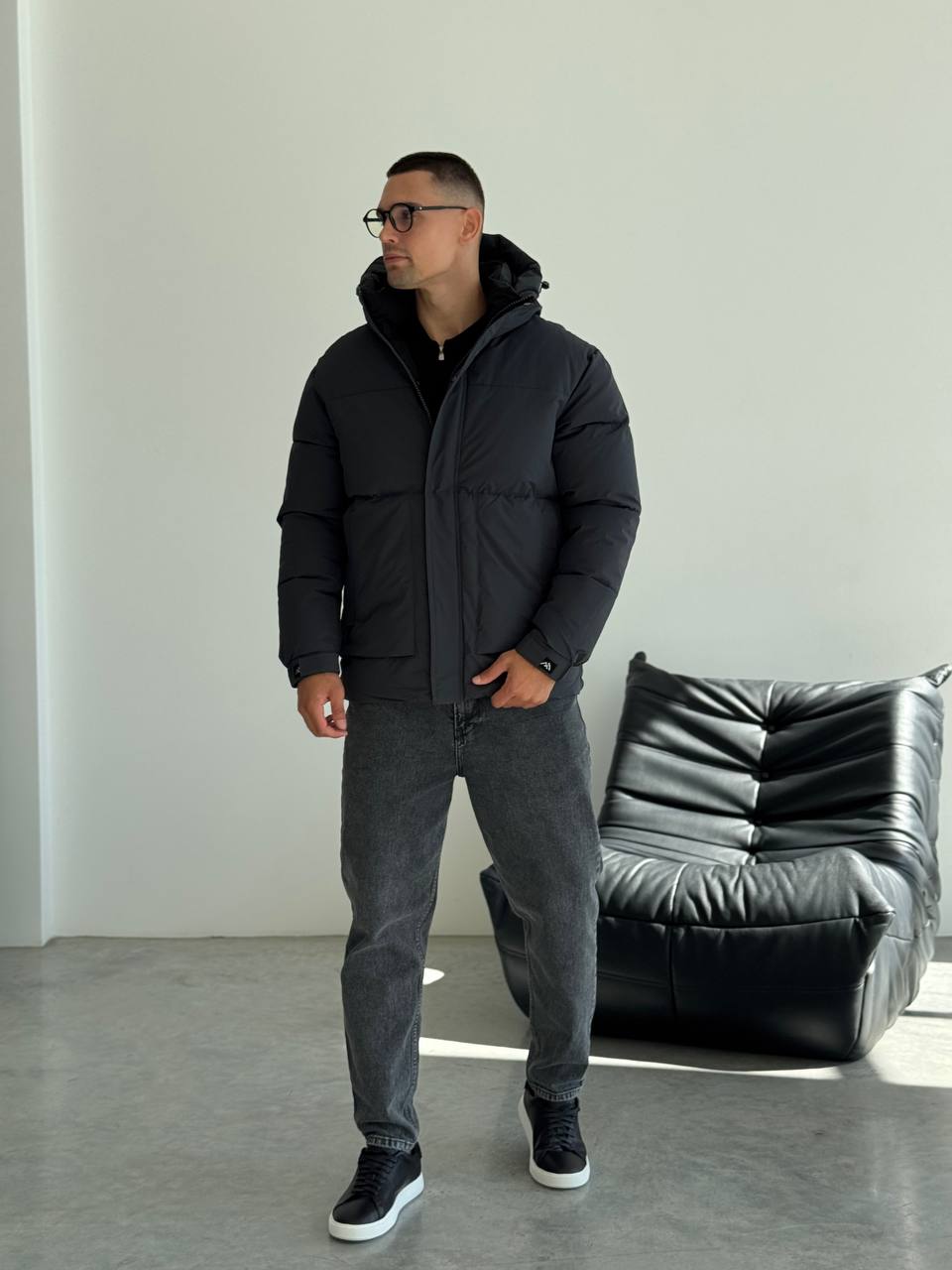 Чоловіча Зимова Графітова Куртка з Капюшоном і Липучками на Рукавах