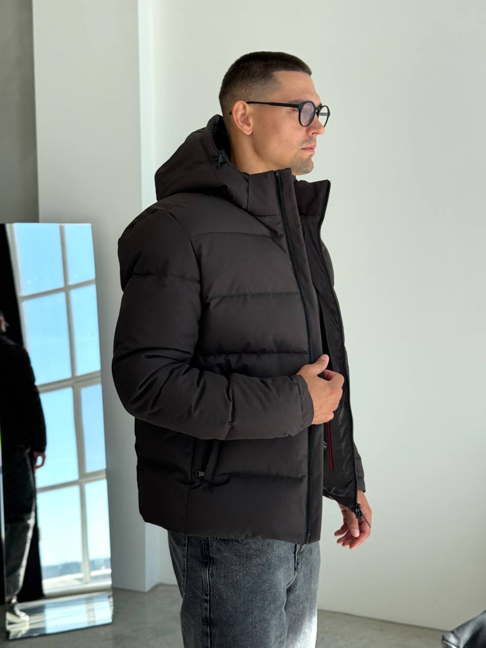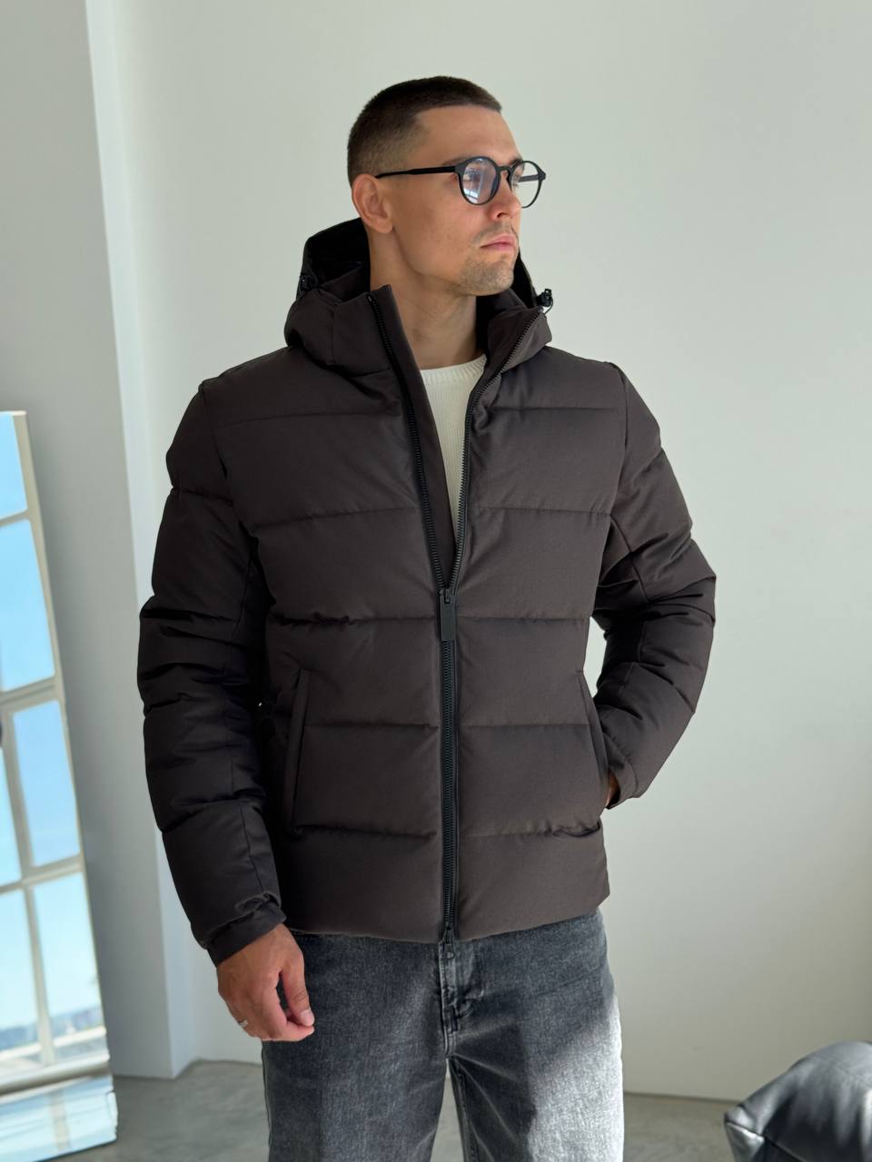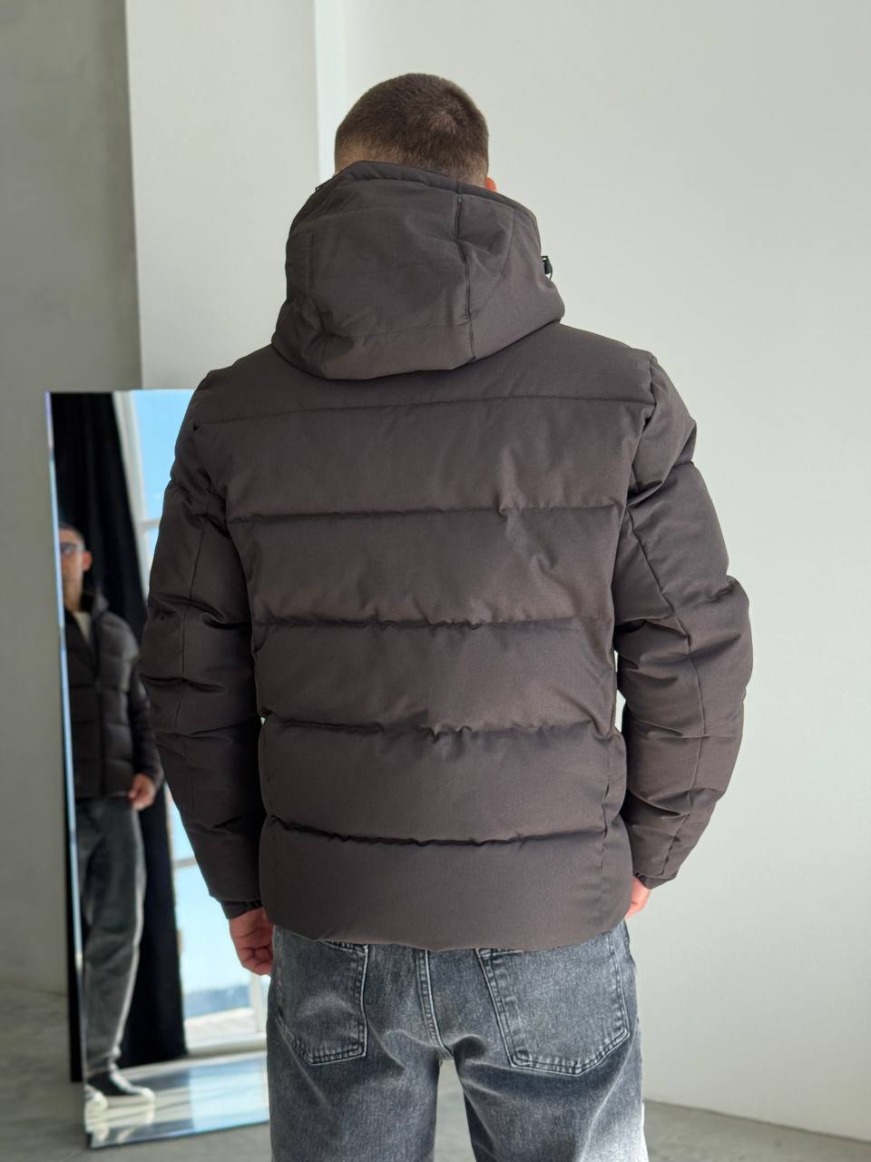 Чоловіча Зимова Коричнева Куртка – Стьобана з Капюшоном на Затяжках