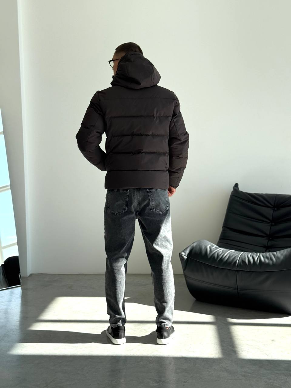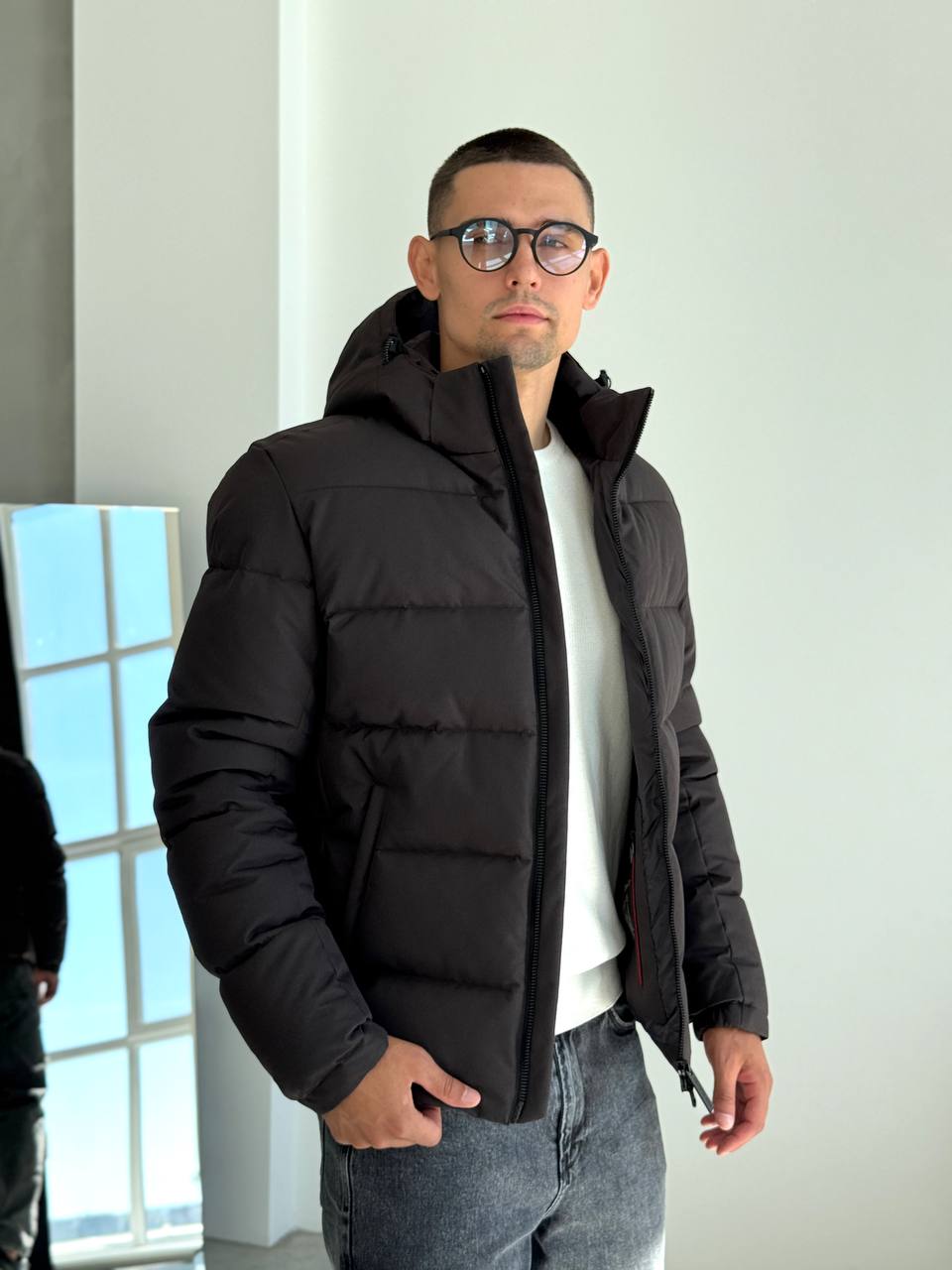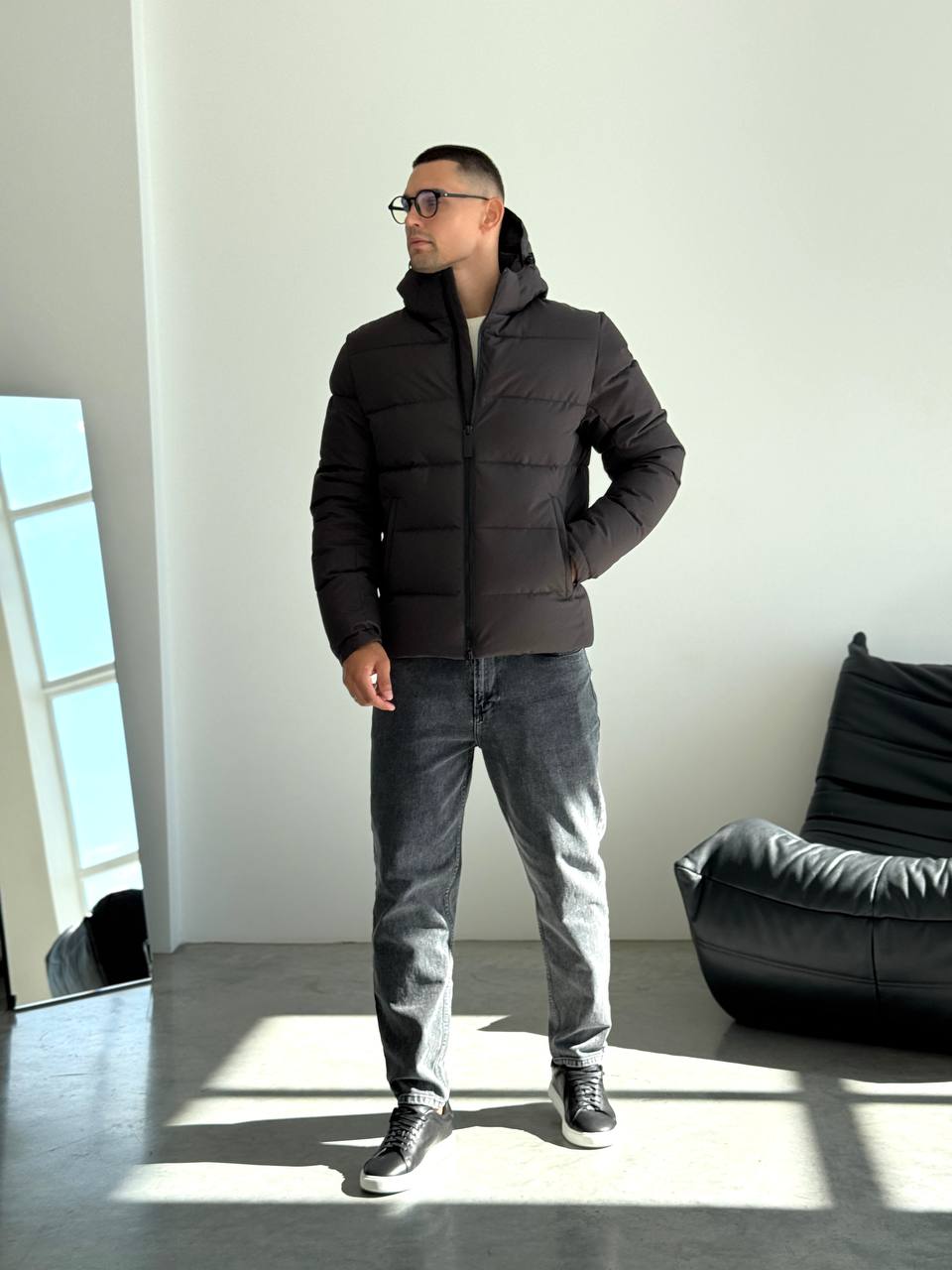 Чоловіча Зимова Коричнева Куртка – Стьобана з Капюшоном на Затяжках