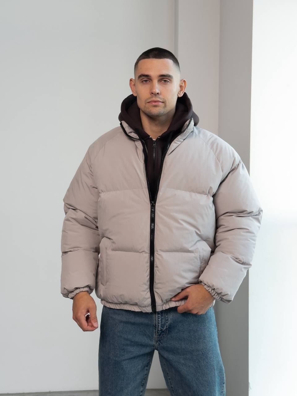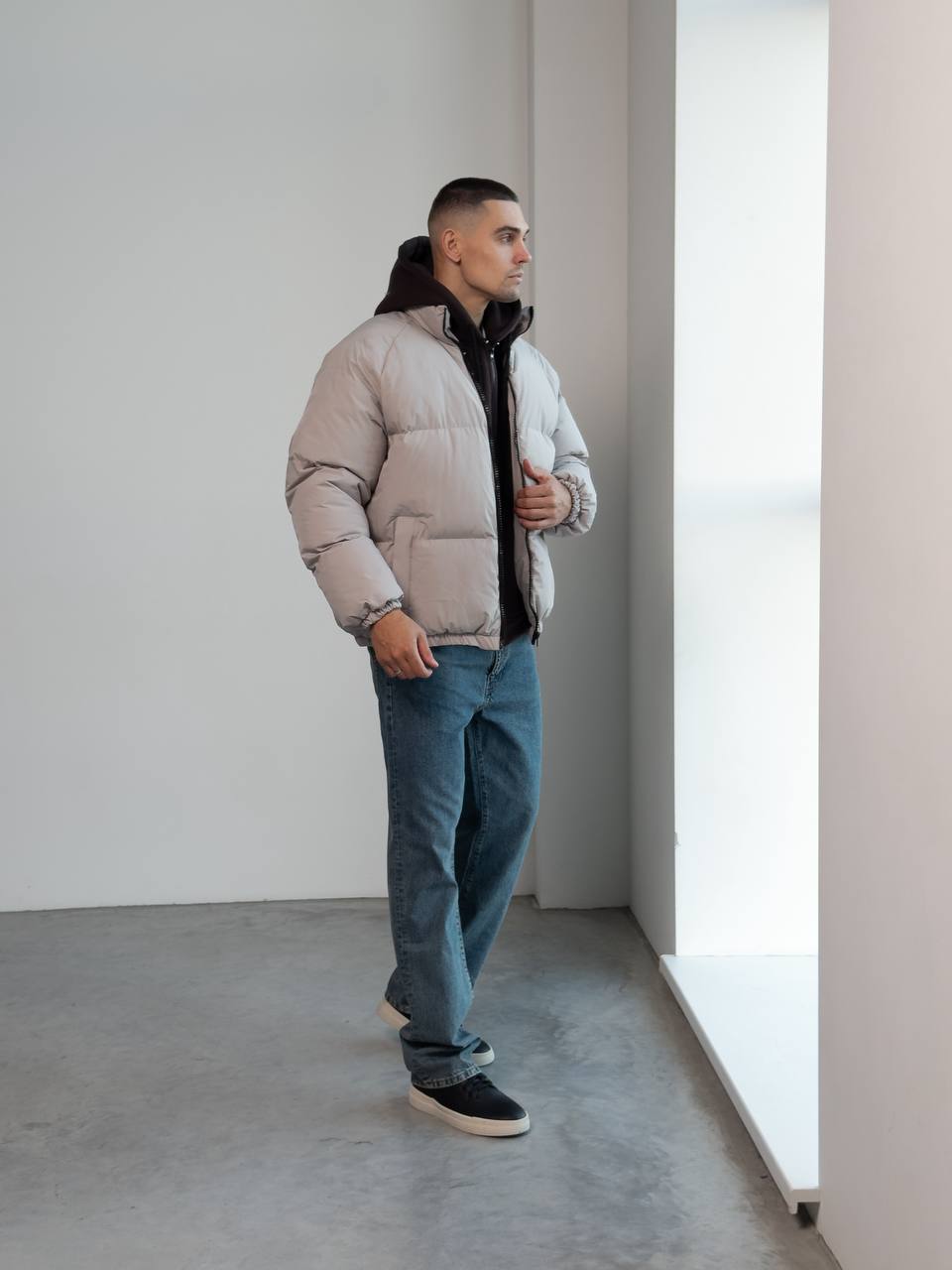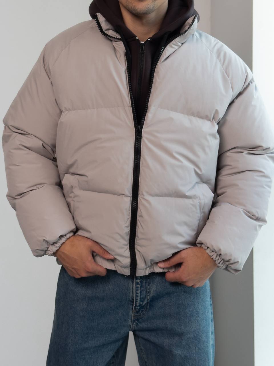 Чоловіча Зимова Сіра Куртка Дутік на Блискавці з Високим Горлом
