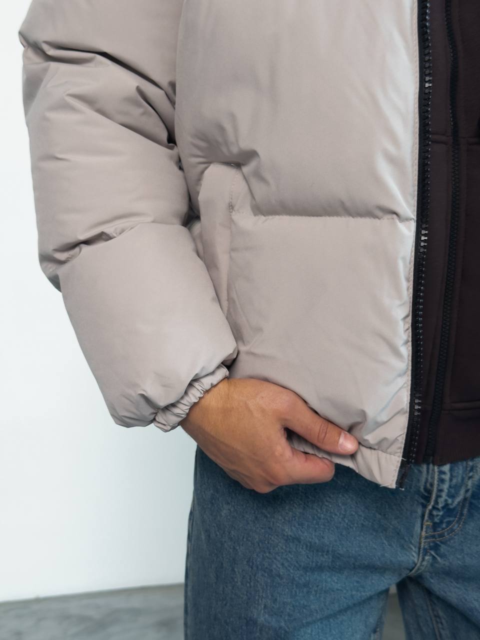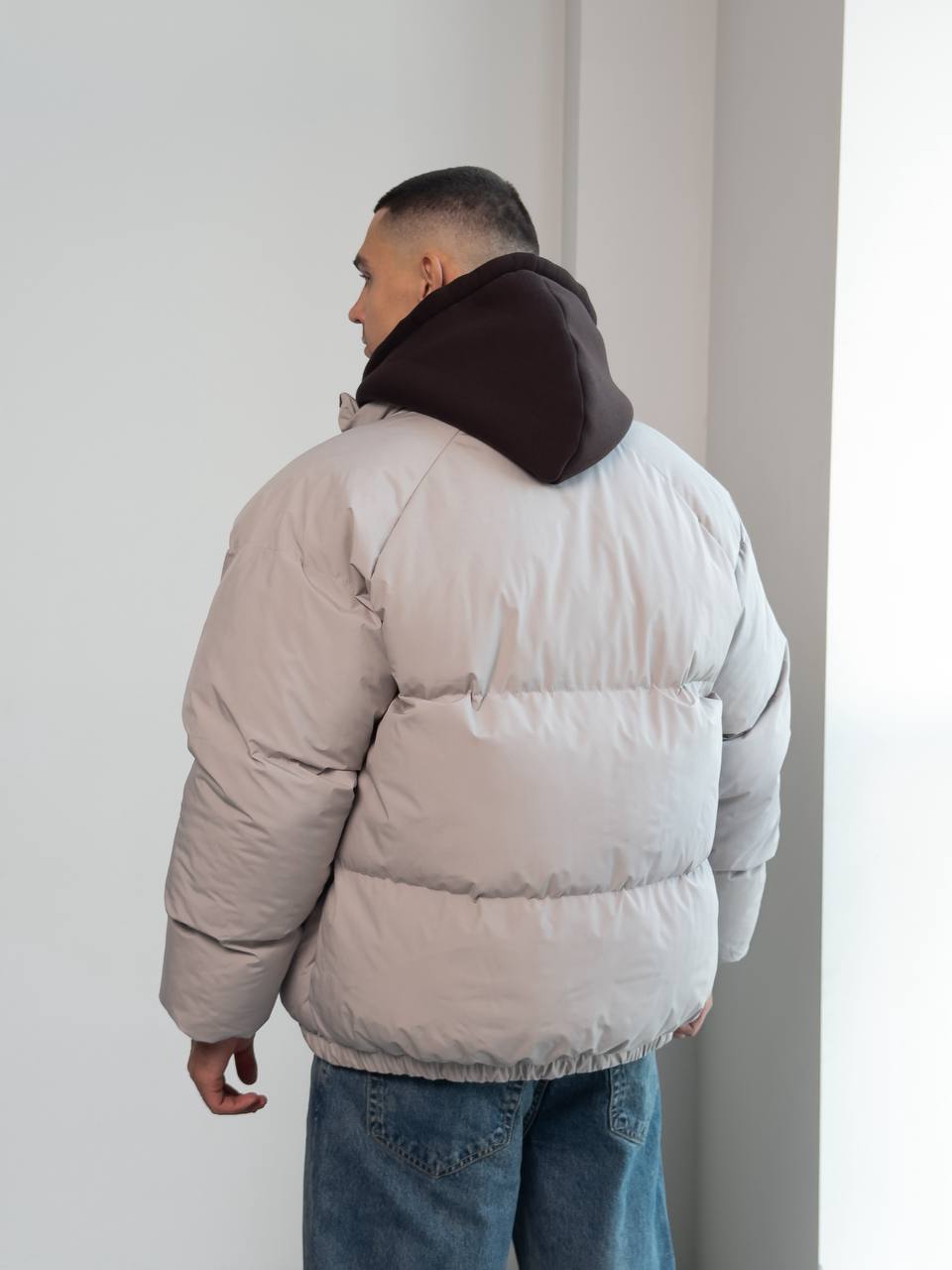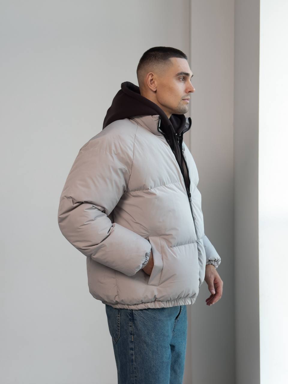 Чоловіча Зимова Сіра Куртка Дутік на Блискавці з Високим Горлом