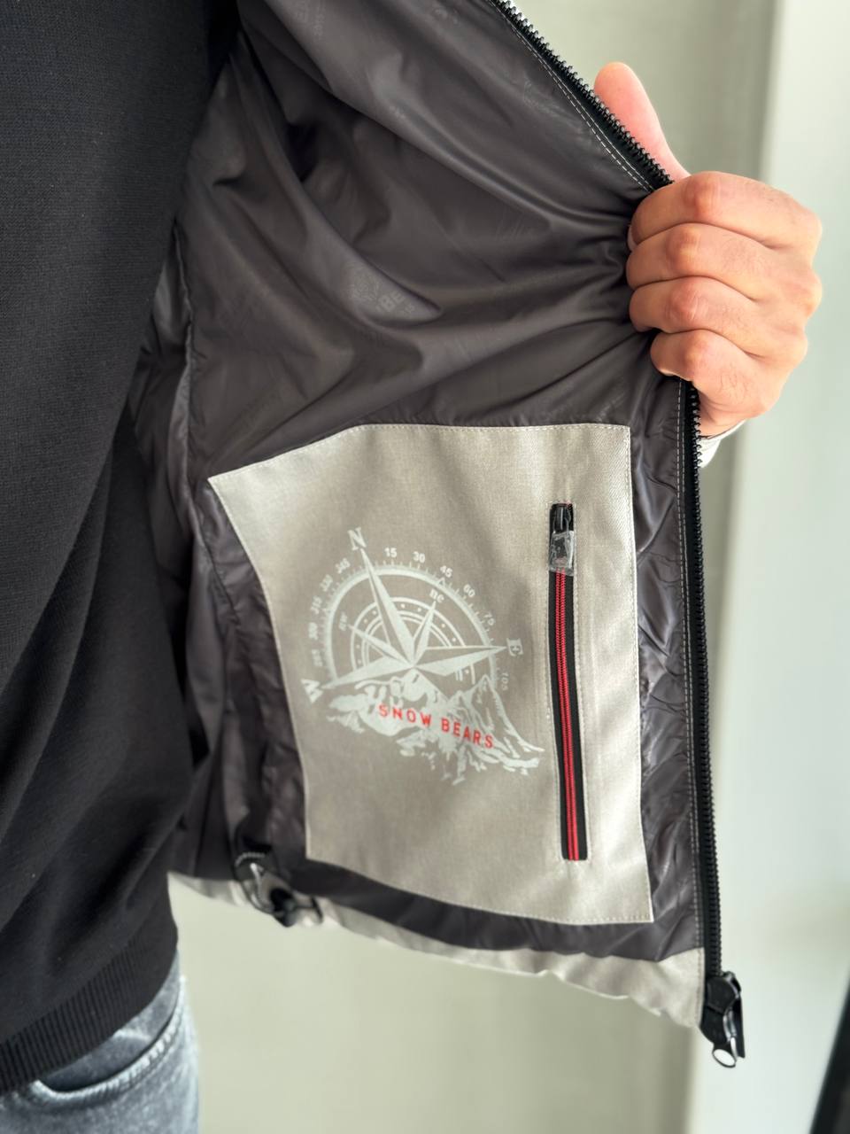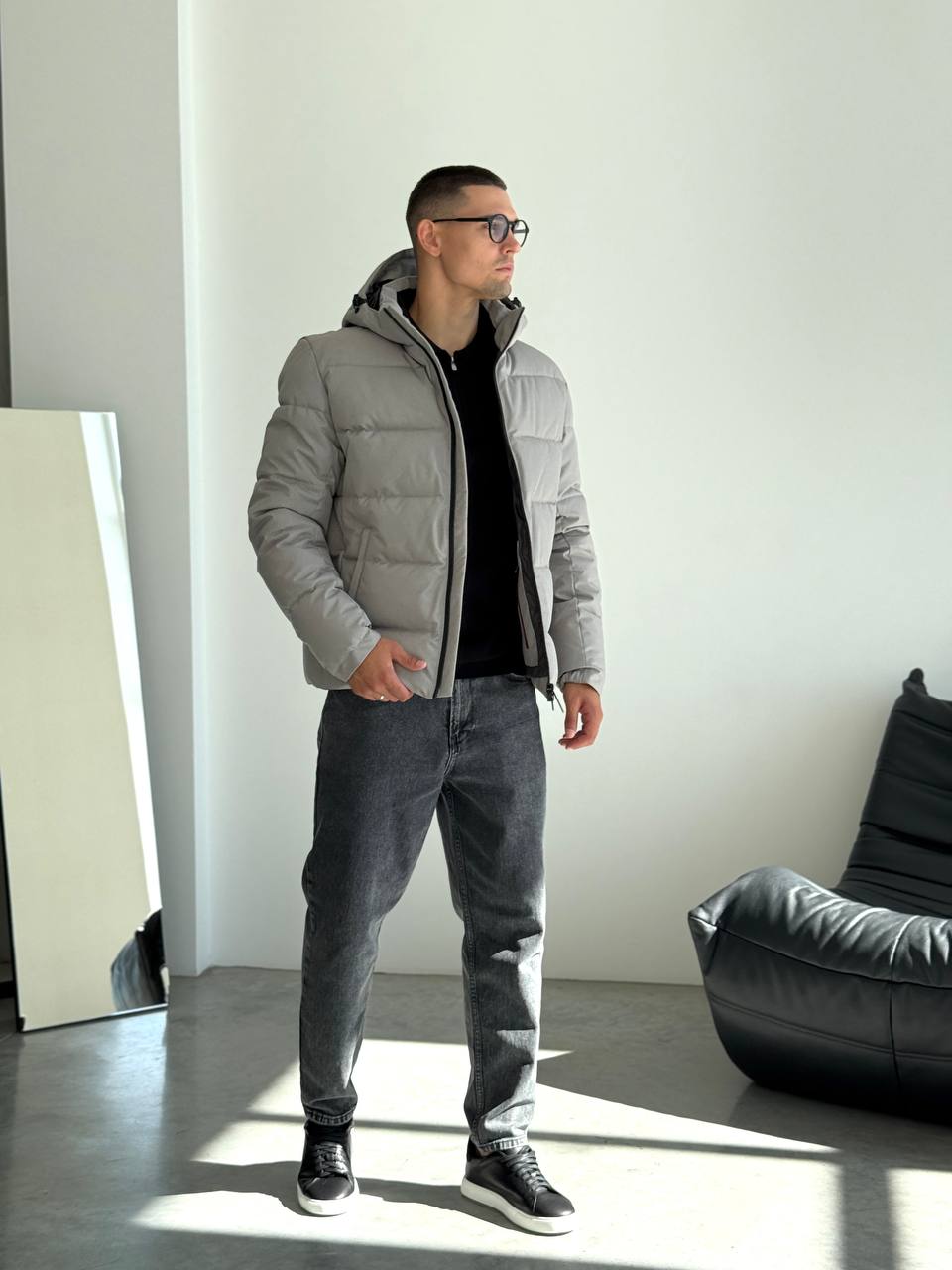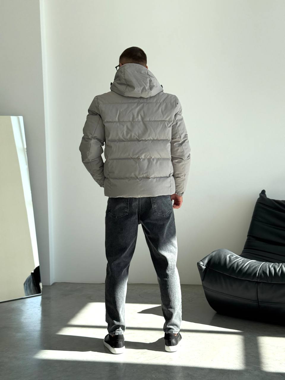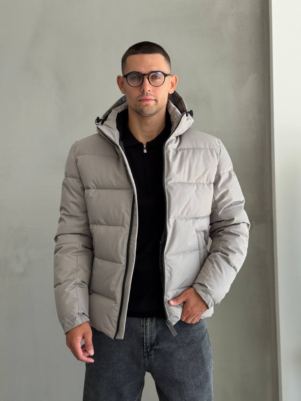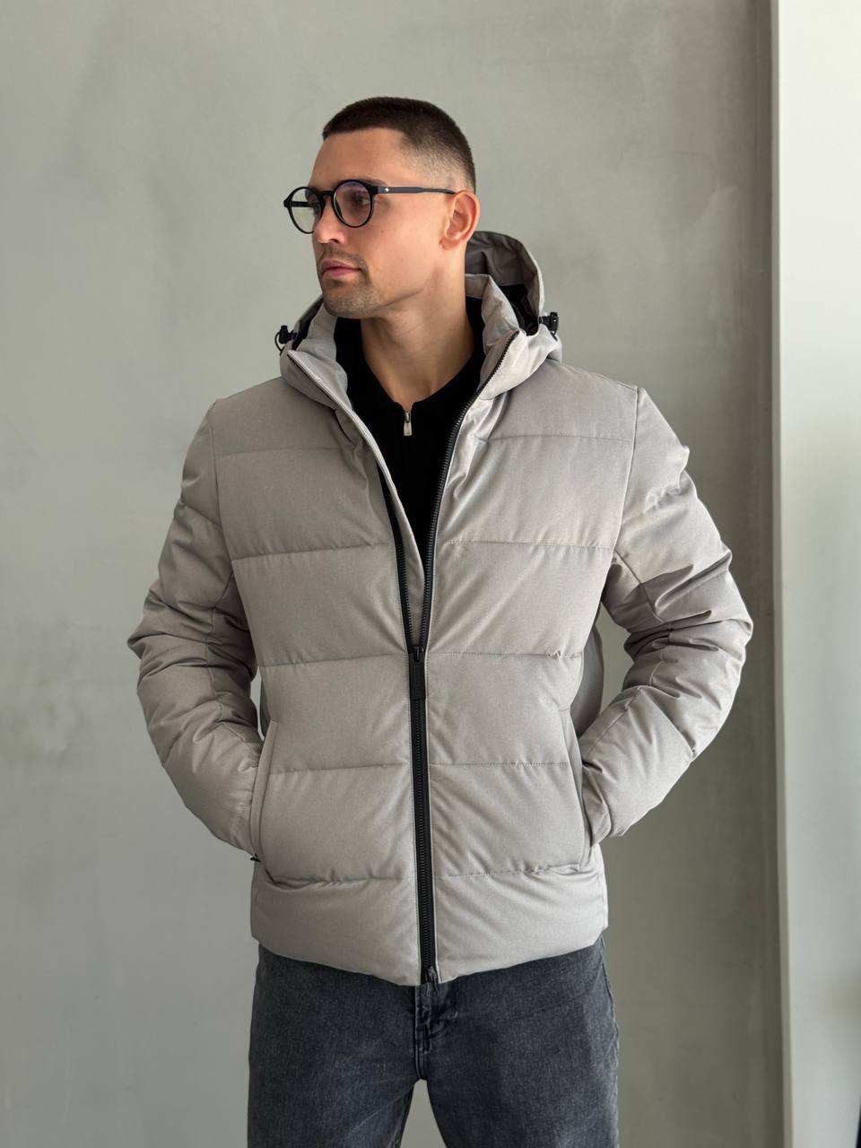 Чоловіча Зимова Сіра Куртка – Стьобана з Капюшоном на Затяжках