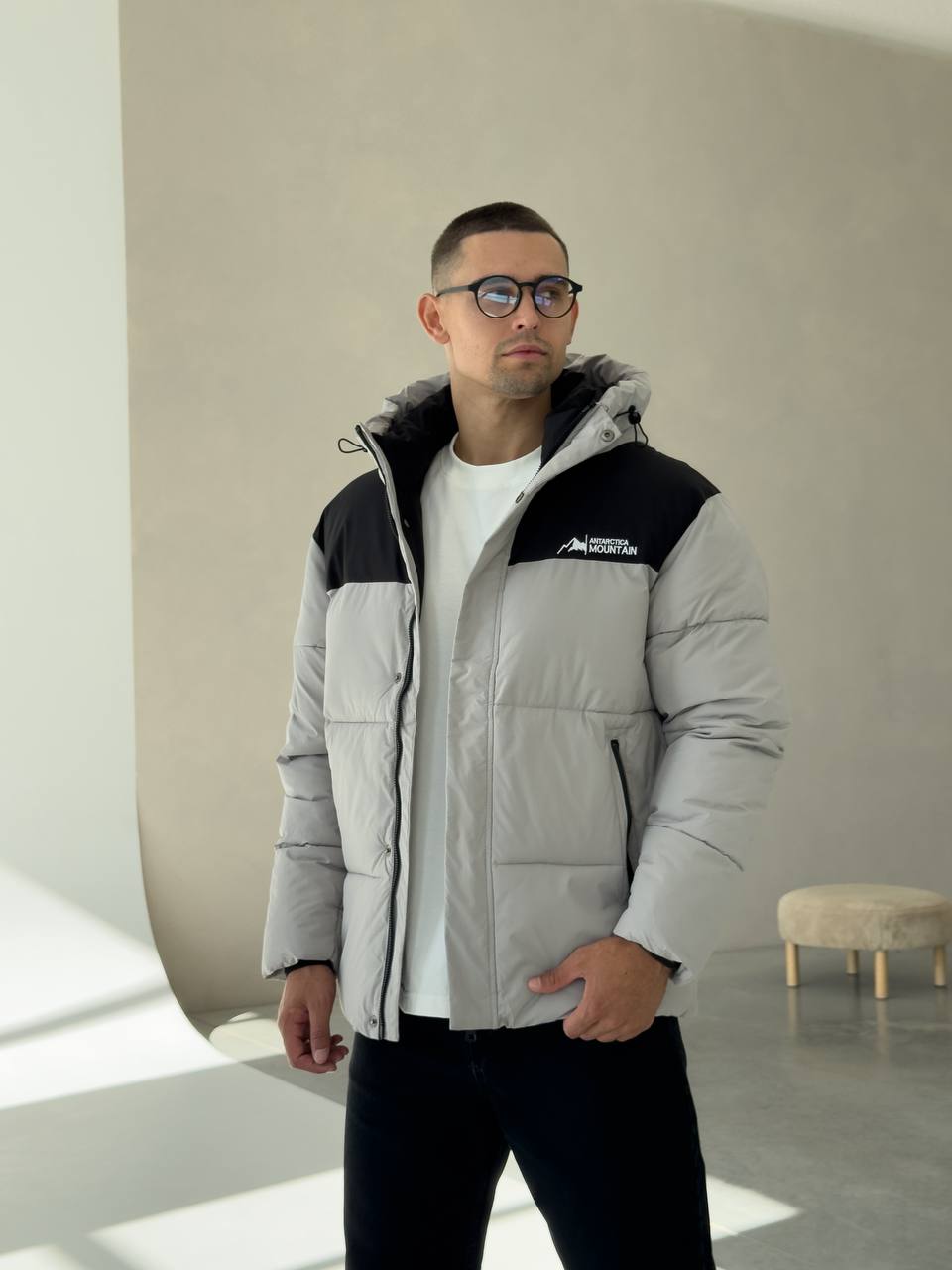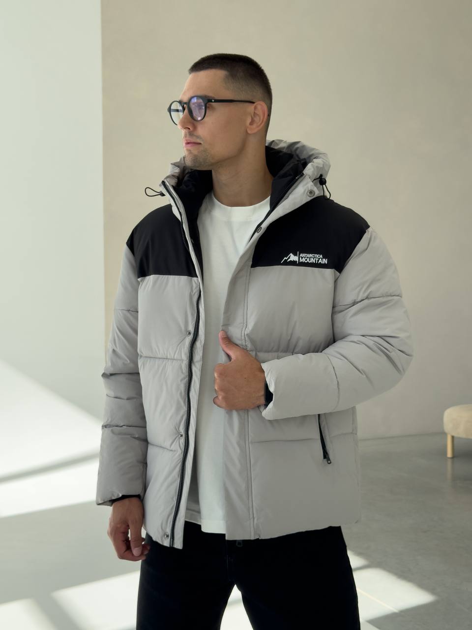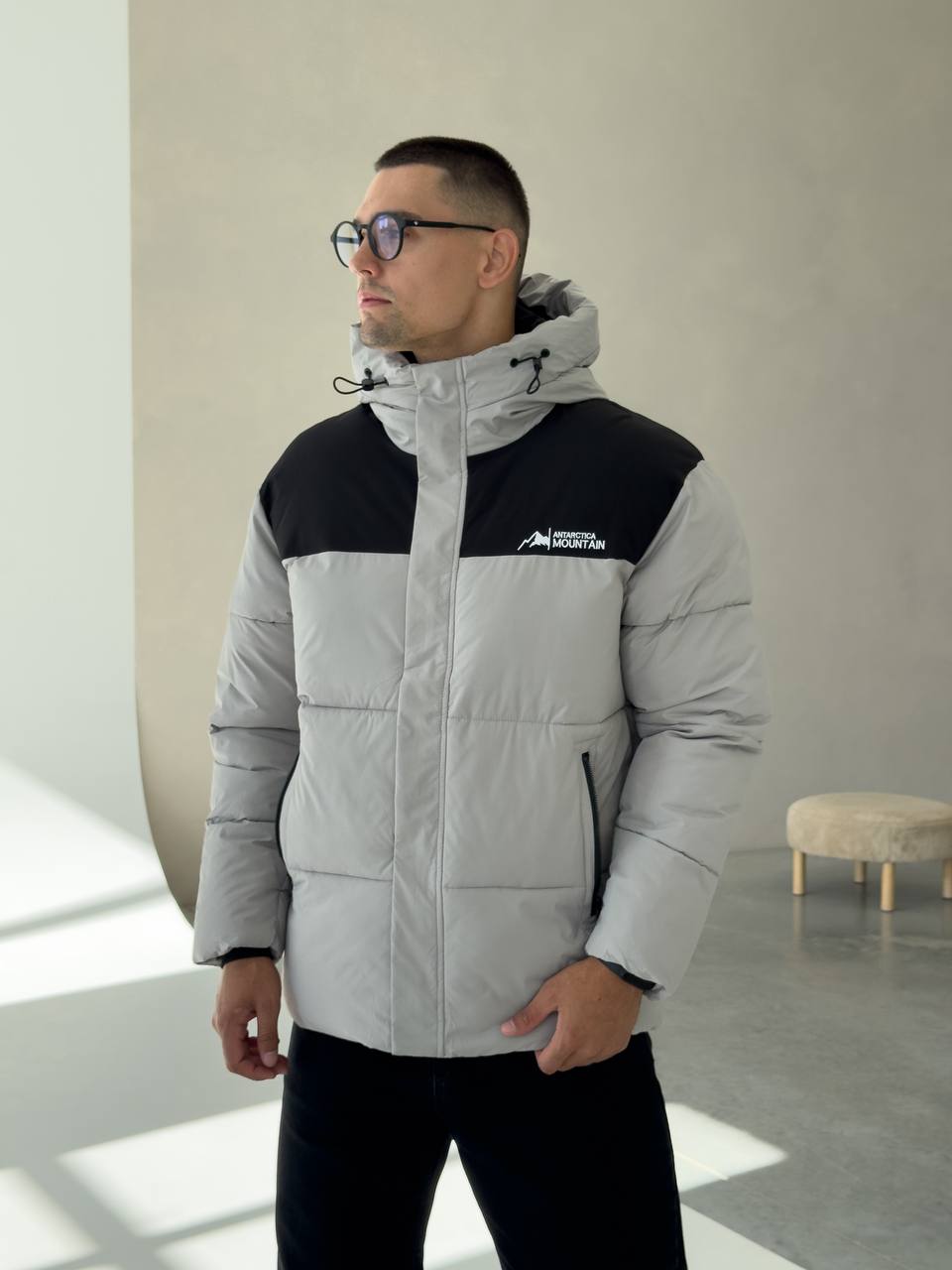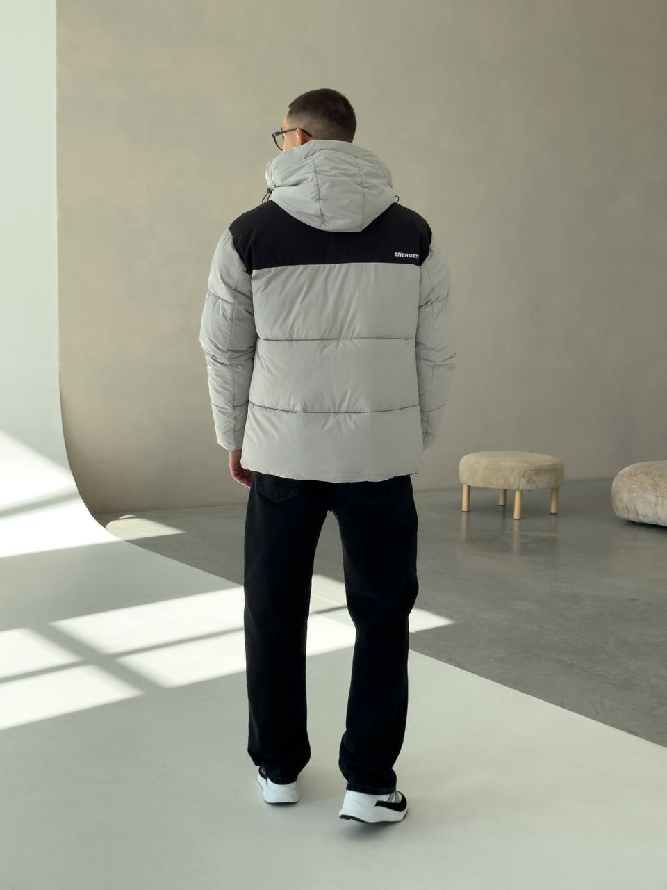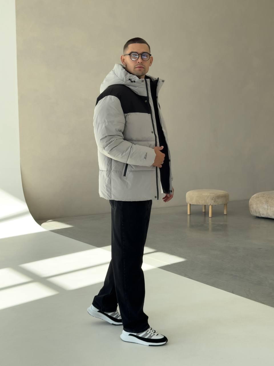 Чоловіча Зимова Стьобана Сіра Куртка – Тепла під Горло з Капюшоном