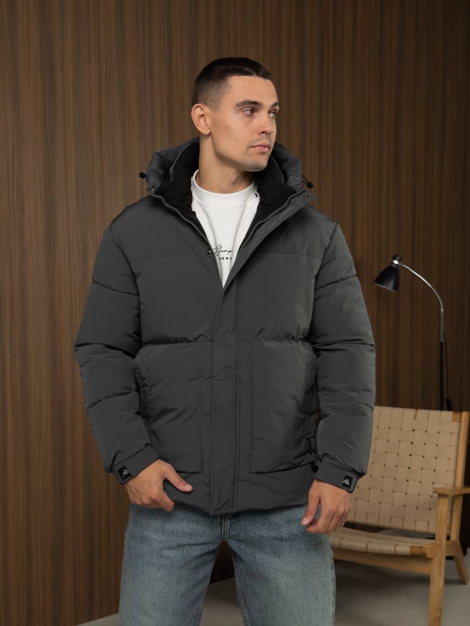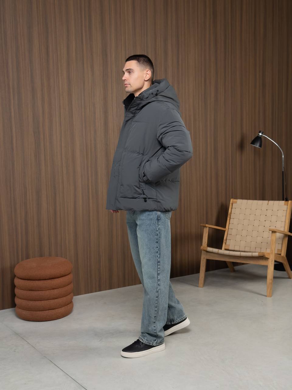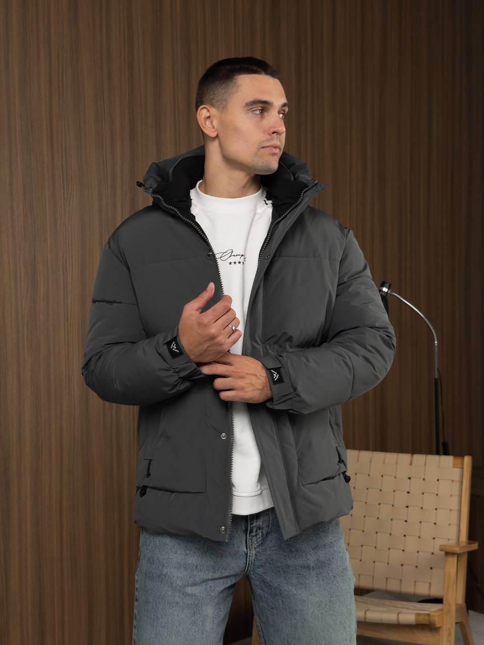 Чоловіча Зимова Темно-Сіра Куртка – Стьобана з Капюшоном і Фіксаторами