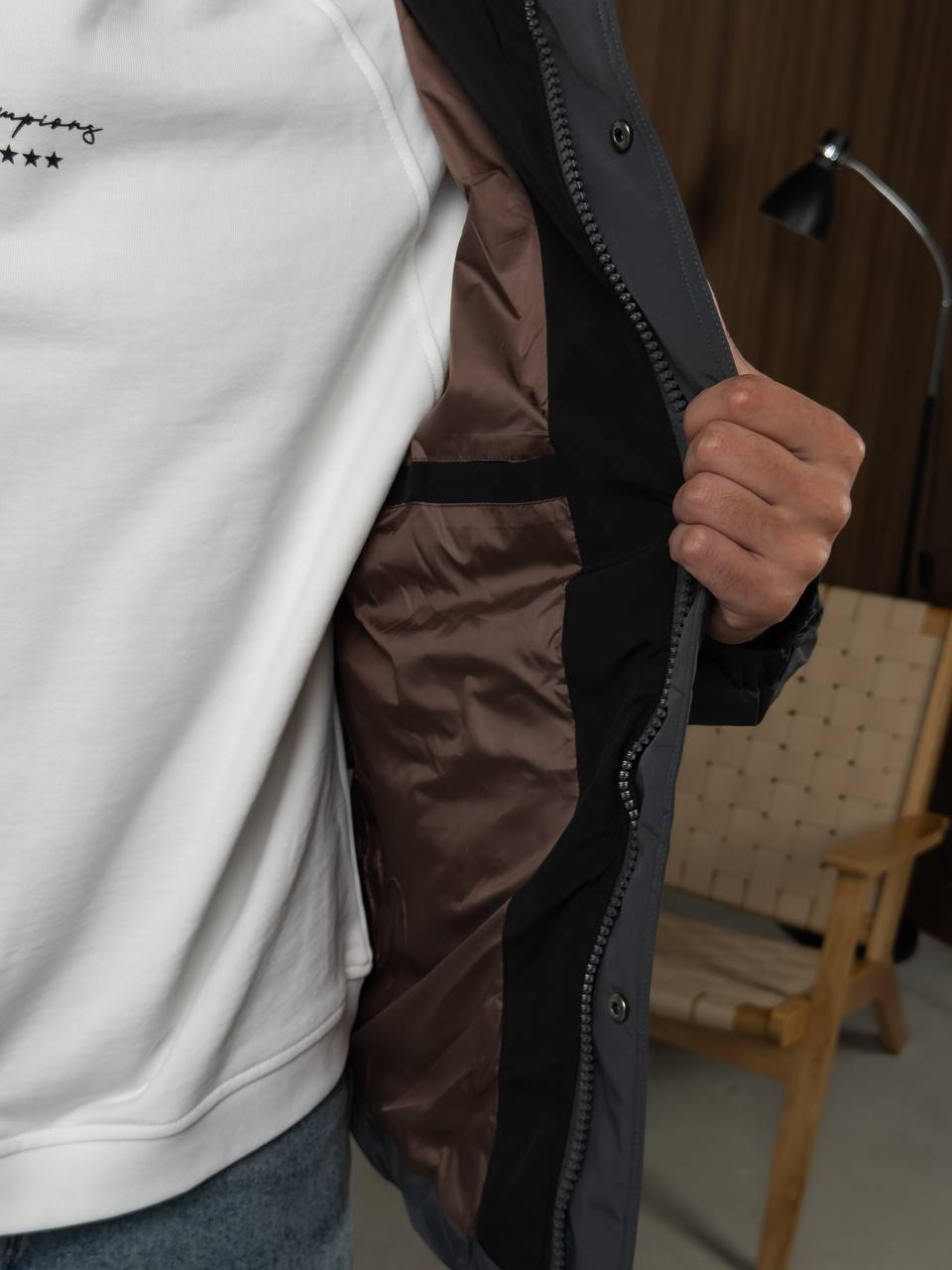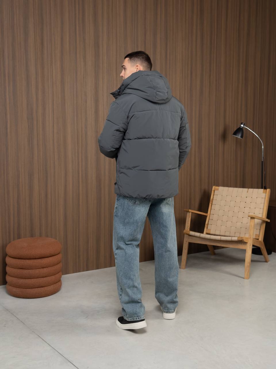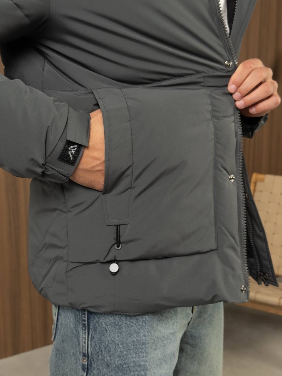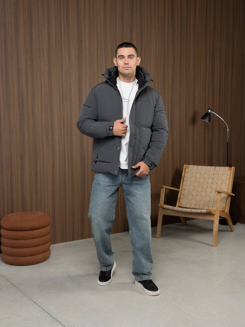 Чоловіча Зимова Темно-Сіра Куртка – Стьобана з Капюшоном і Фіксаторами