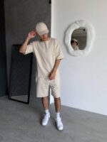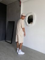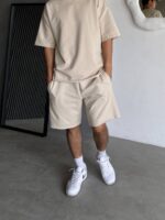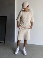 Чоловічий Базовий Літній Бежевий Комплект Двонитка Оверсайз – Футболка та Шорти